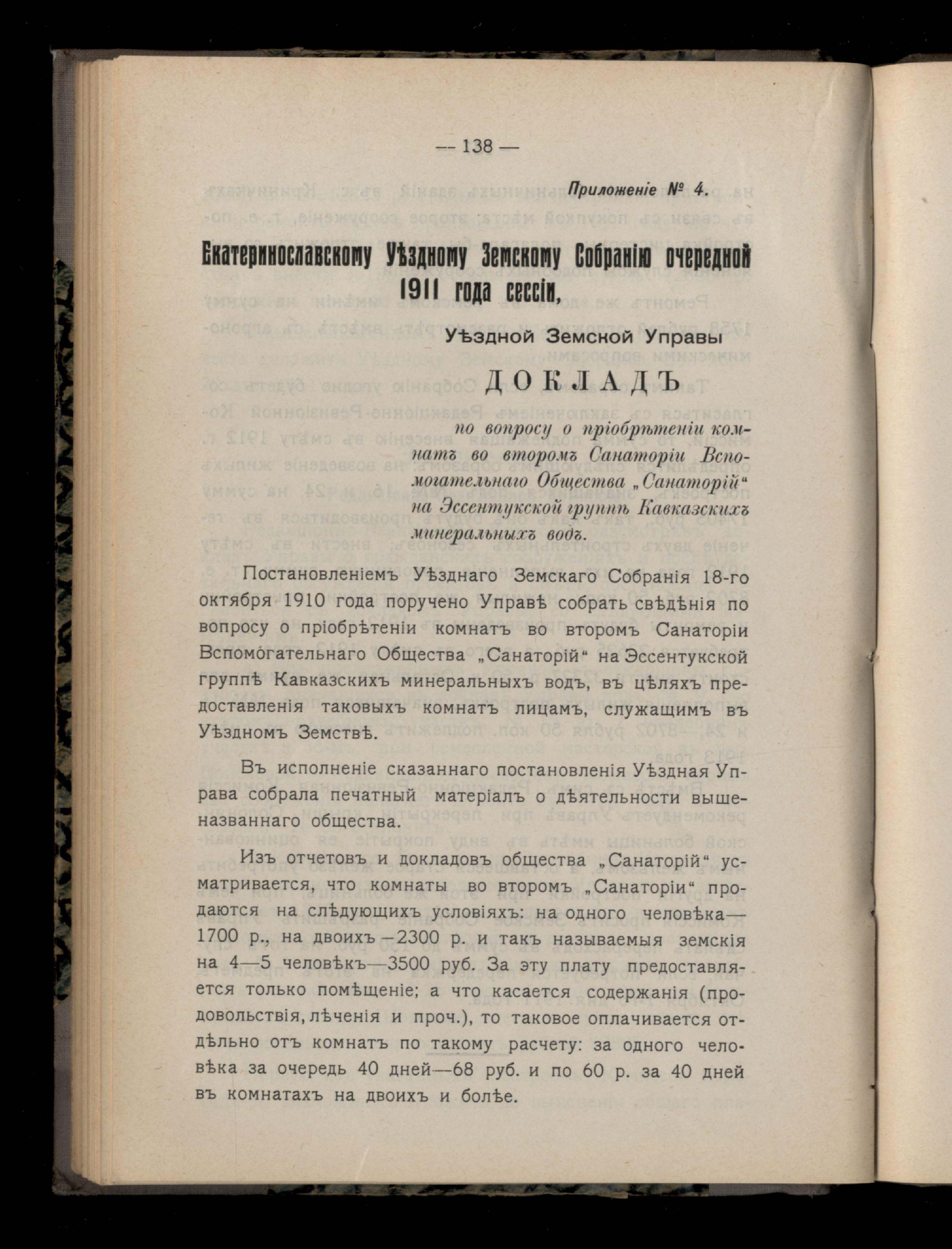 144. Приложеніе №4. Екатеринославскому Уездному Земскому Собранію очередной 1911 года сессіи, Уездной Земской Управы Докладъ