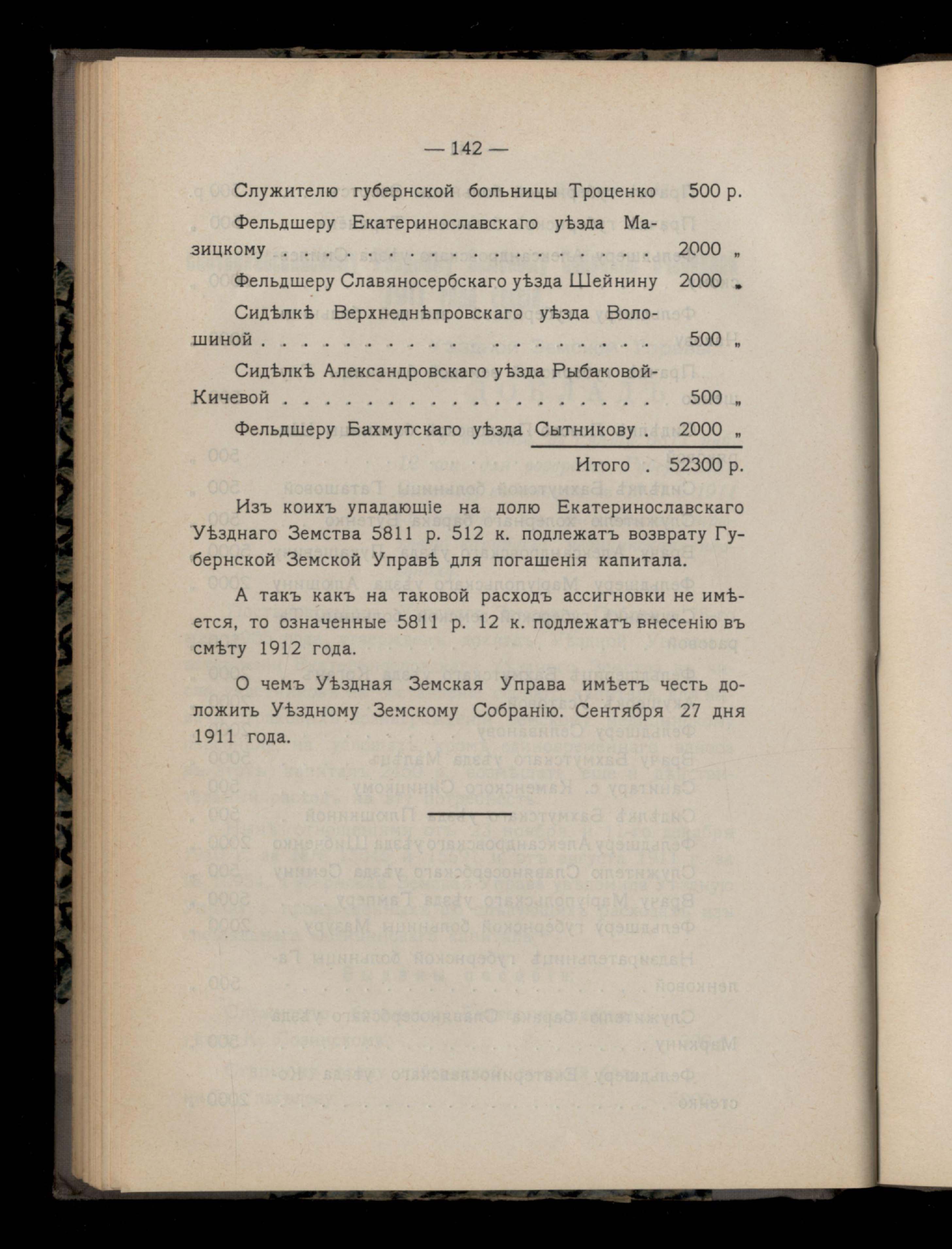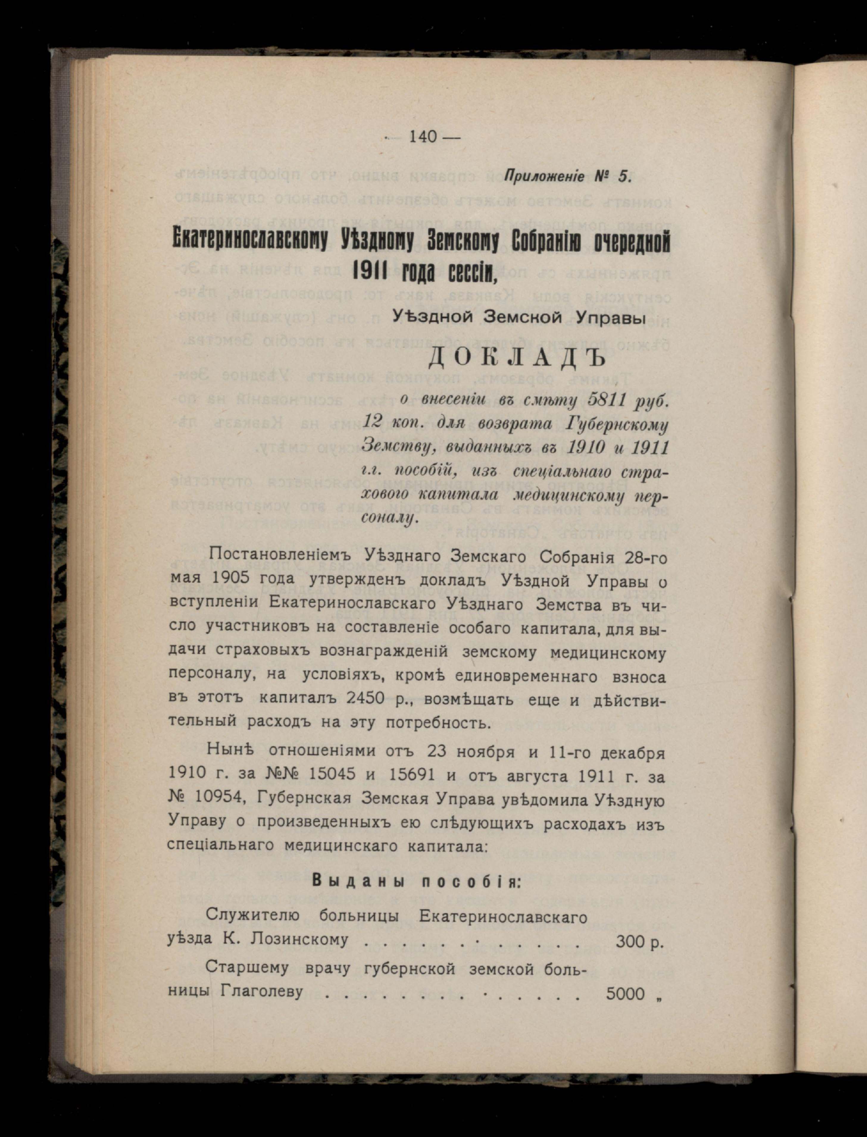 146. Приложеніе №5. Екатеринославскому Уездному Земскому Собранію очередной 1911 года сессіи, Уездной Земской Управы Докладъ