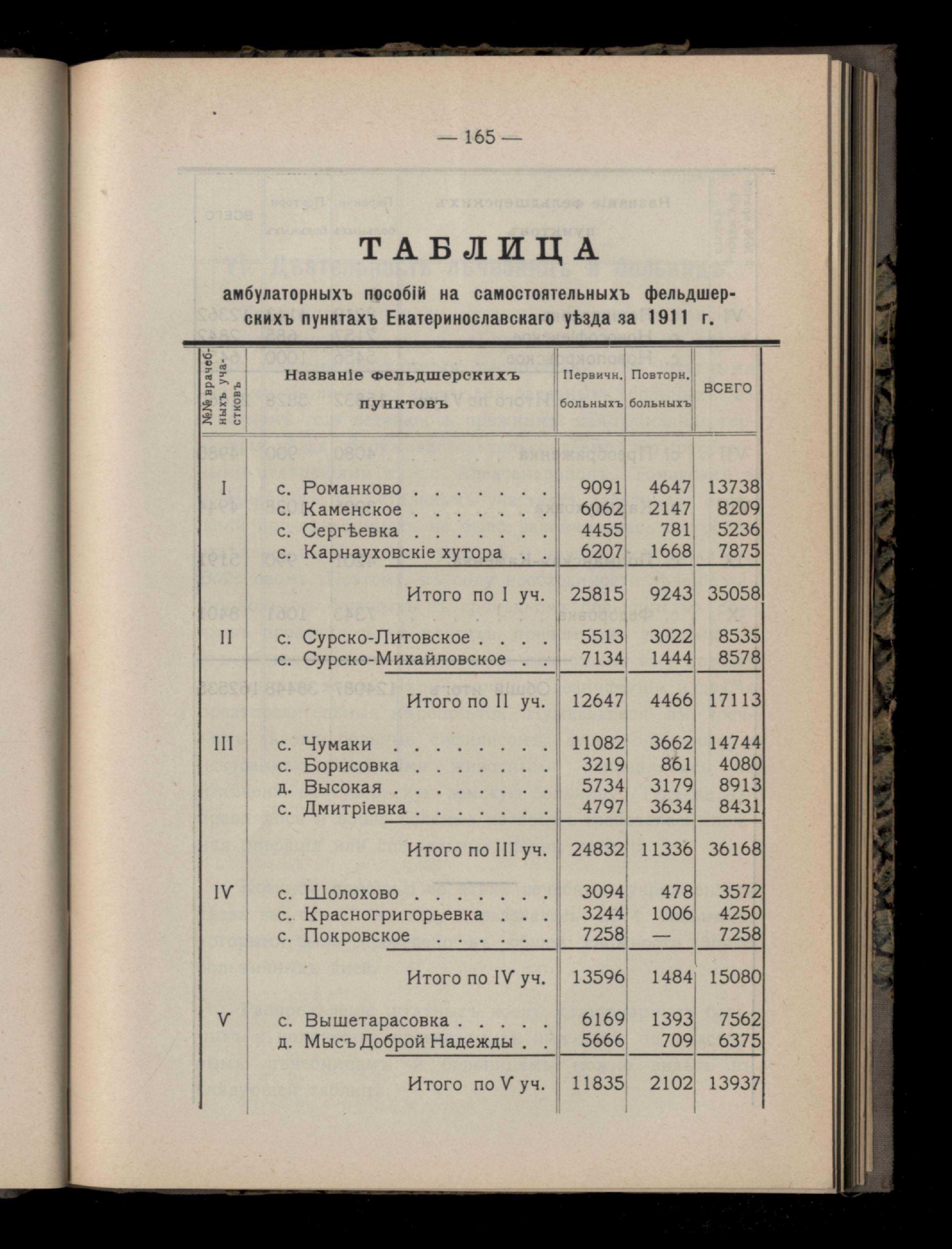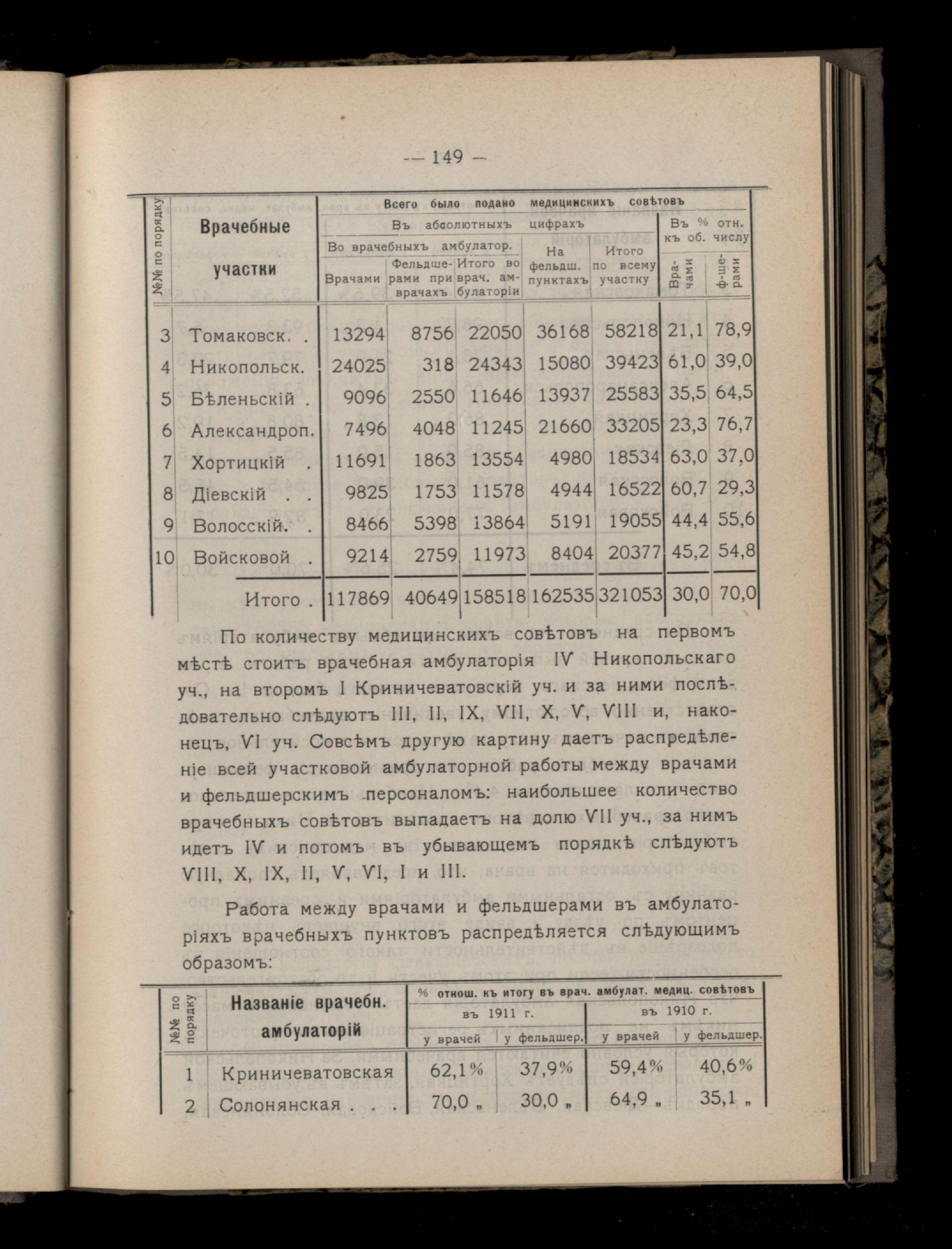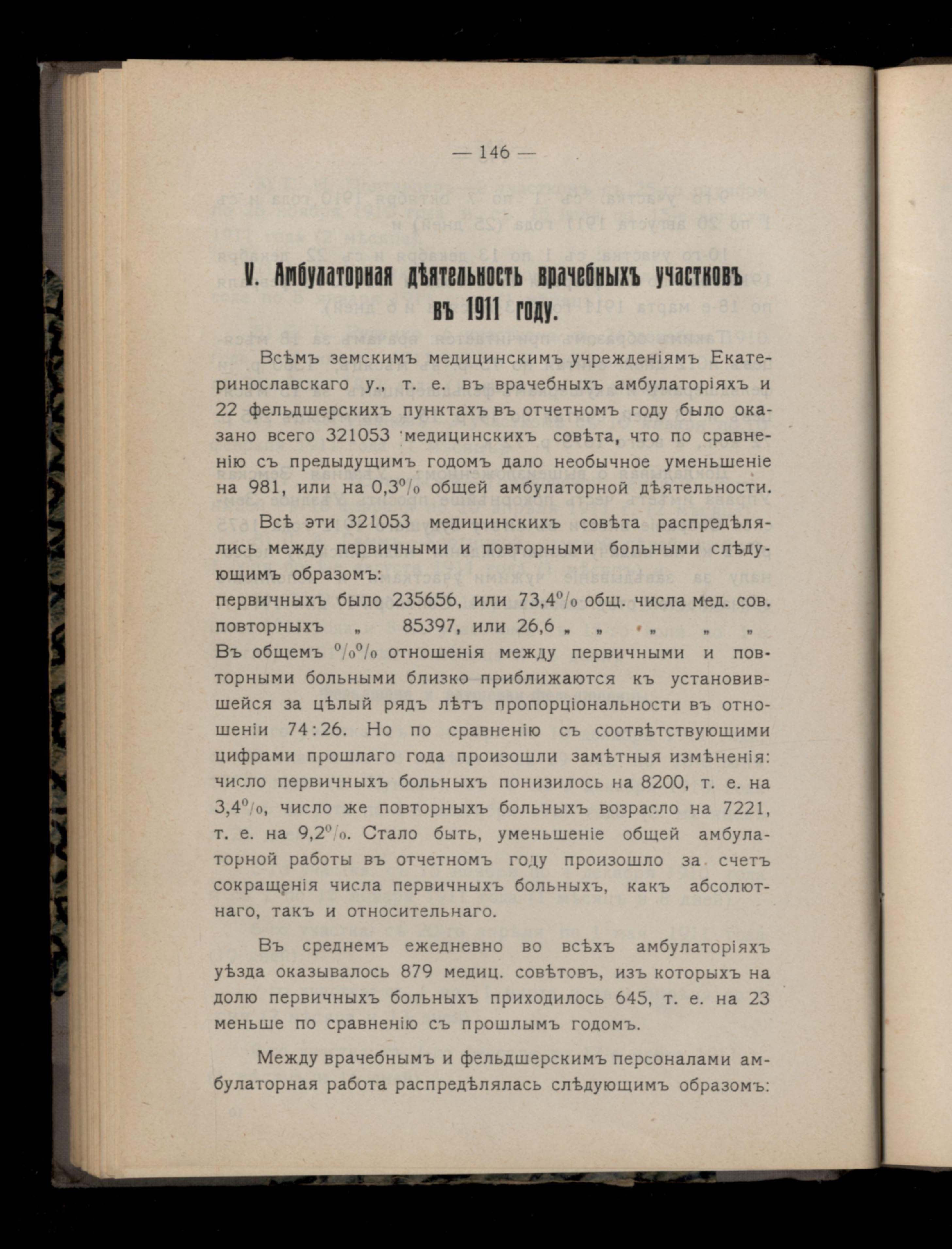 152. V.Амблуаторная деятельность врачебныхъ участковъ въ 1911 году