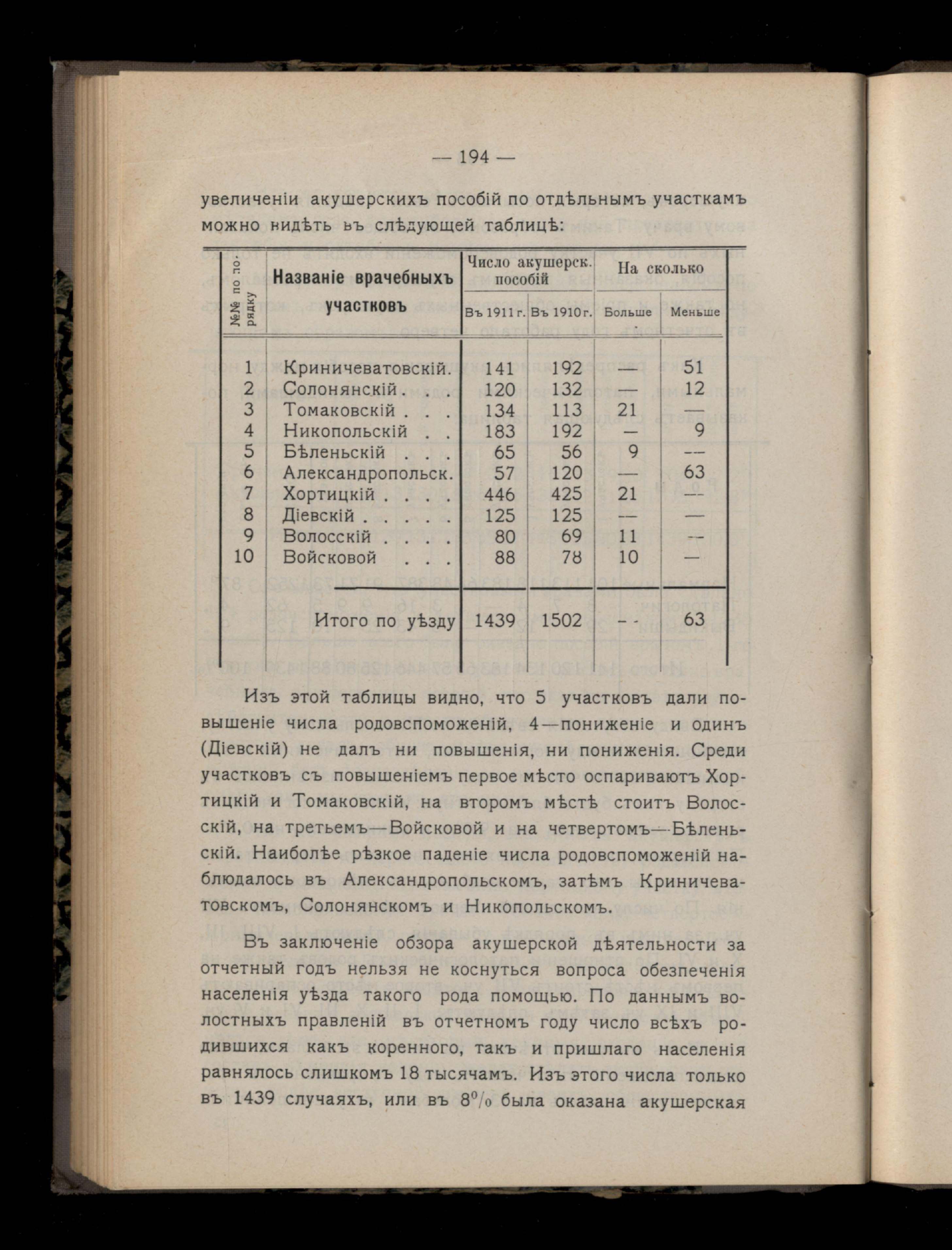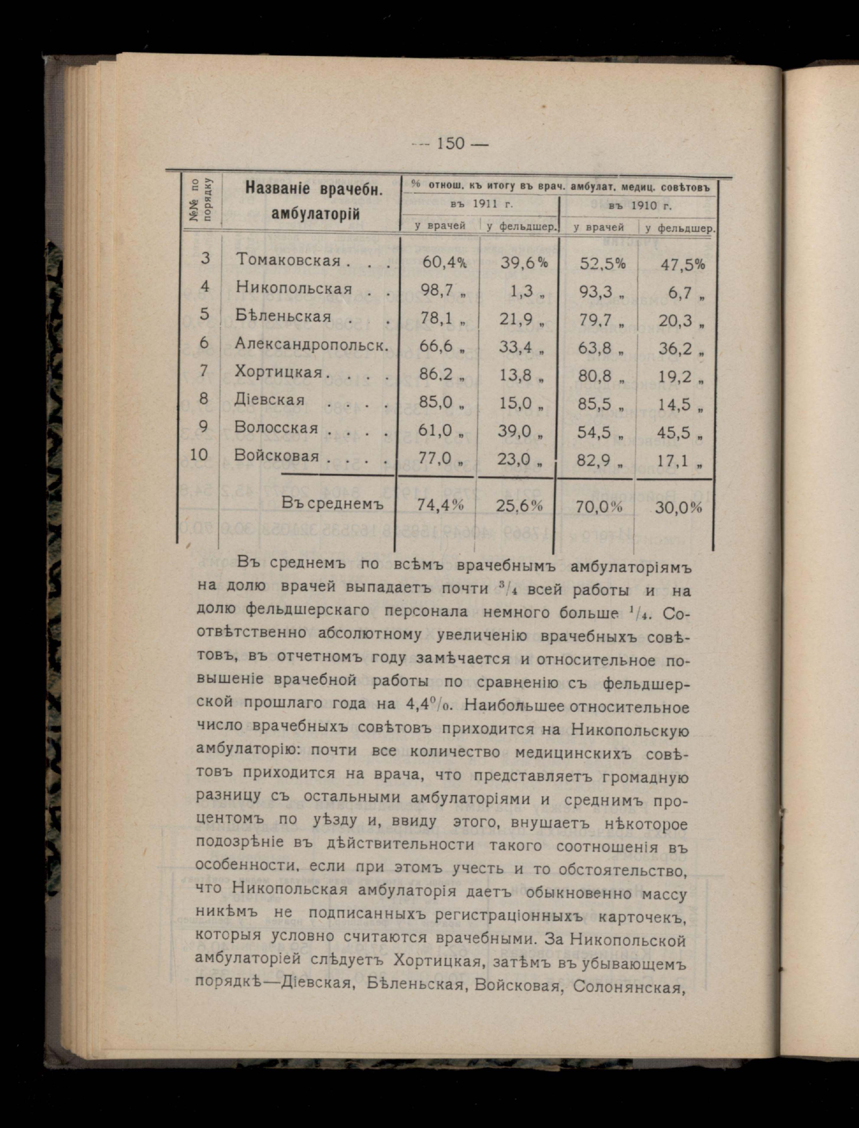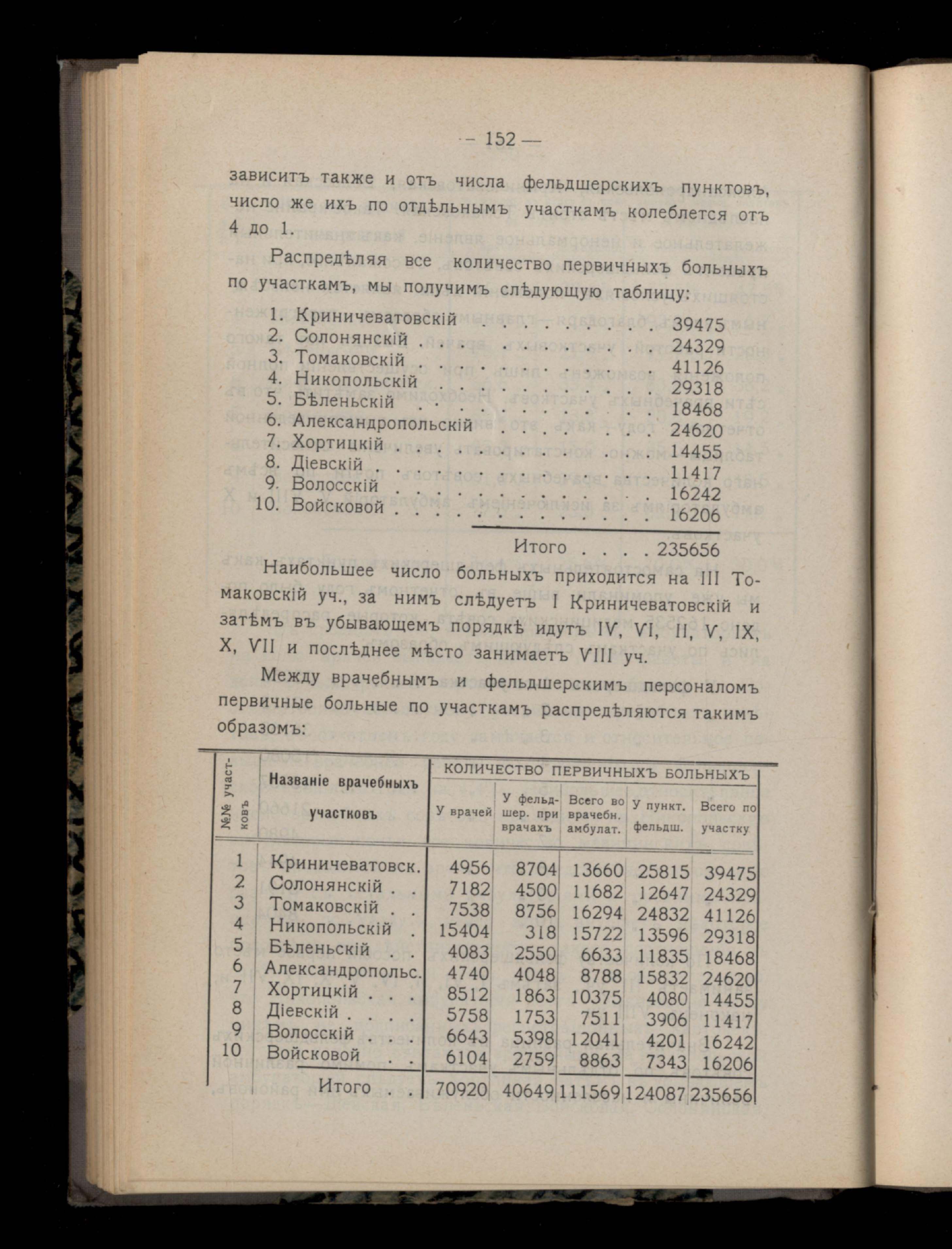 152. V.Амблуаторная деятельность врачебныхъ участковъ въ 1911 году