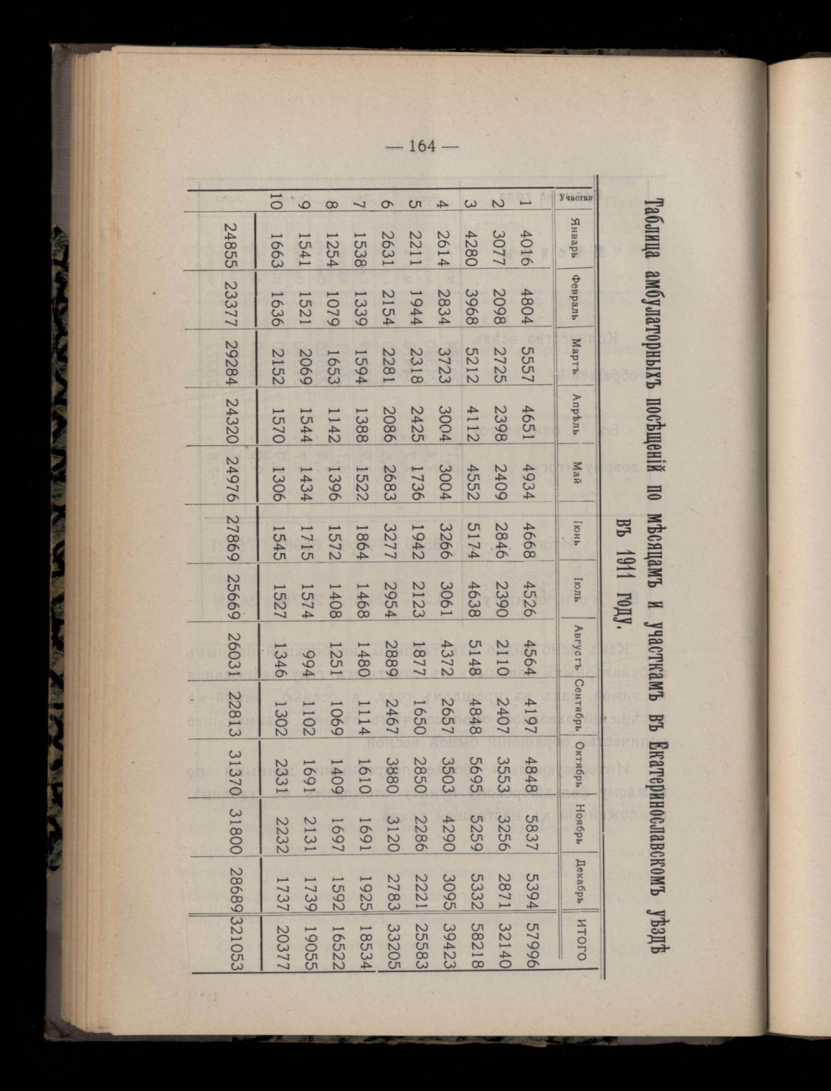 170. Таблица амблуаторныхъ посещеній по месяцамъ и участкамъ въ Екатеринославскомъ уезде въ 1911 году
