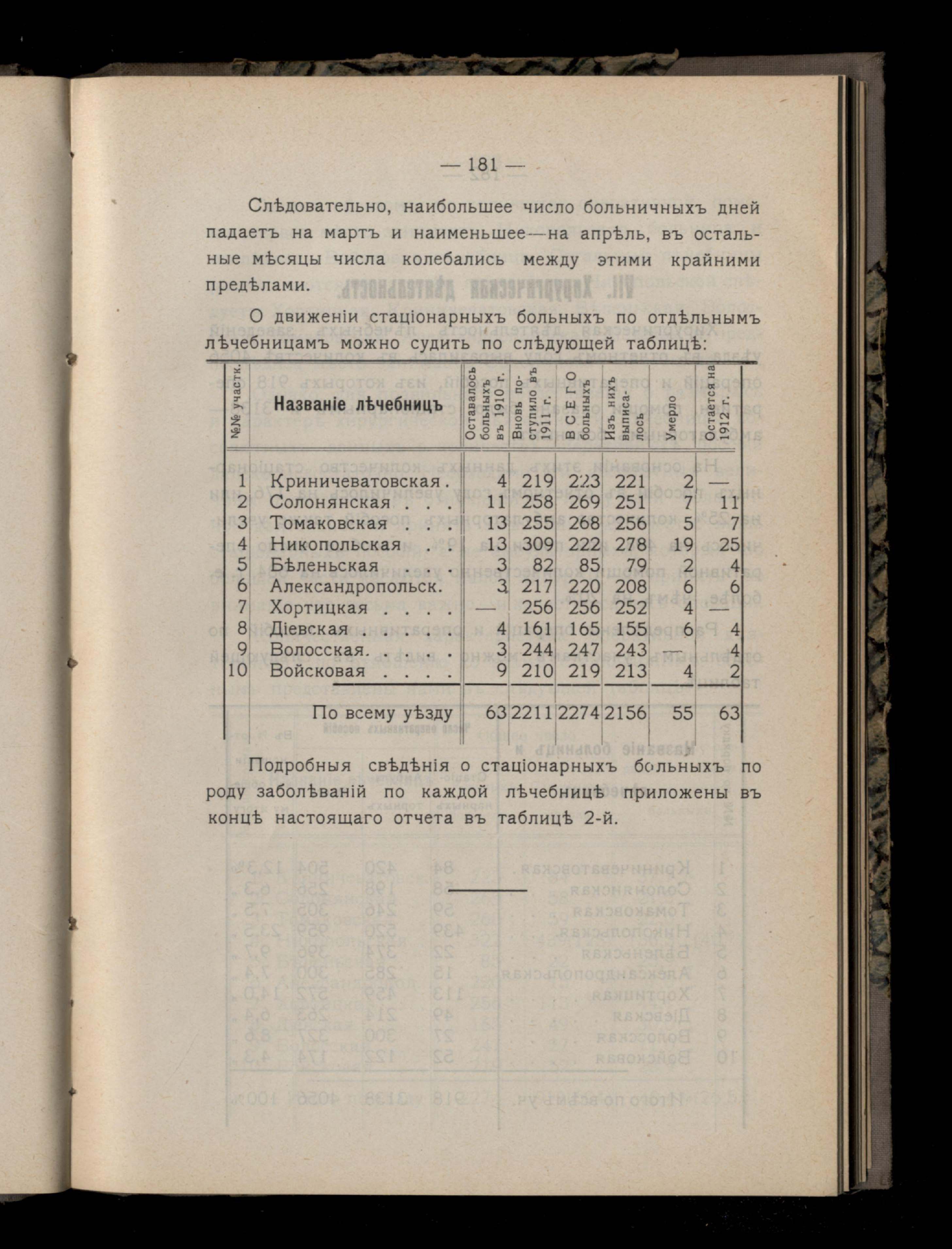 173. VI. Деятельность лечебницъ и больницъ
