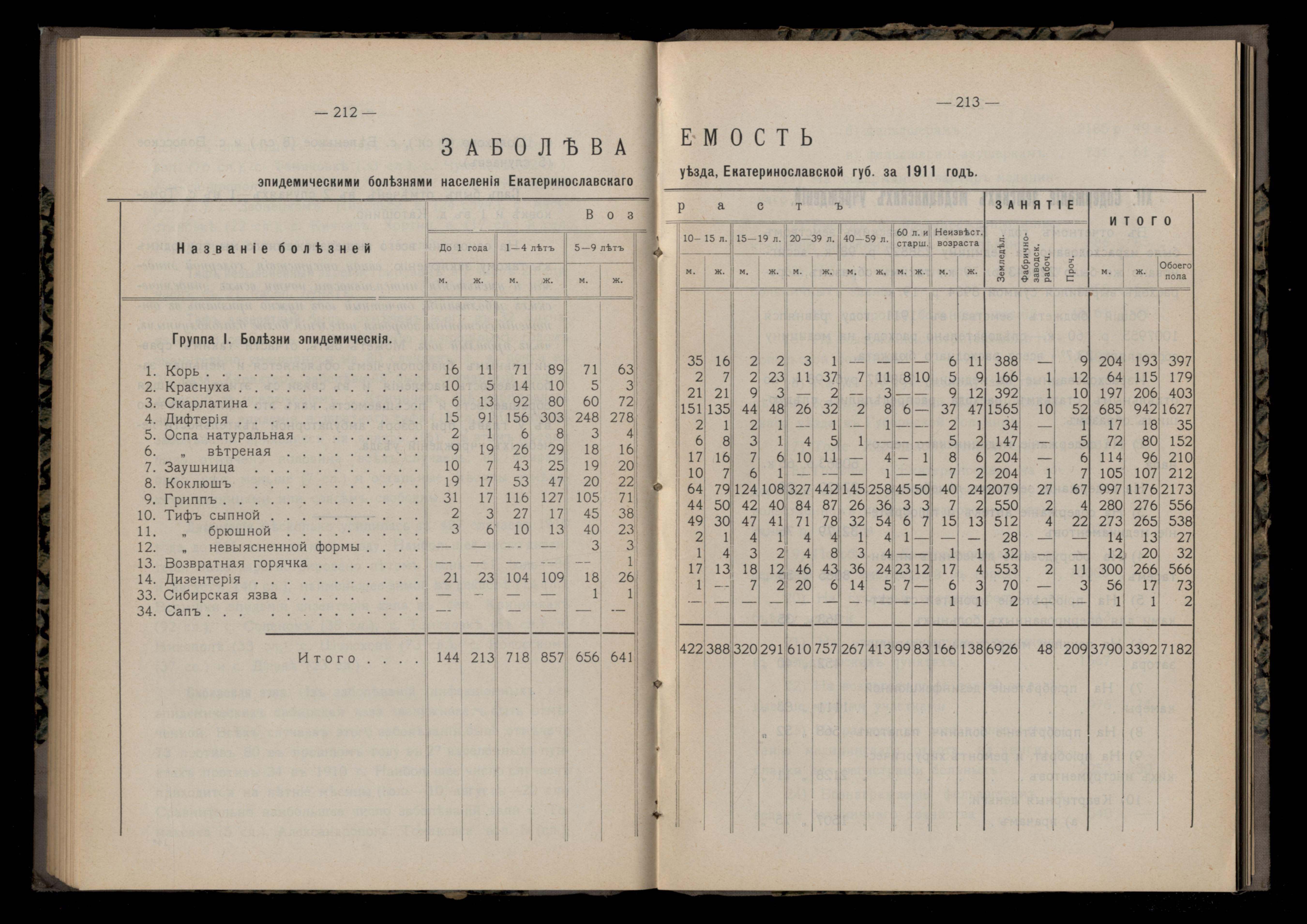 218. Заболеваемость эпидемическими болезнями населенія Екатеринославскаго уезда Екатеринославской губ. за 1911 годъ