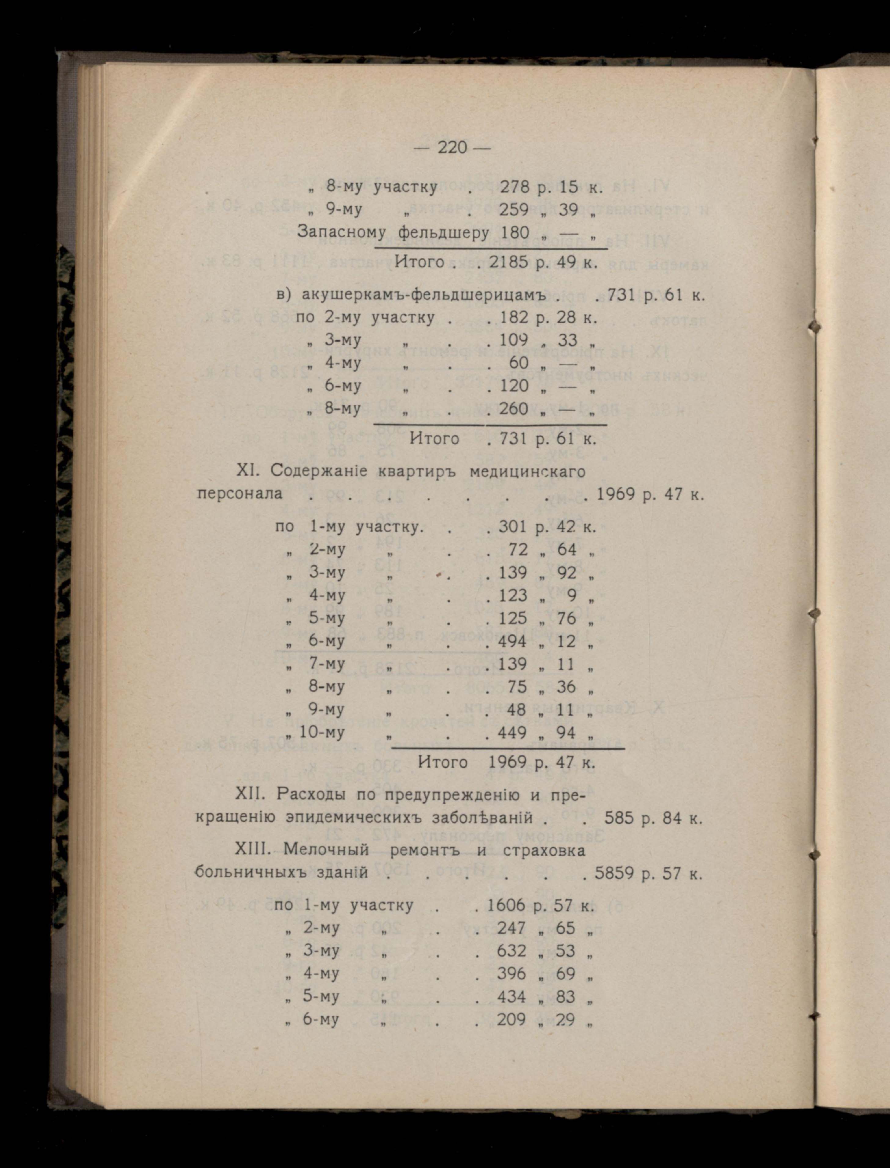 219. XII. Содержаніе земскихъ медицинскихъ учережденій