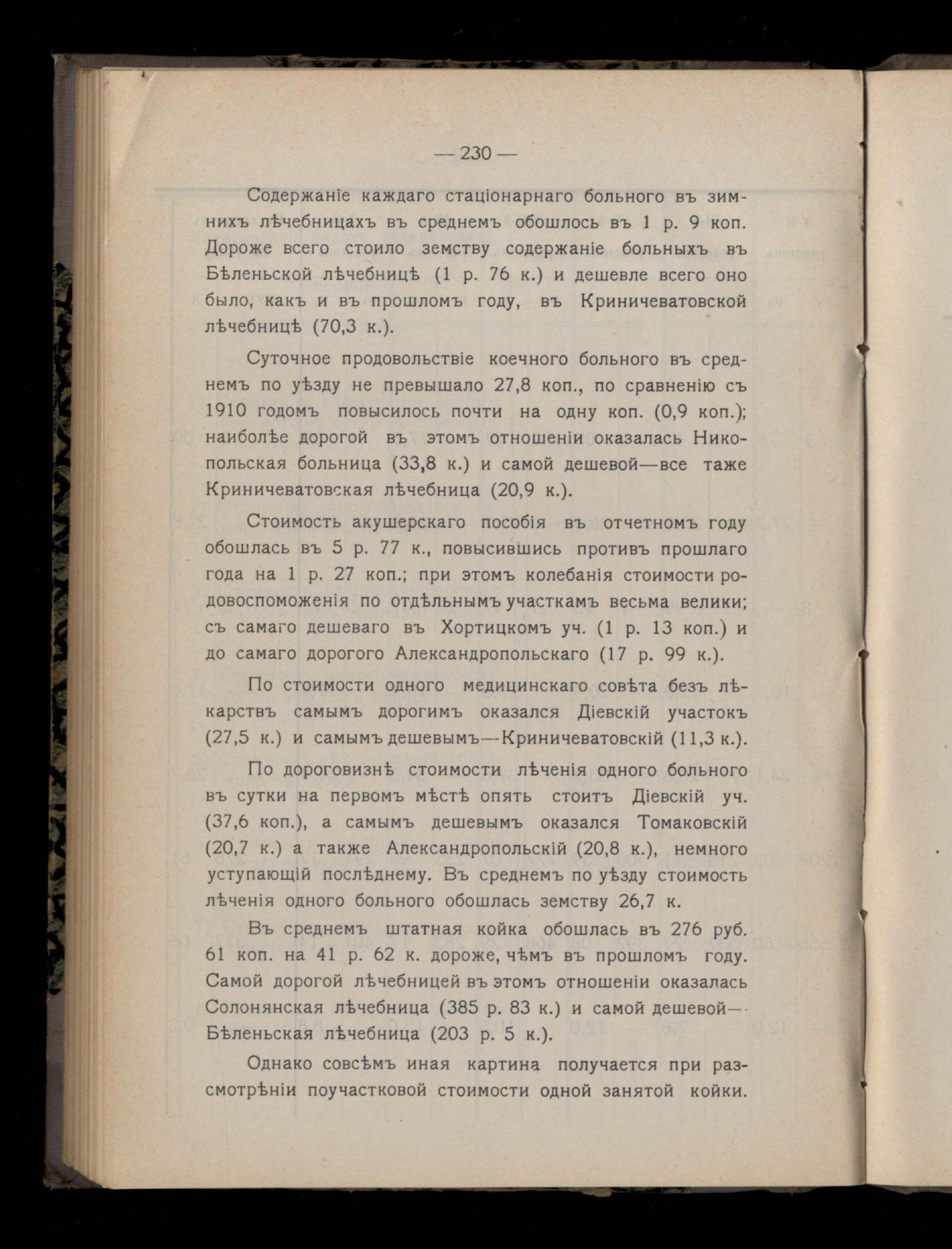 229. Расходы по содержанію лечебницъ въ 1911 году