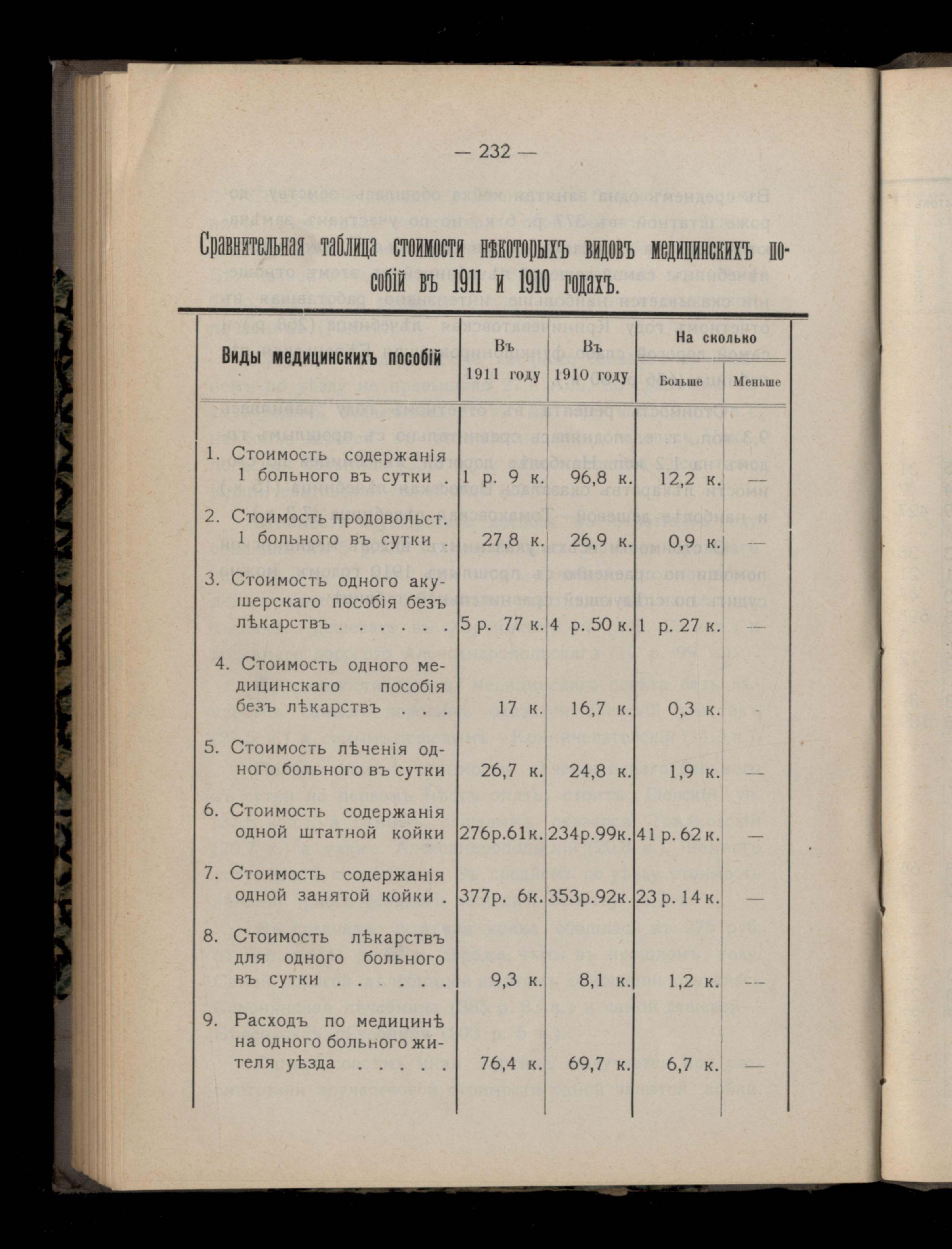 235. Сравнительная таблица стоимости некоторыхъ видовъ медицинскихъ пособій въ 1911 и 1910 годахъ