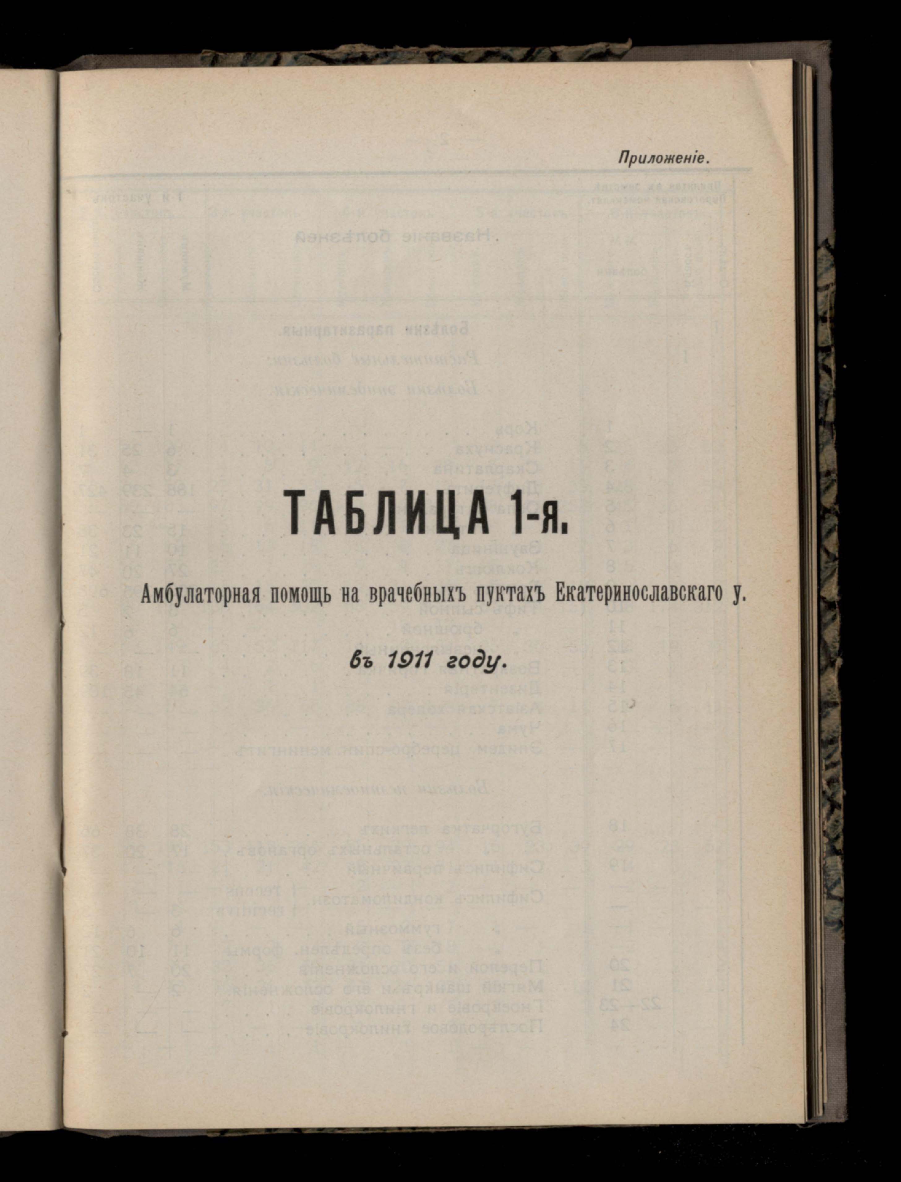 Приложене. Таблица 1-я, Амблуаторная помощь на врачебныхъ пунктахъ Екатеринославскаго у. въ 1911 году