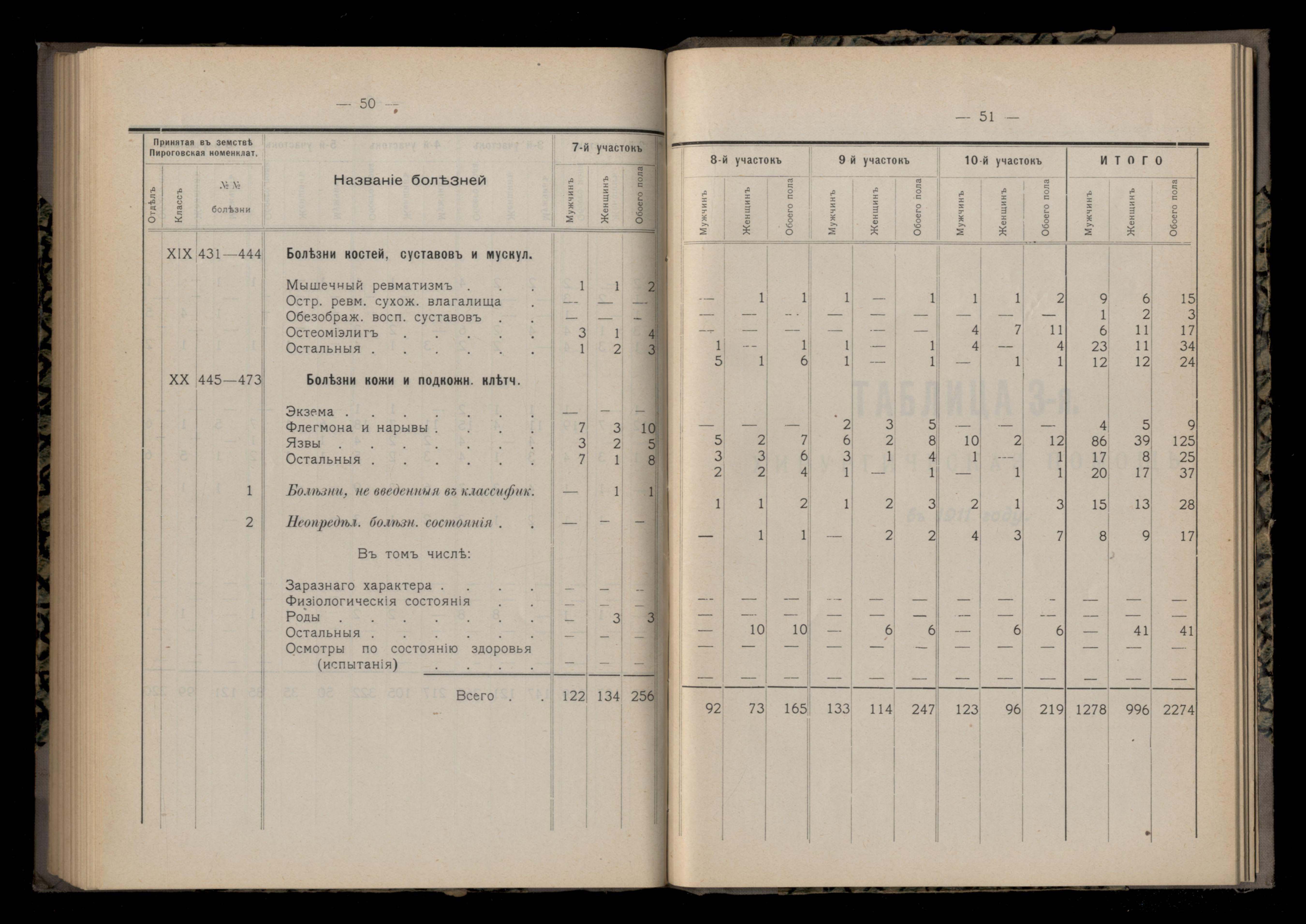 264. Таблица 3-я, Хирургическая помощь въ 1911 году