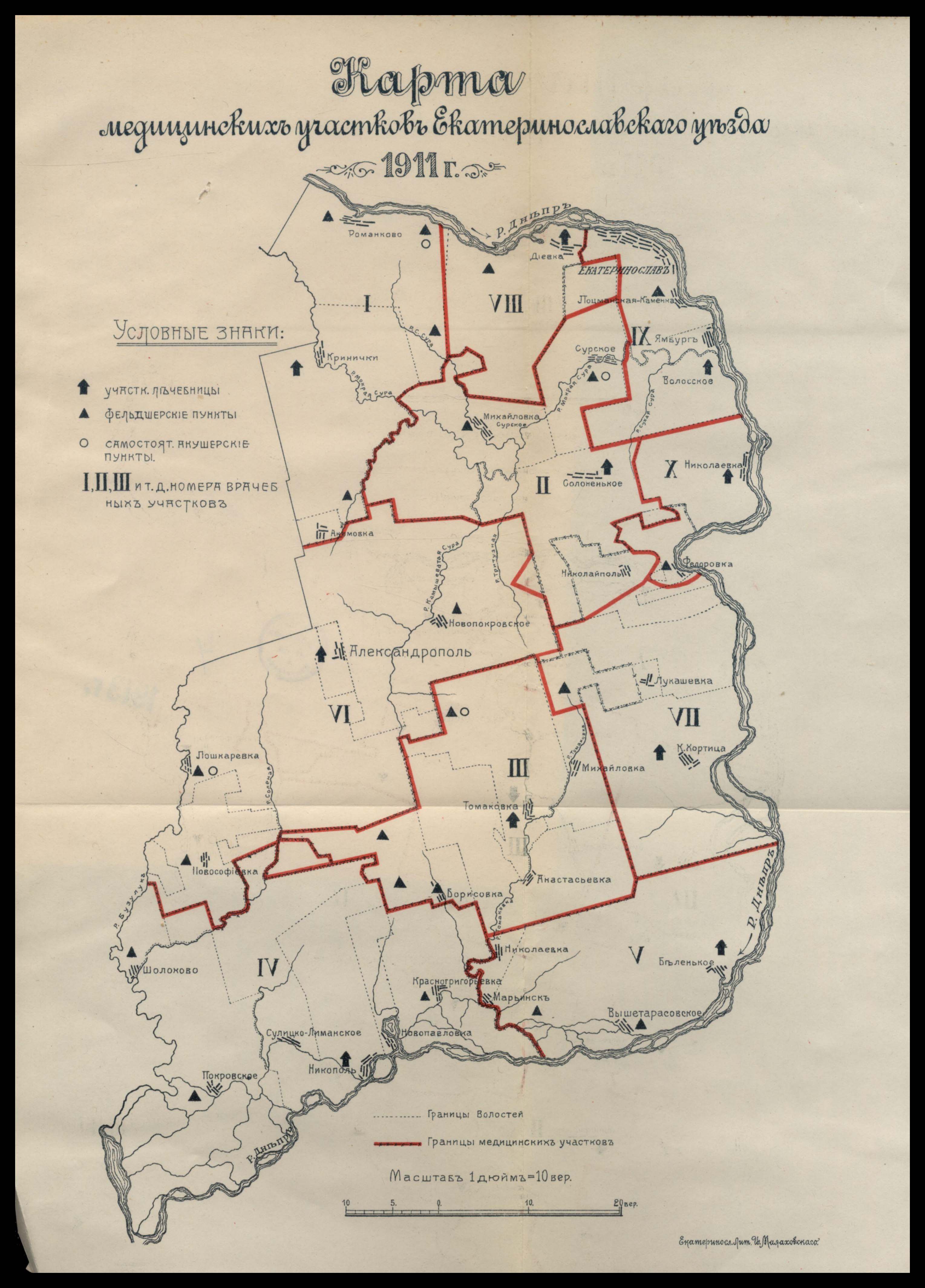 Карта медицинских участков Екатеринославскаго уезда 1911 го