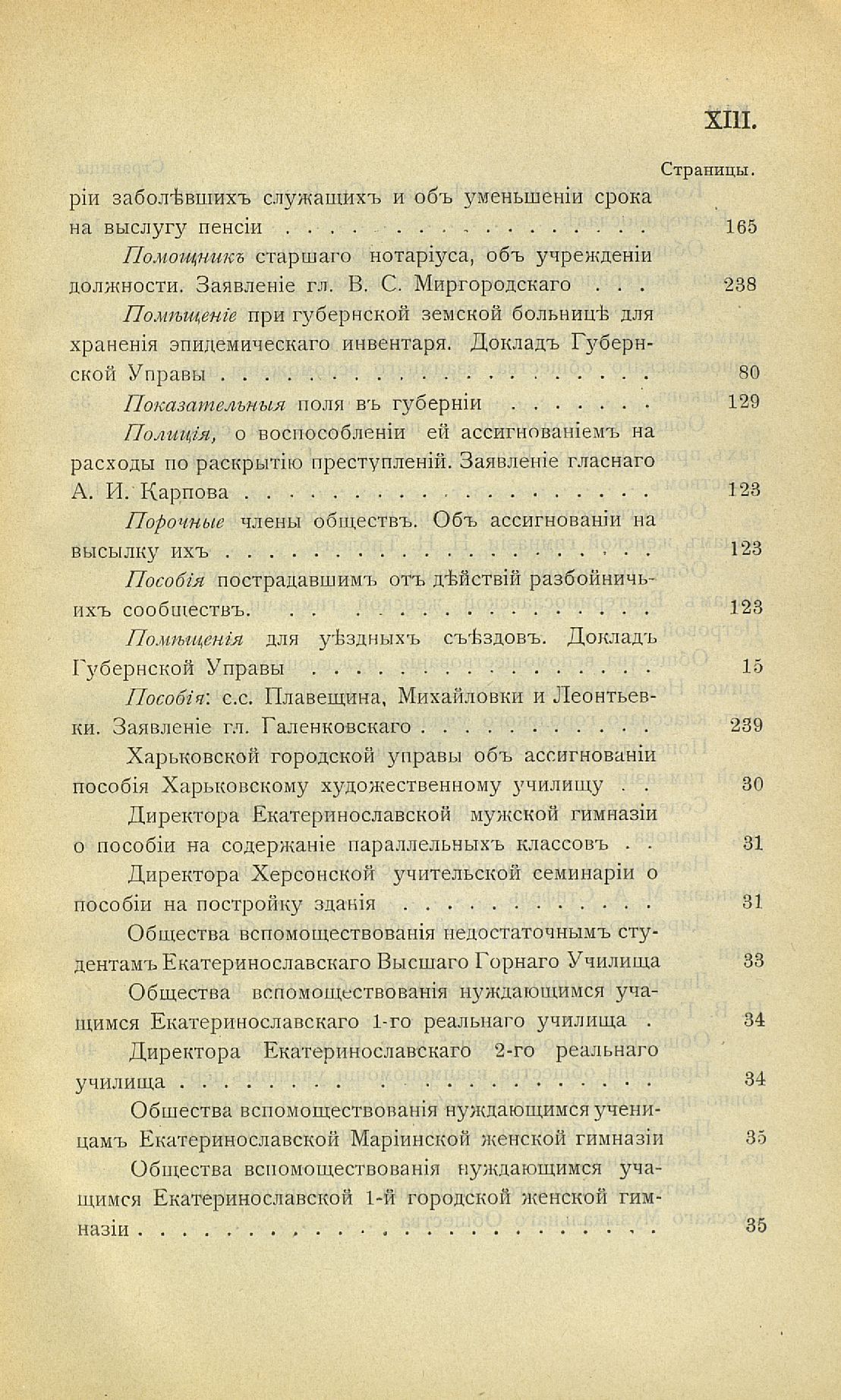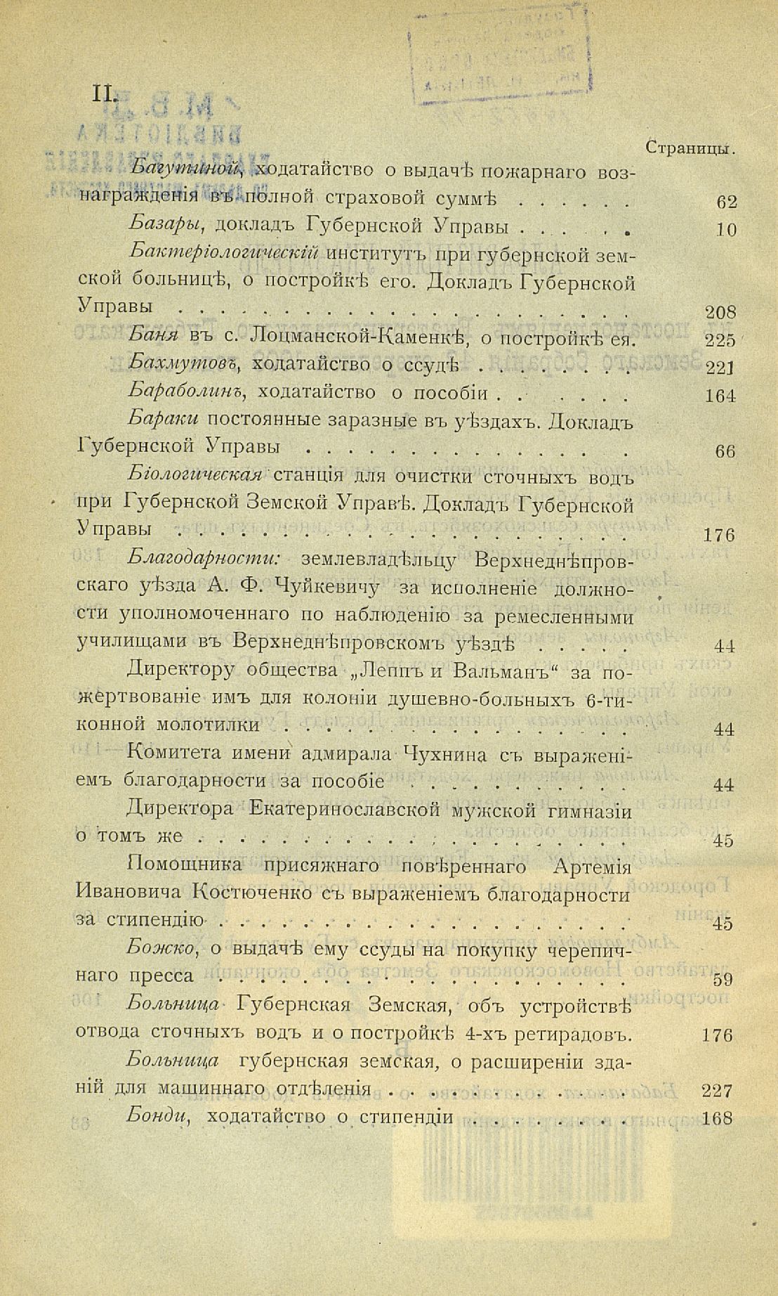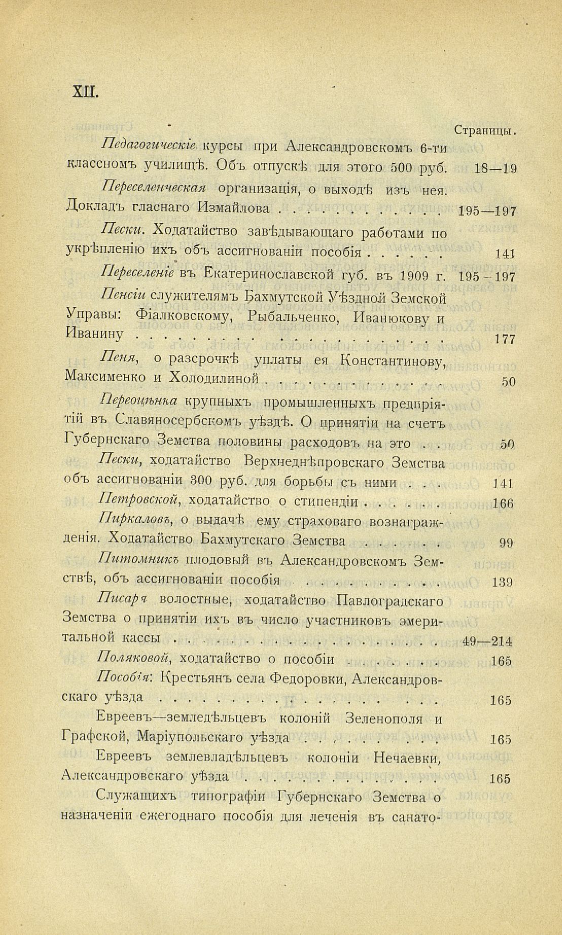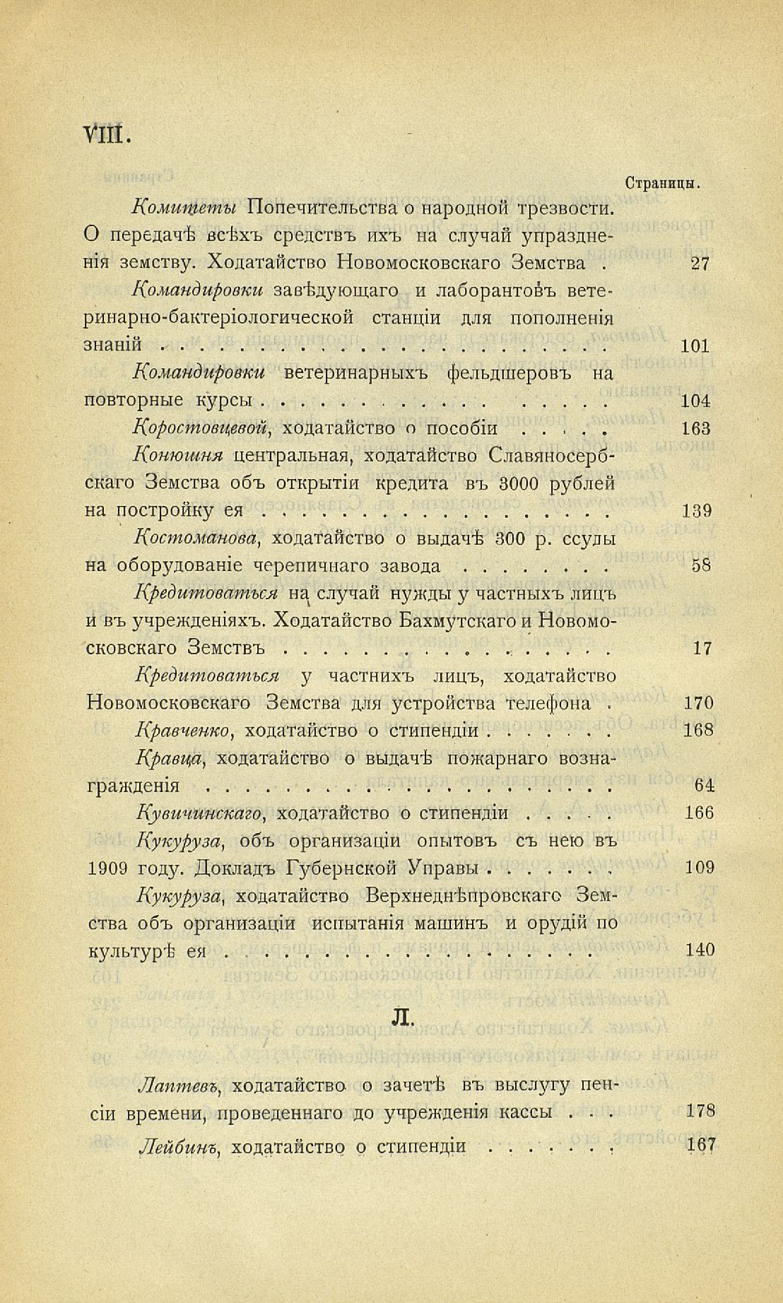 Алфавитный указатель къ постановленіямъ Екатеринославскаго Губернскаго Земскаго Собранія 43 очередной 1908 года сессіи