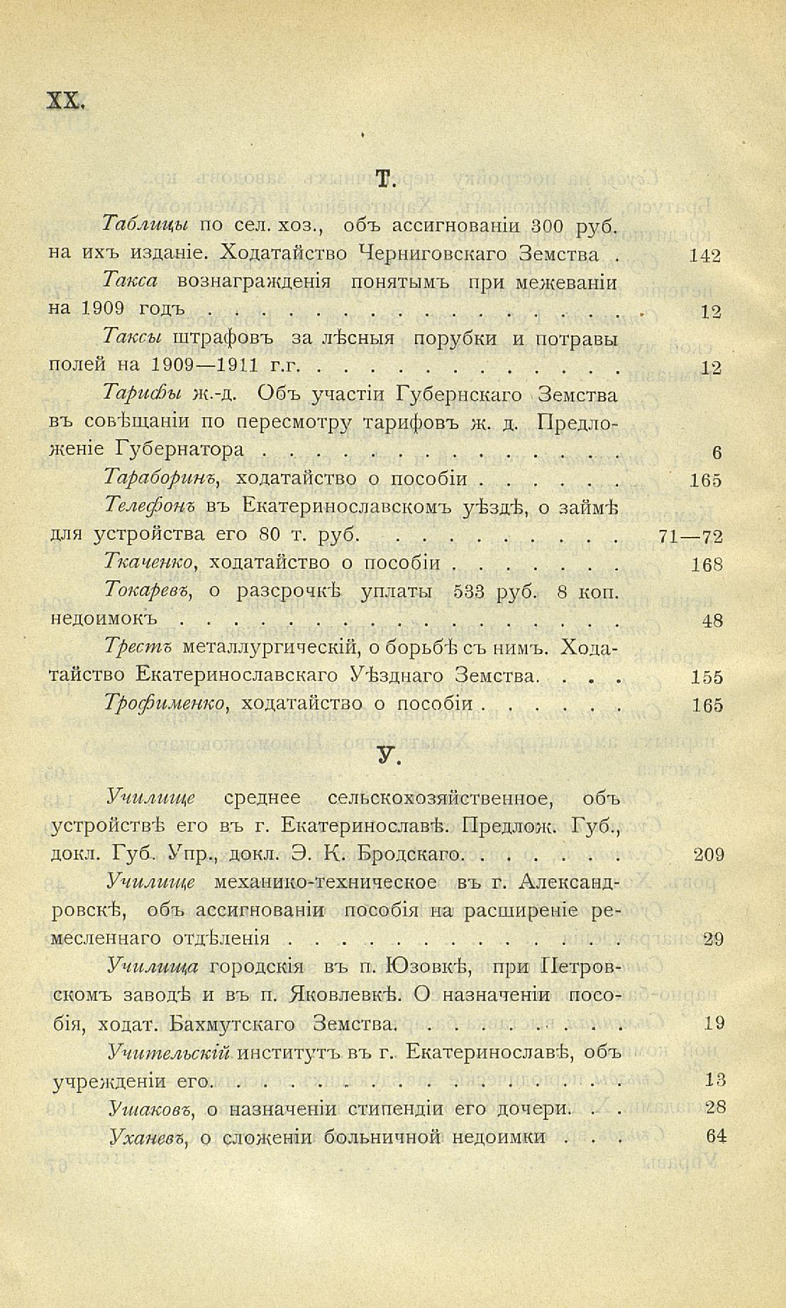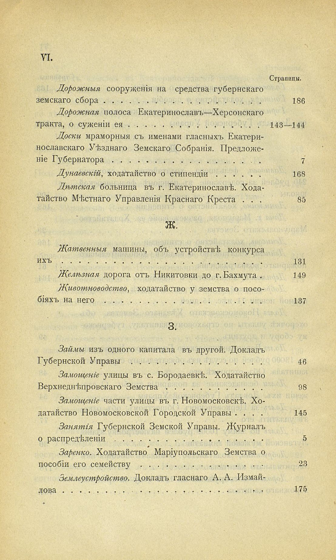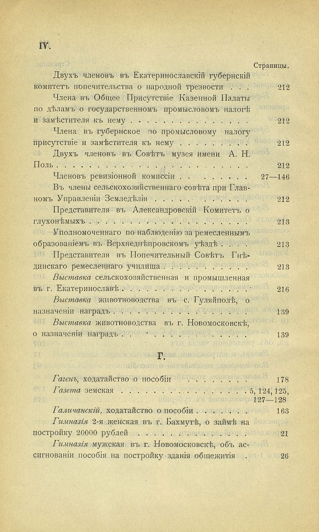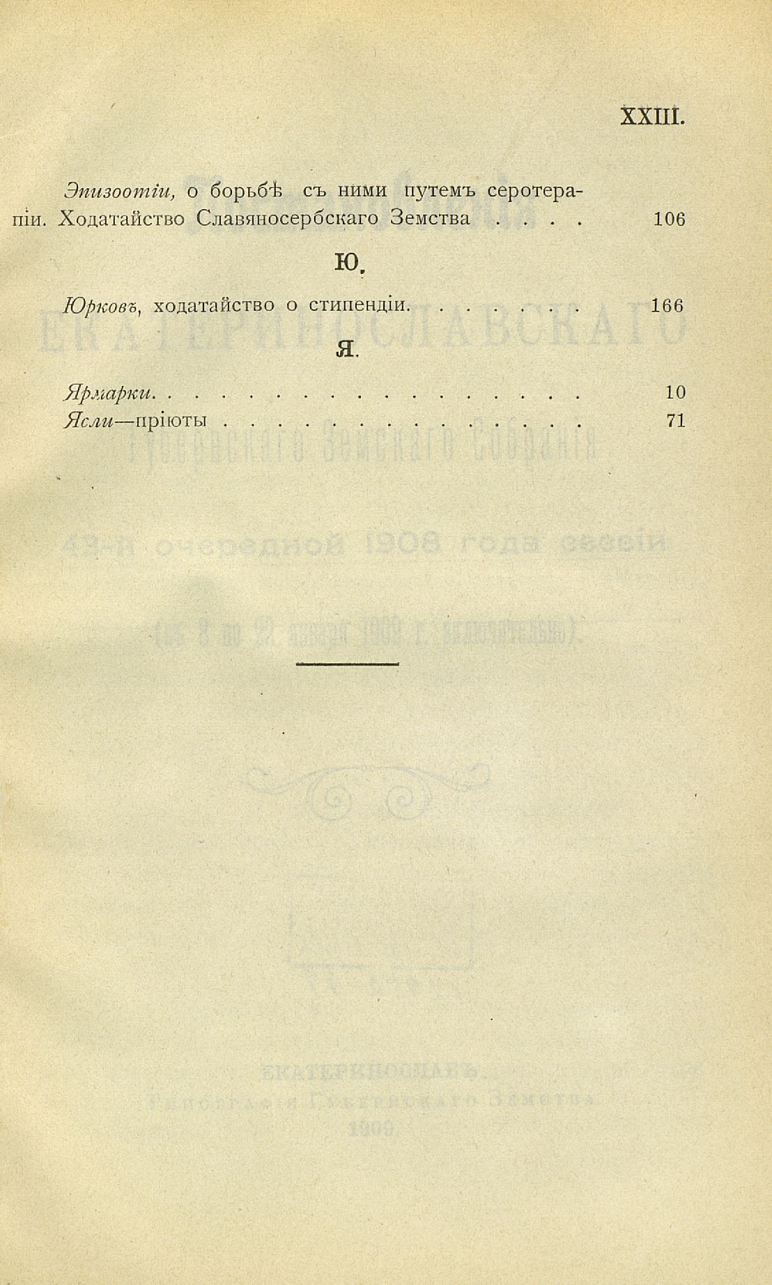 4. Алфавитный указатель къ постановленіямъ Екатеринославскаго Губернскаго Земскаго Собранія 43 очередной 1908 года сессіи