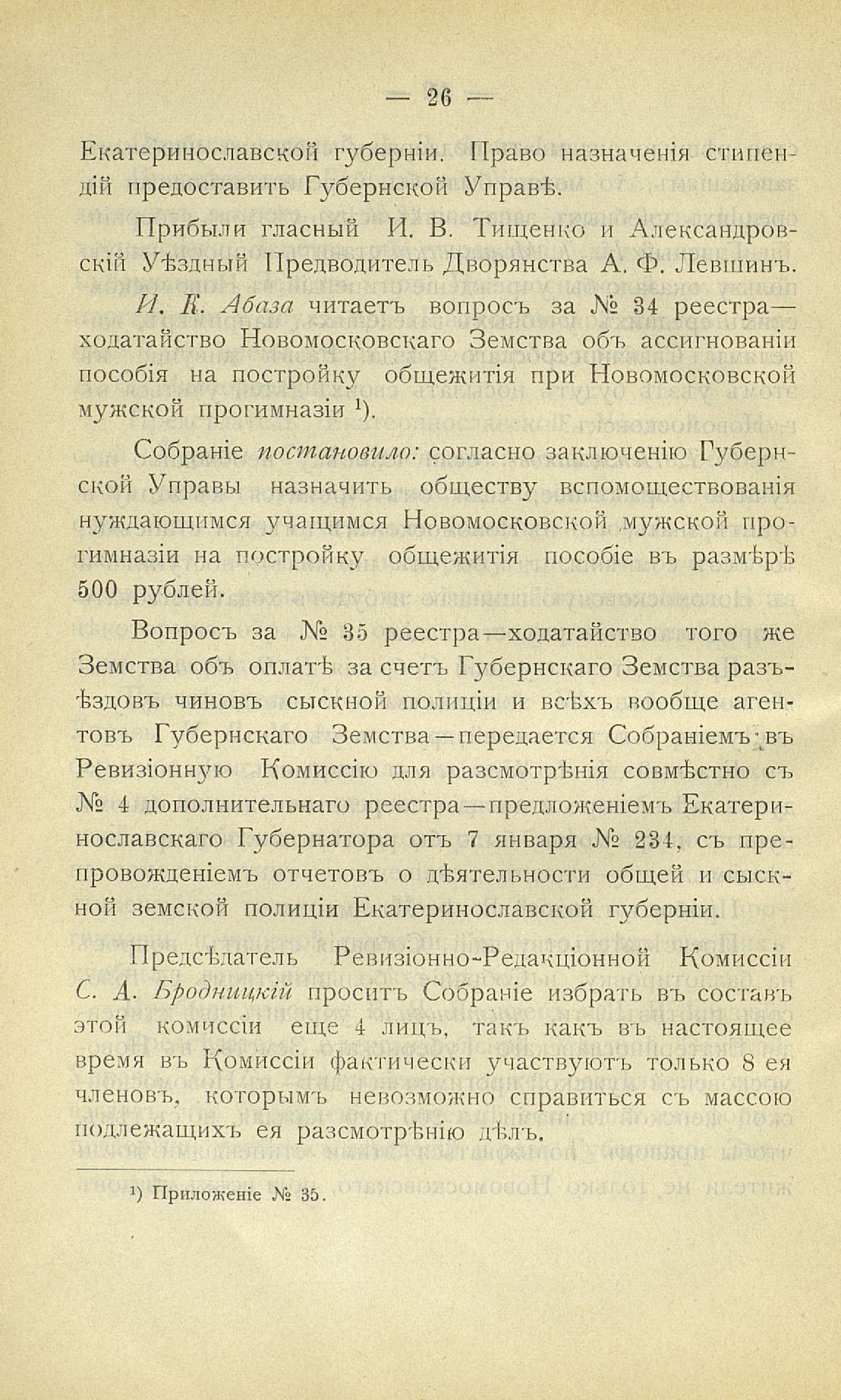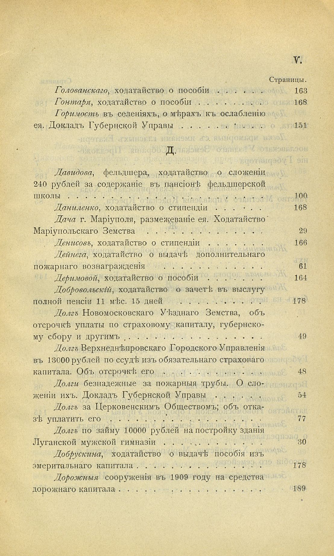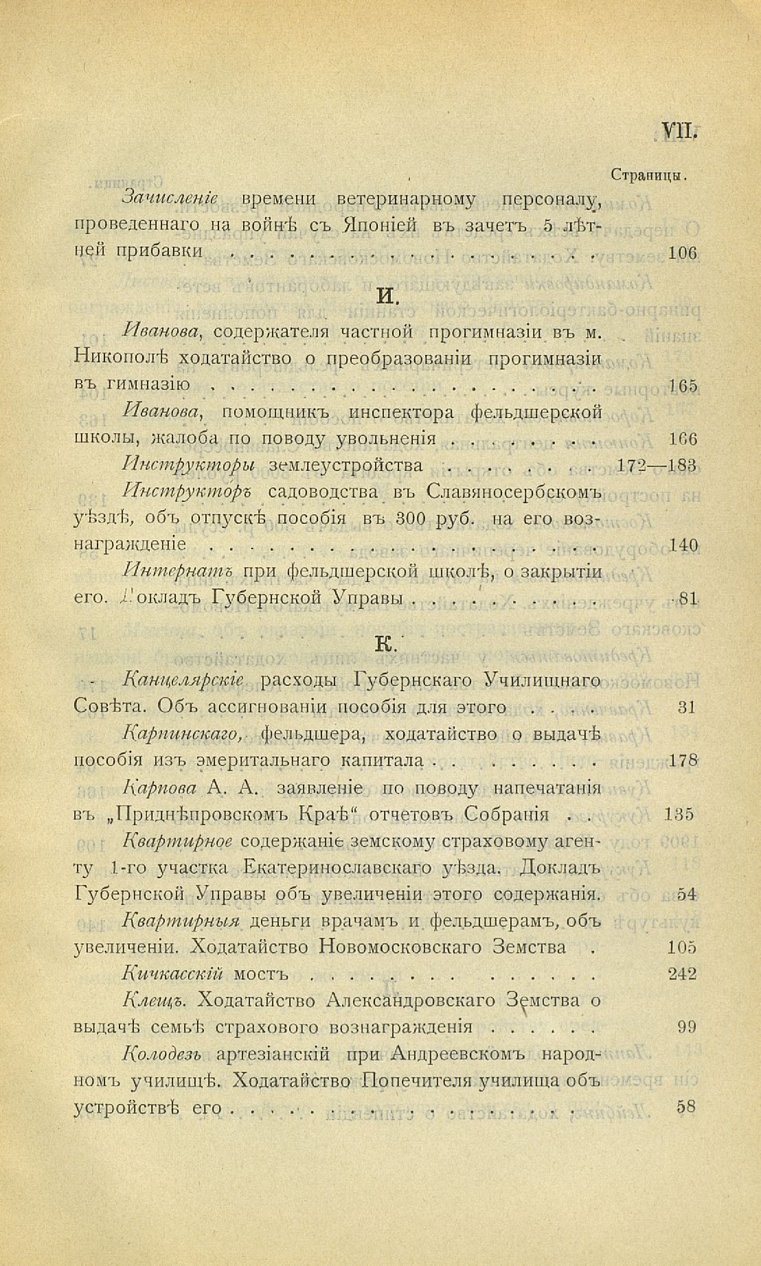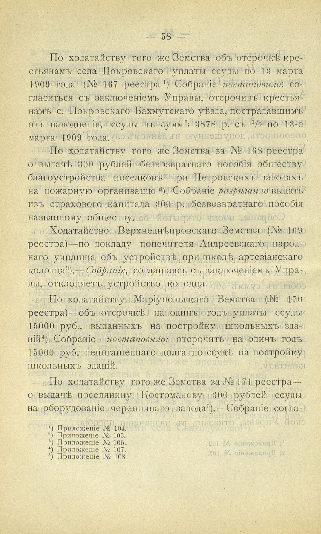 4. Алфавитный указатель къ постановленіямъ Екатеринославскаго Губернскаго Земскаго Собранія 43 очередной 1908 года сессіи
