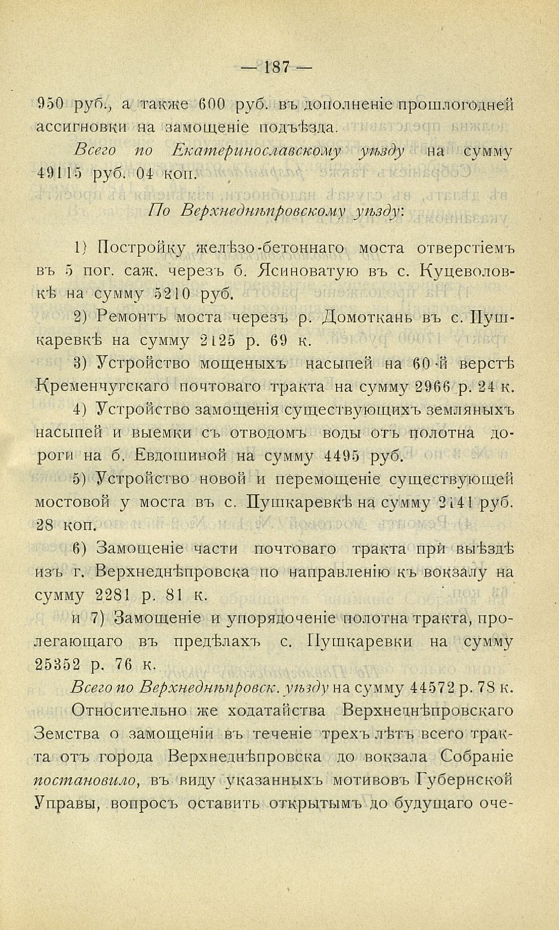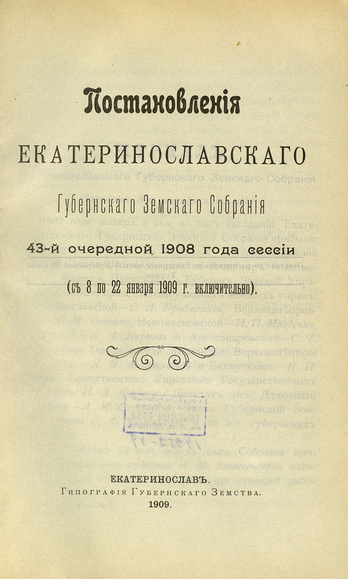 Постановленія Екатеринославскаго Губернскаго Земскаго Собранія 43-й очередной 1908 года сессіи (съ 8 по 22 января 1909 г. включительно)
