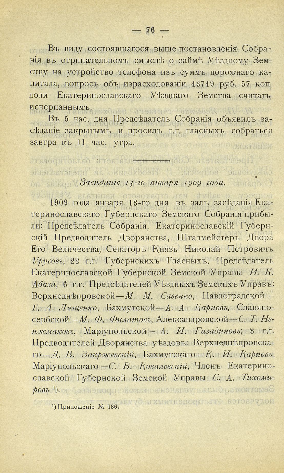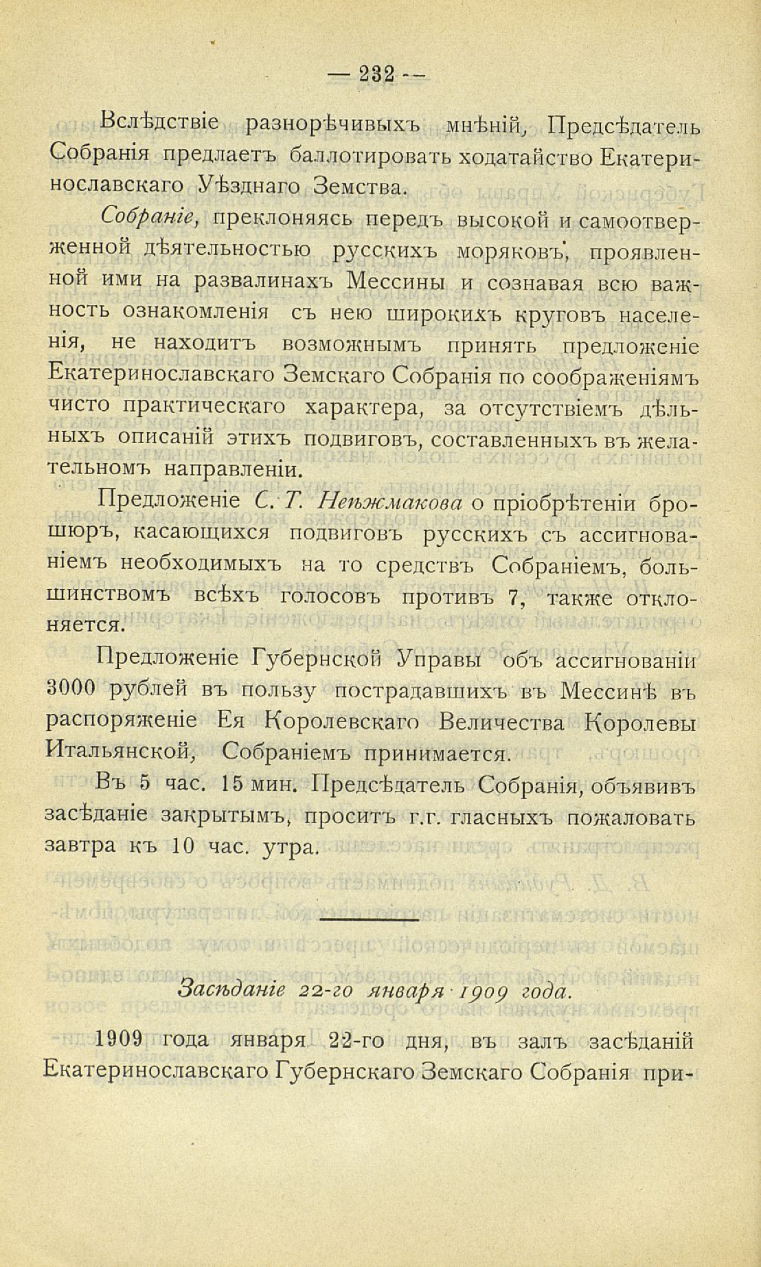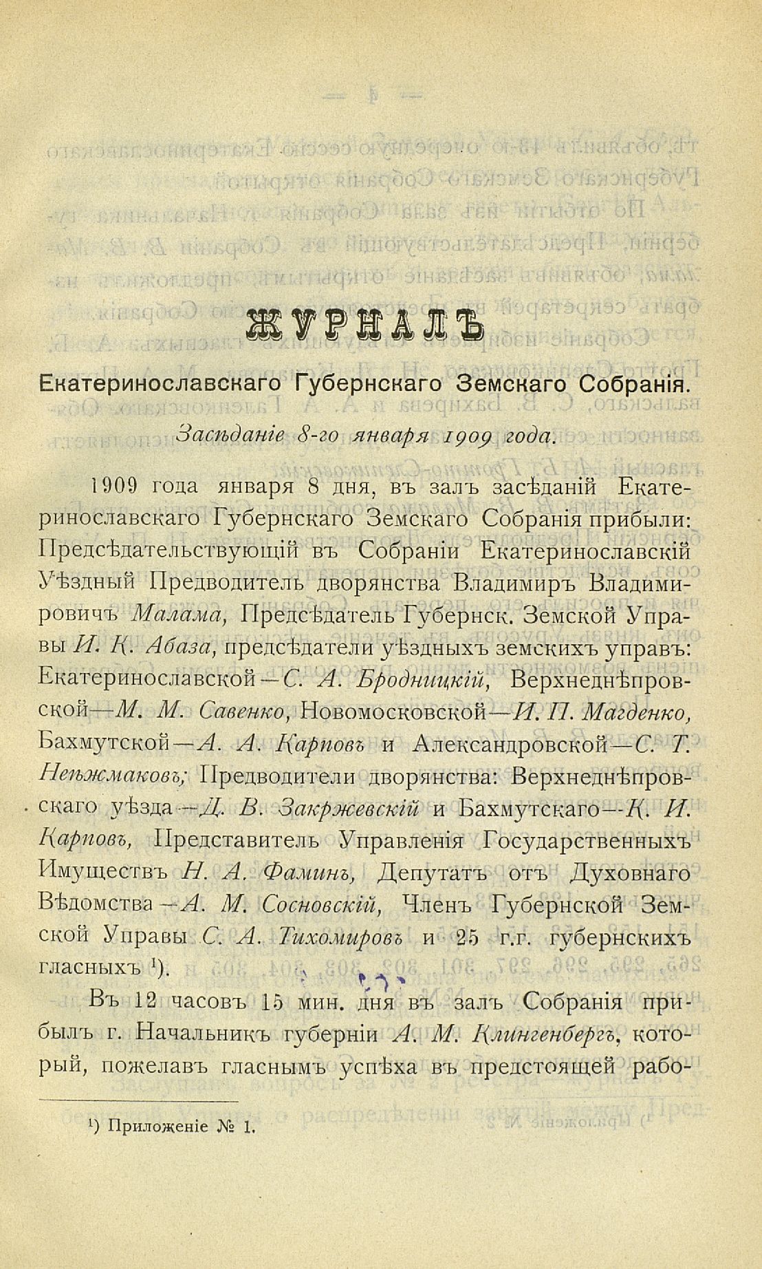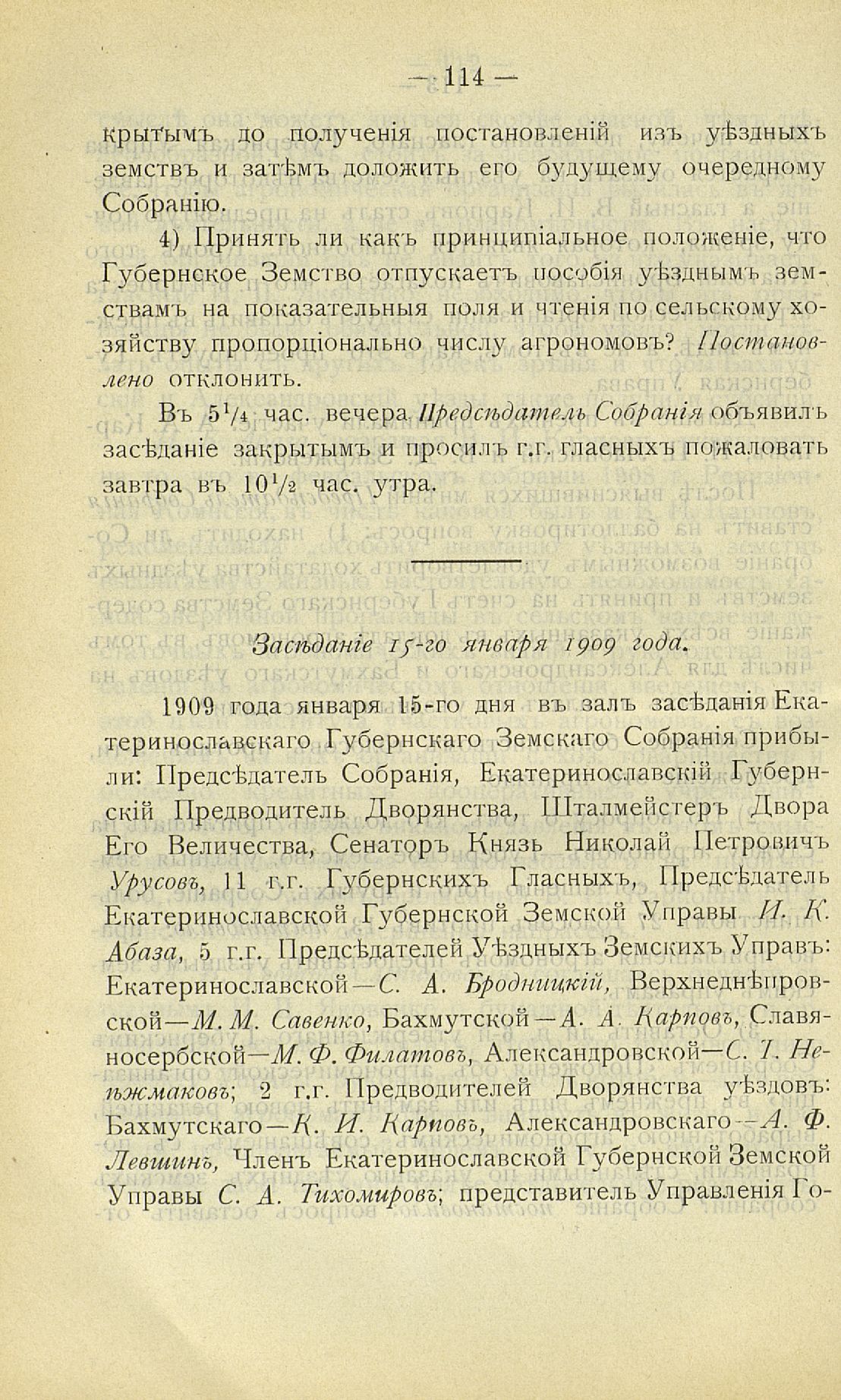 Журналъ Екатеринославскаго Губернскаго Земскаго Собранія. Заседаніе 8-го января 1909 года