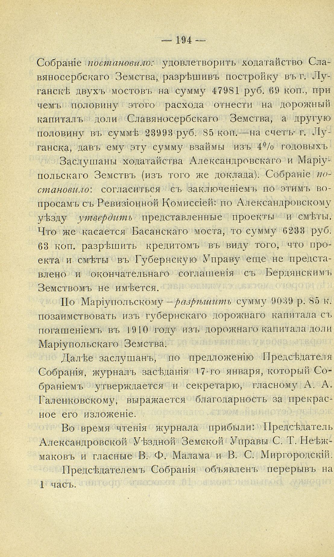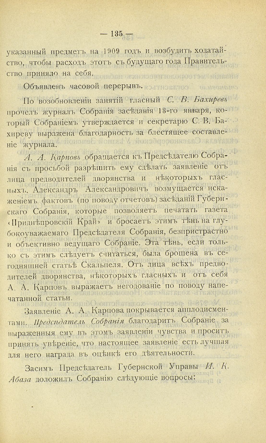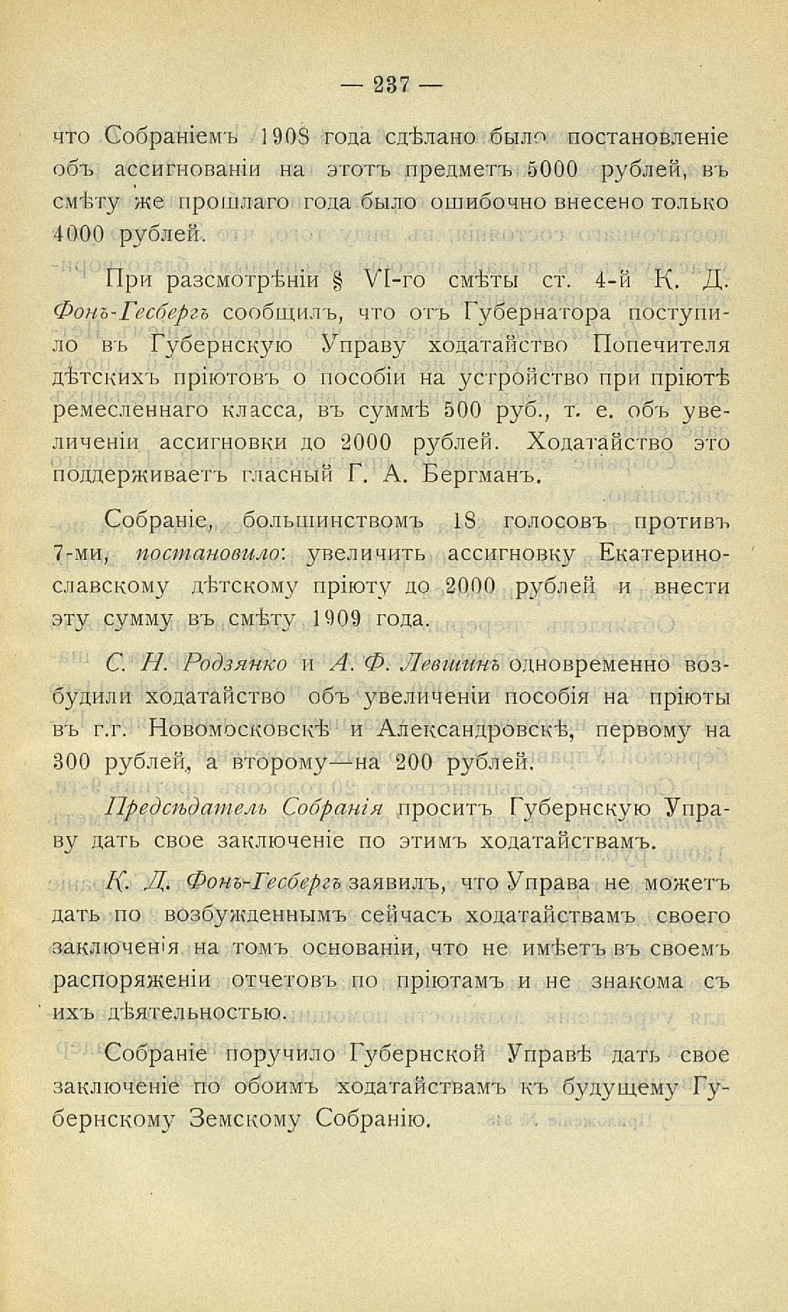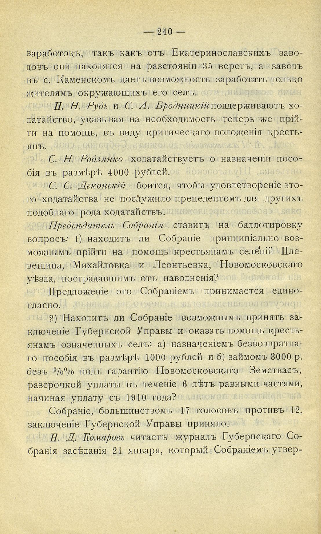 Журналъ Екатеринославскаго Губернскаго Земскаго Собранія. Заседаніе 8-го января 1909 года