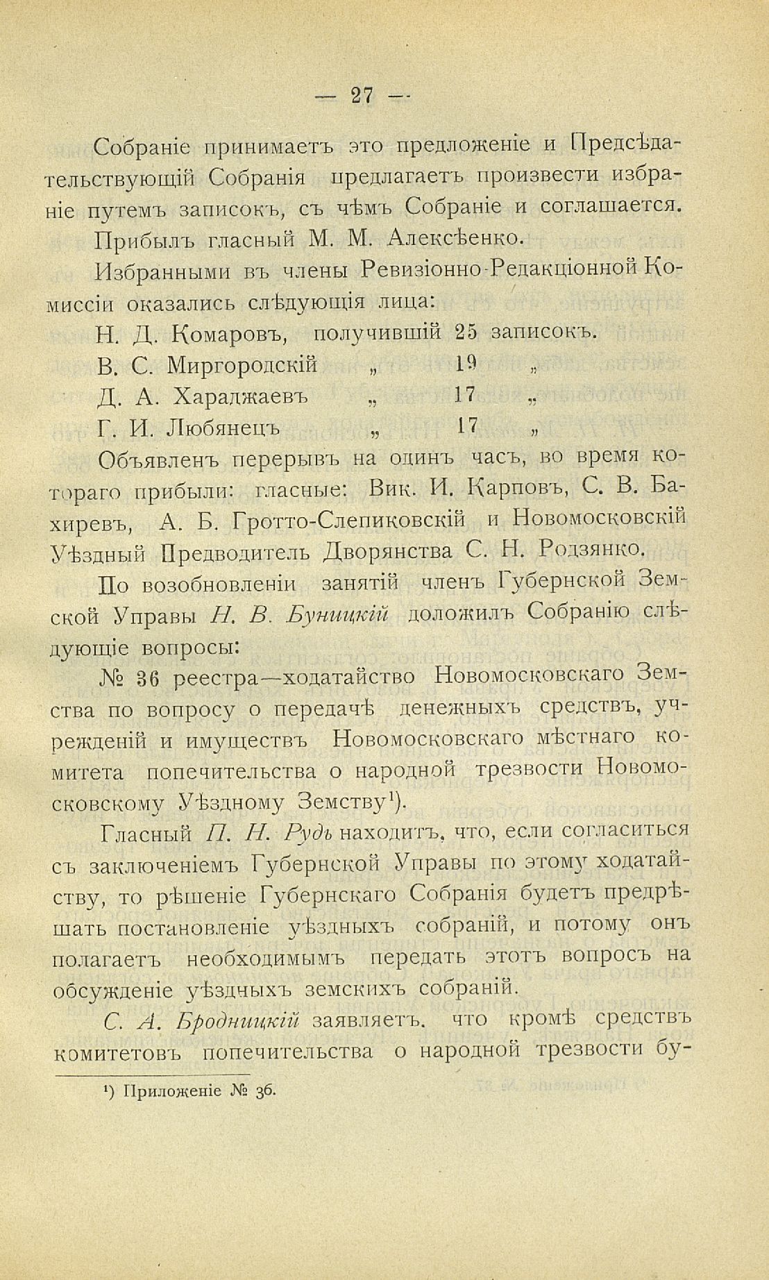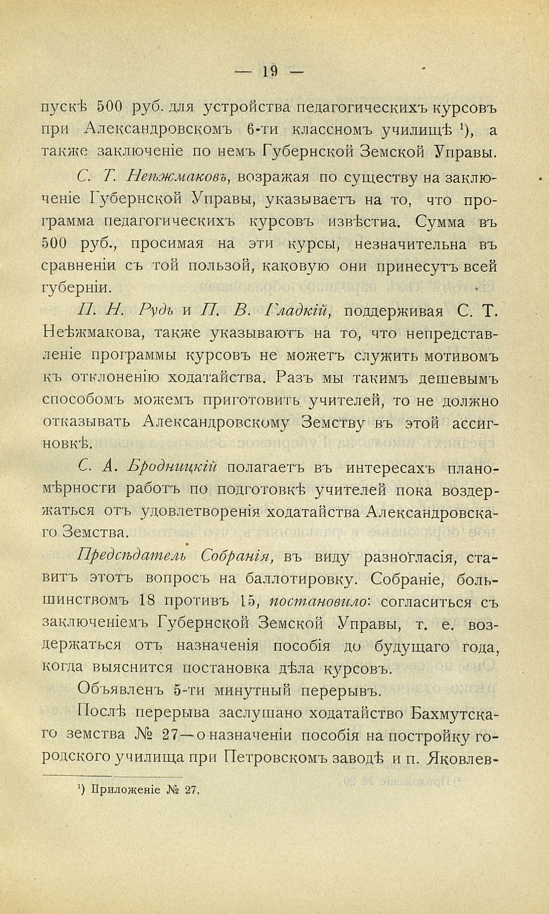 27. Постановленія Екатеринославскаго Губернскаго Земскаго Собранія 43-й очередной 1908 года сессіи (съ 8 по 22 января 1909 г. включительно)