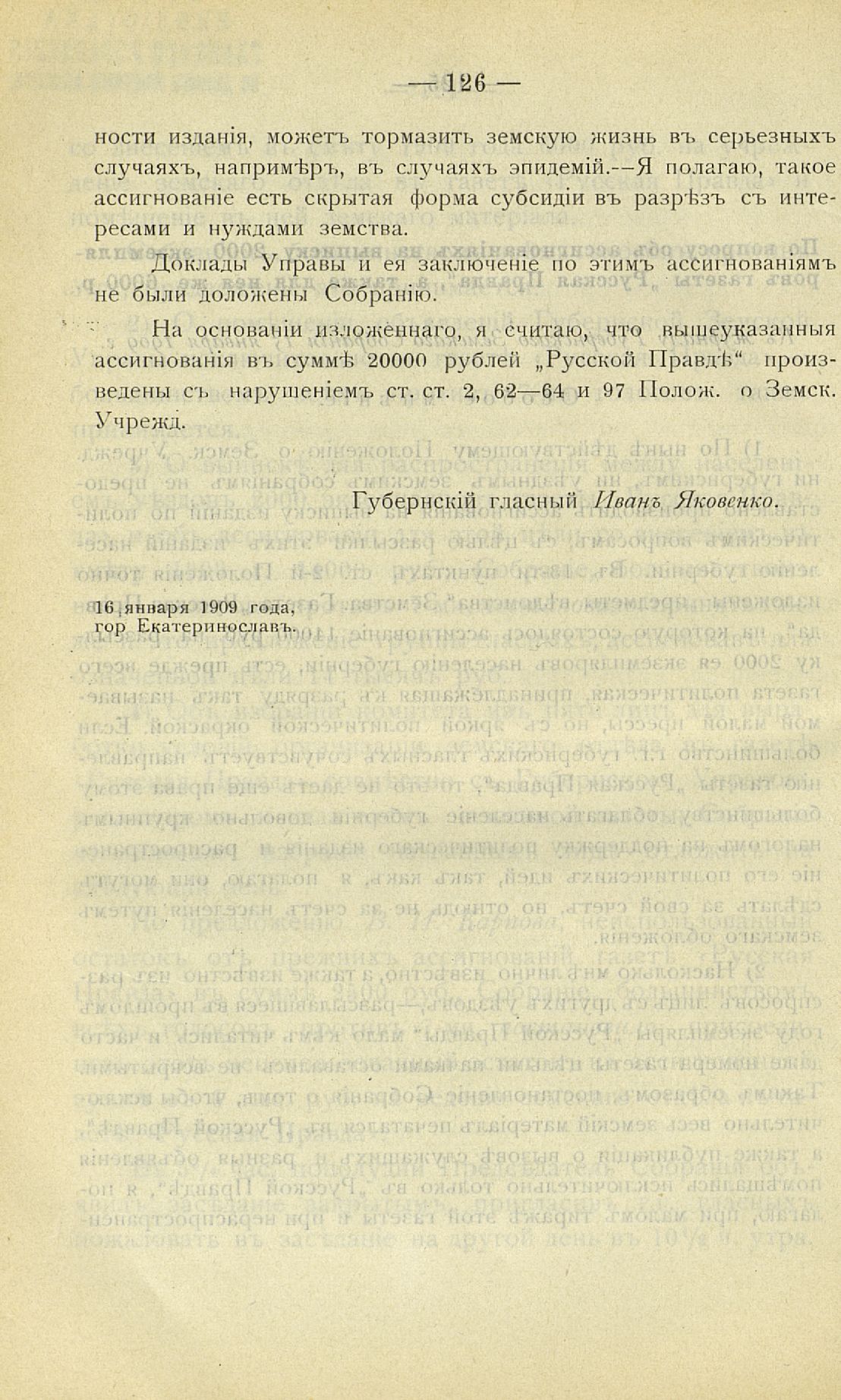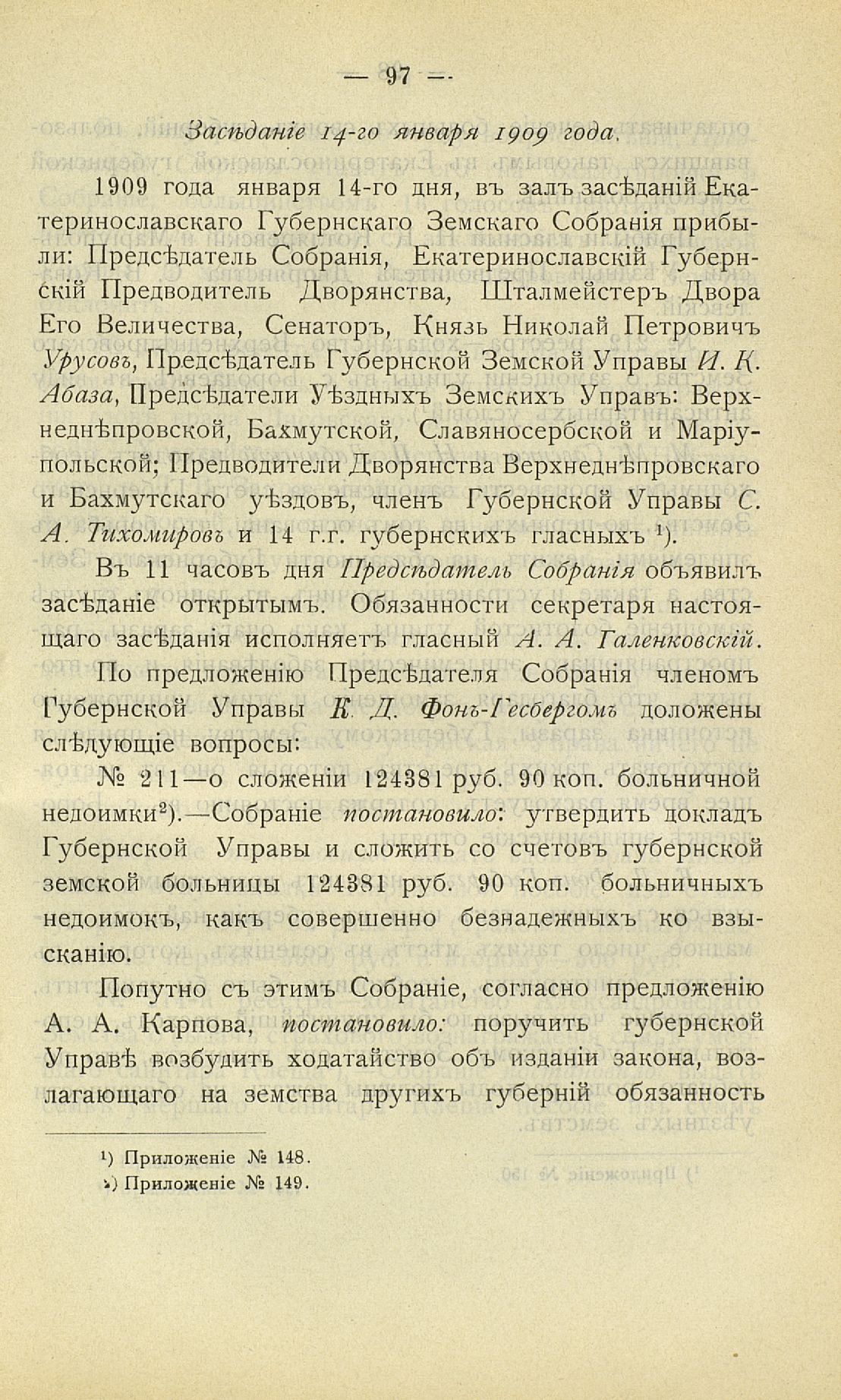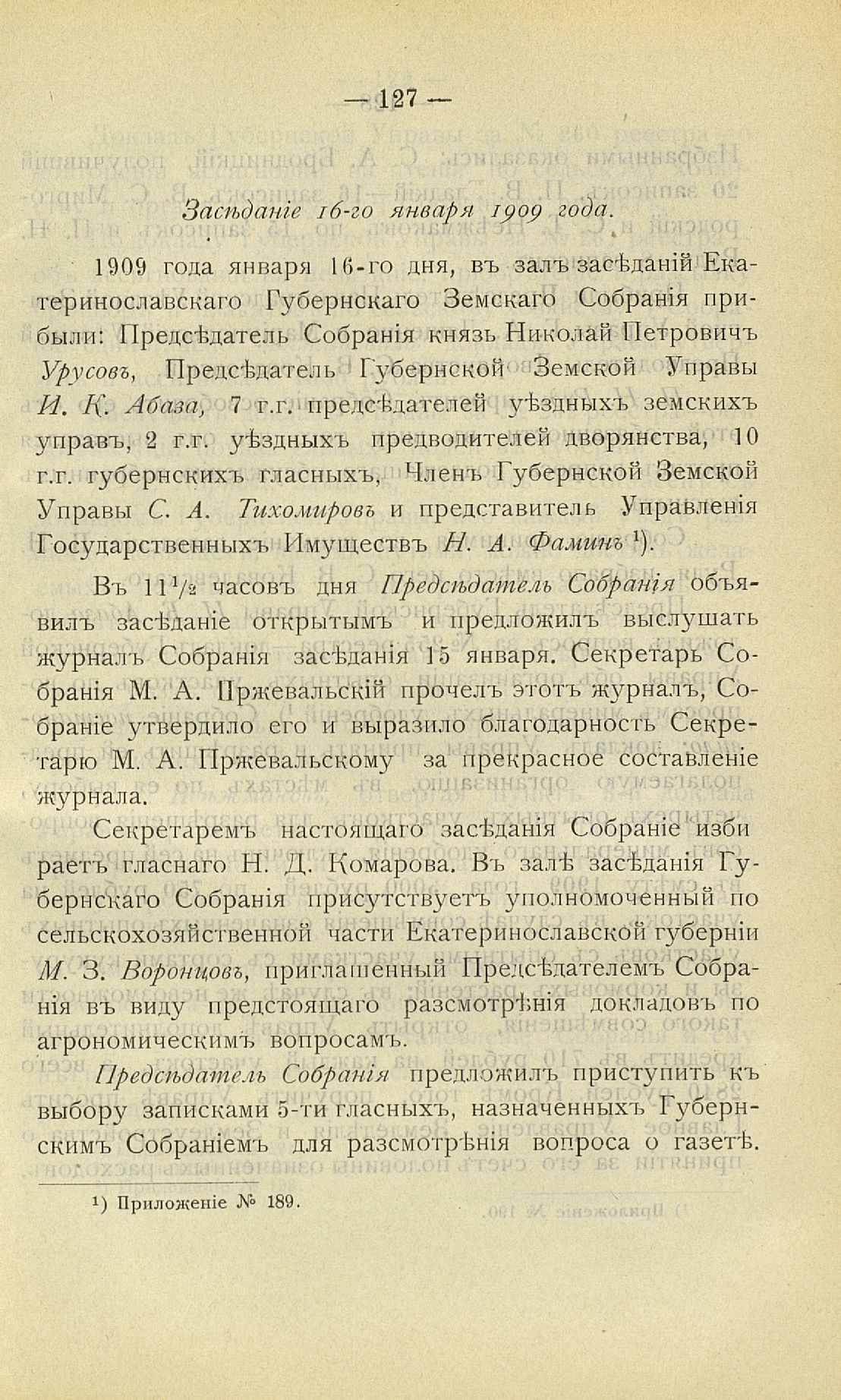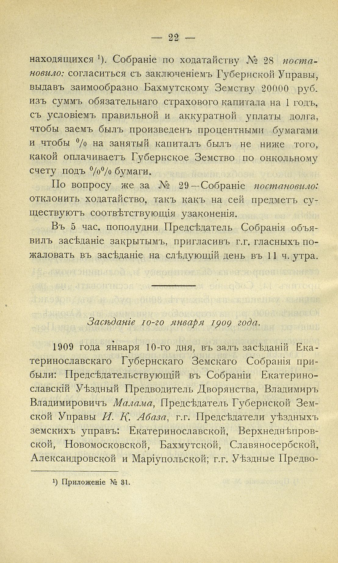 29. Журналъ Екатеринославскаго Губернскаго Земскаго Собранія. Заседаніе 8-го января 1909 года
