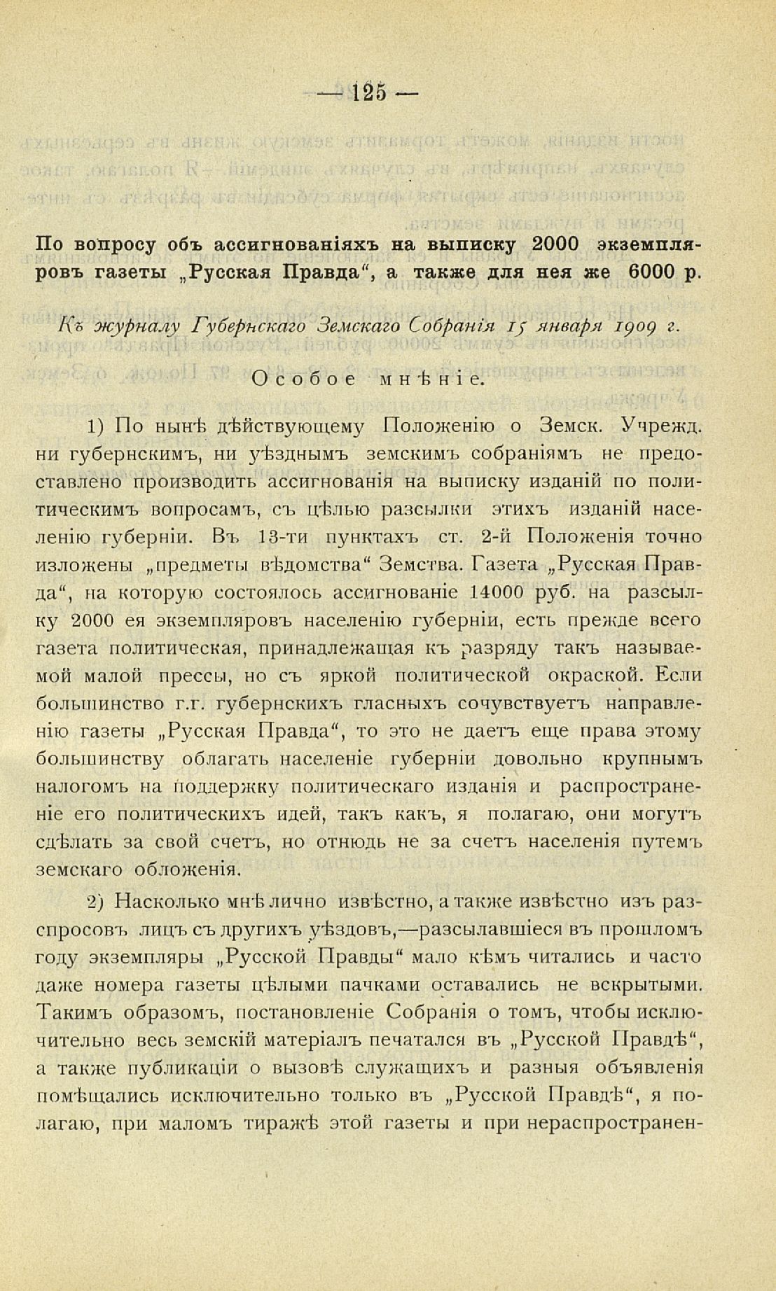 151. По вопросу объ ассигнованіяхъ на выписку 2000 экземпляров газеты "Русская Правда"