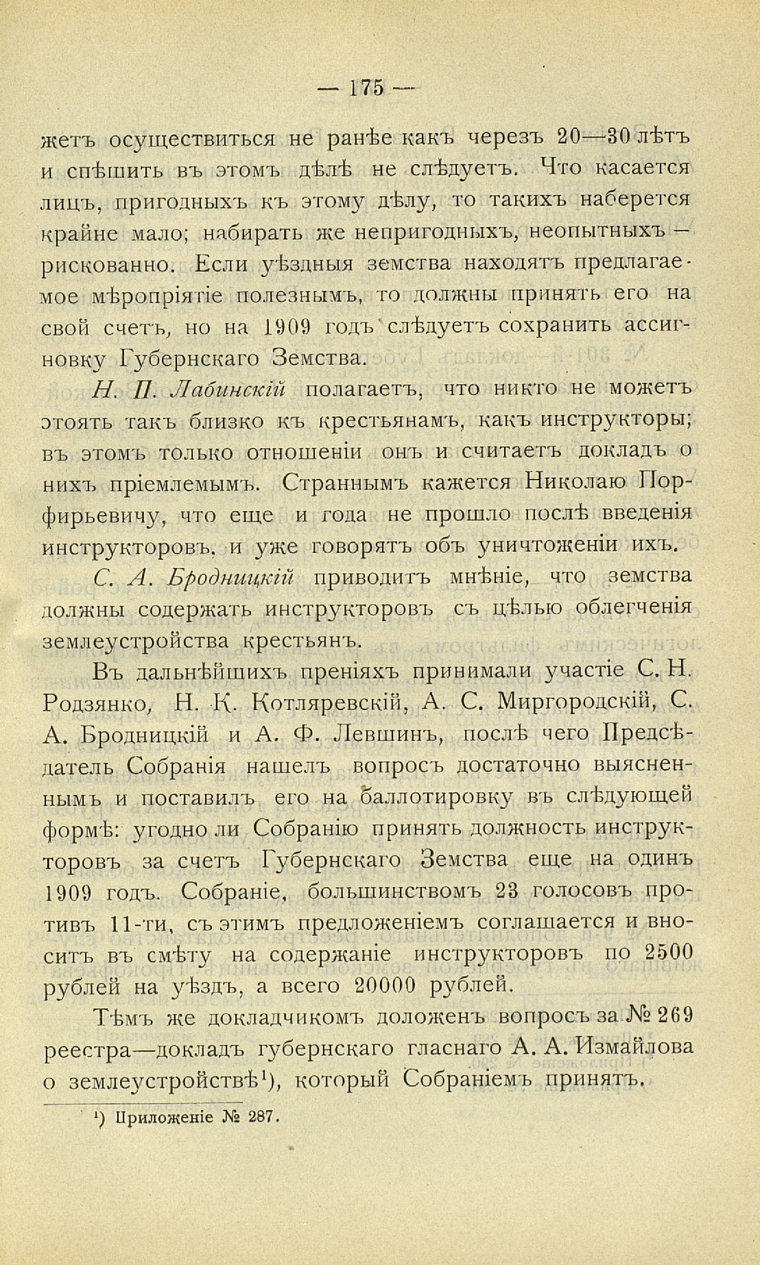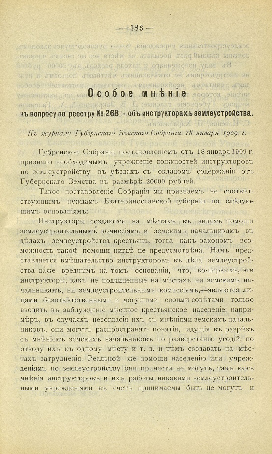 209. Особое мнъніе къ вопросу по реестру №268- объ инструкторахъ землеустройства