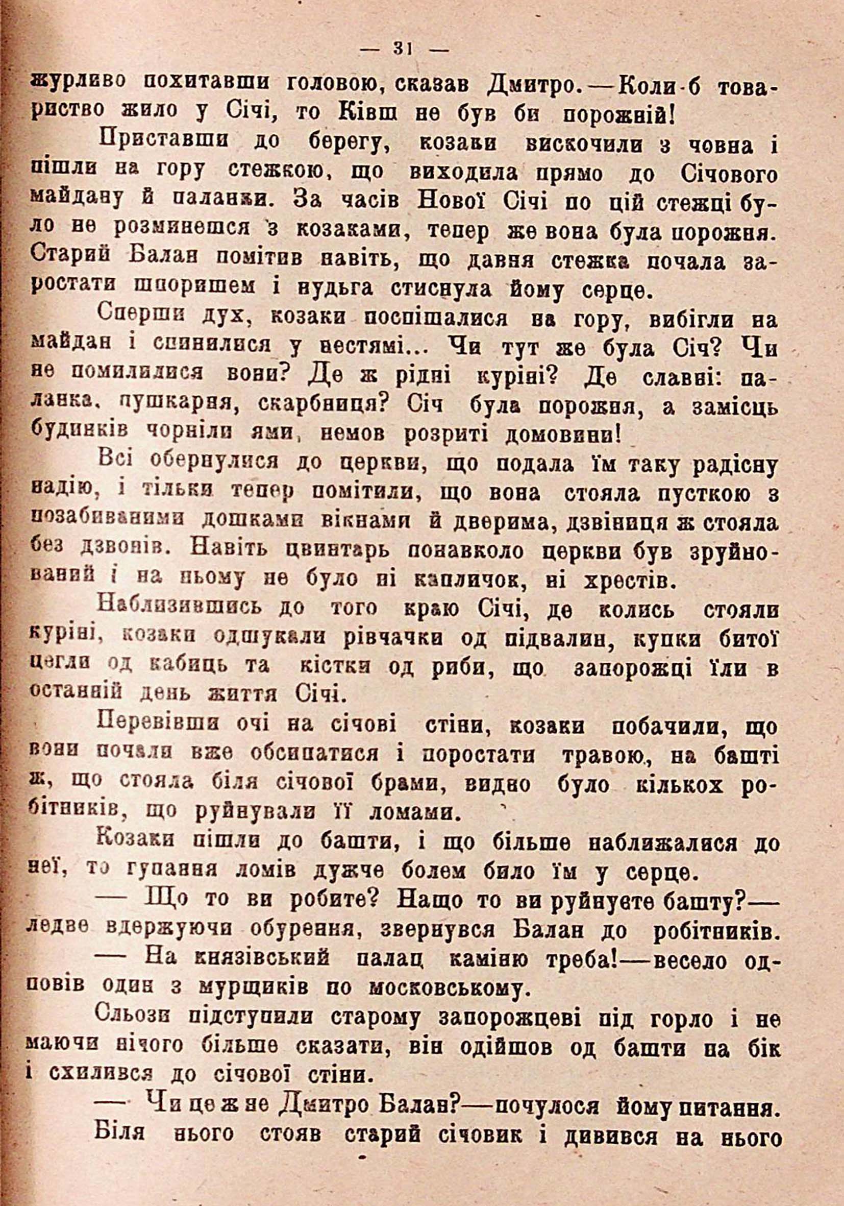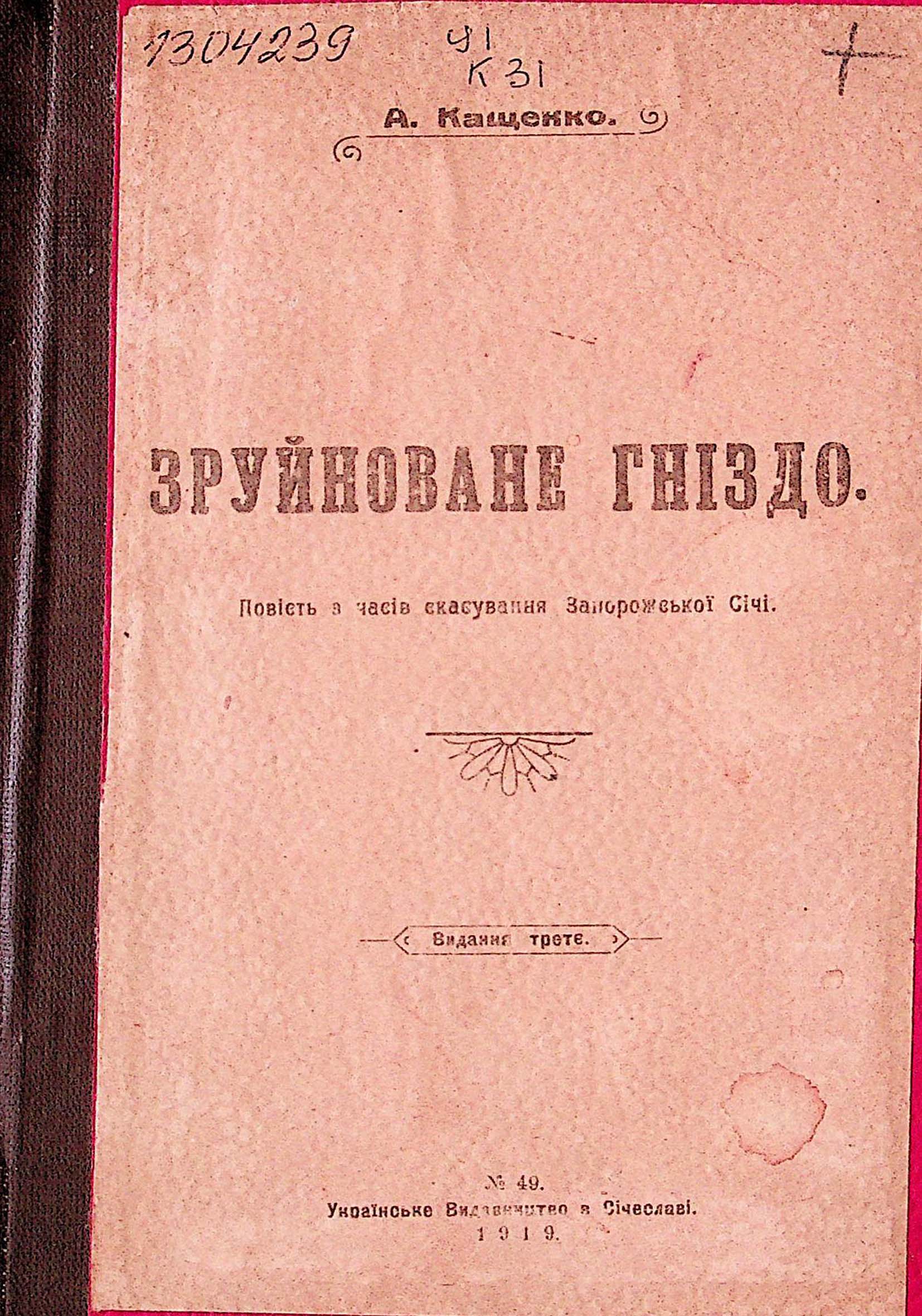 1. А. Кащенкою ЗРУЙНОВАНЕ ГНІЗДО. Повість з часів скасуваня Запорожської Січі