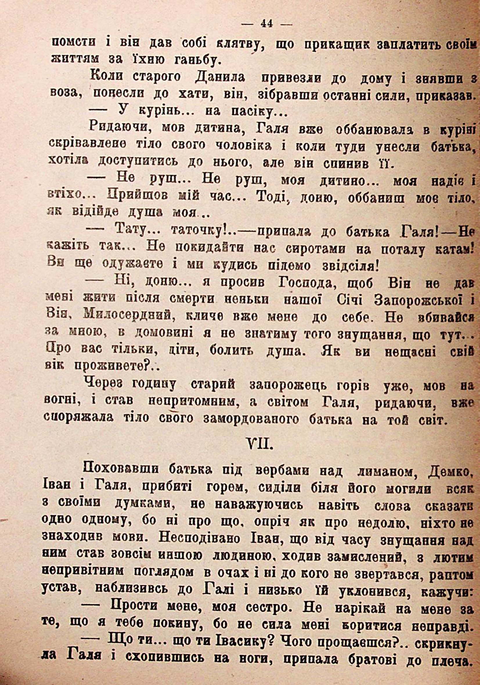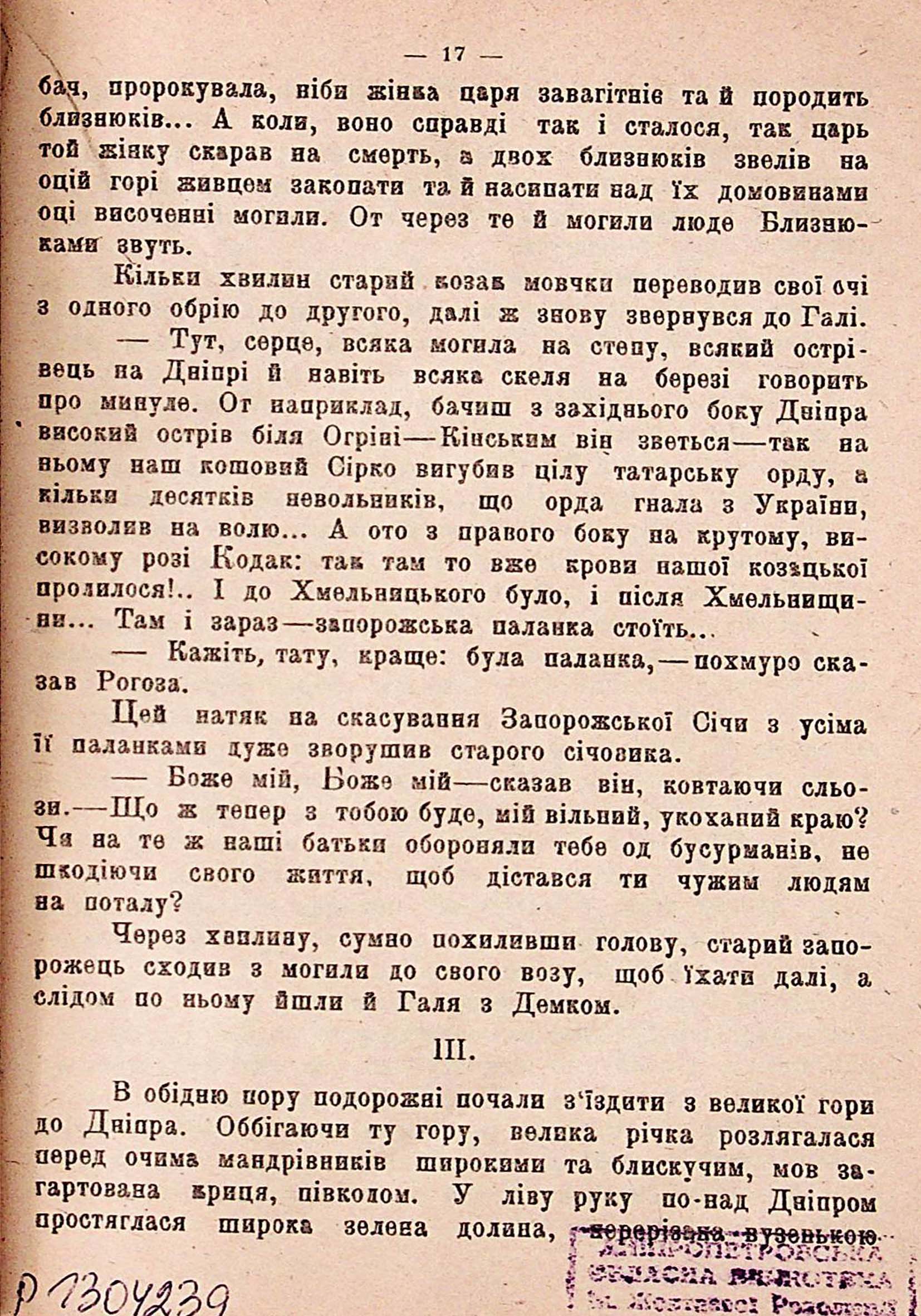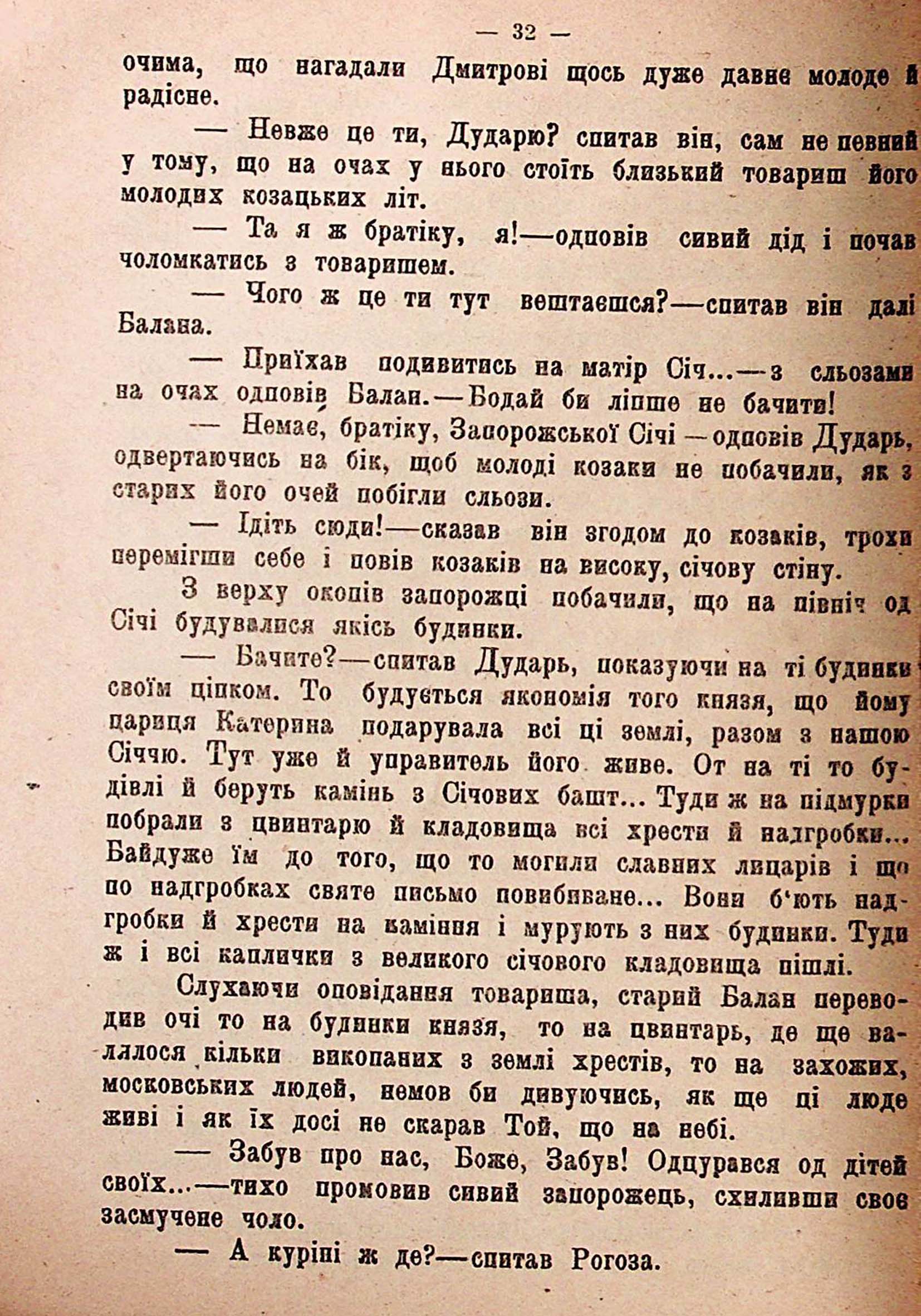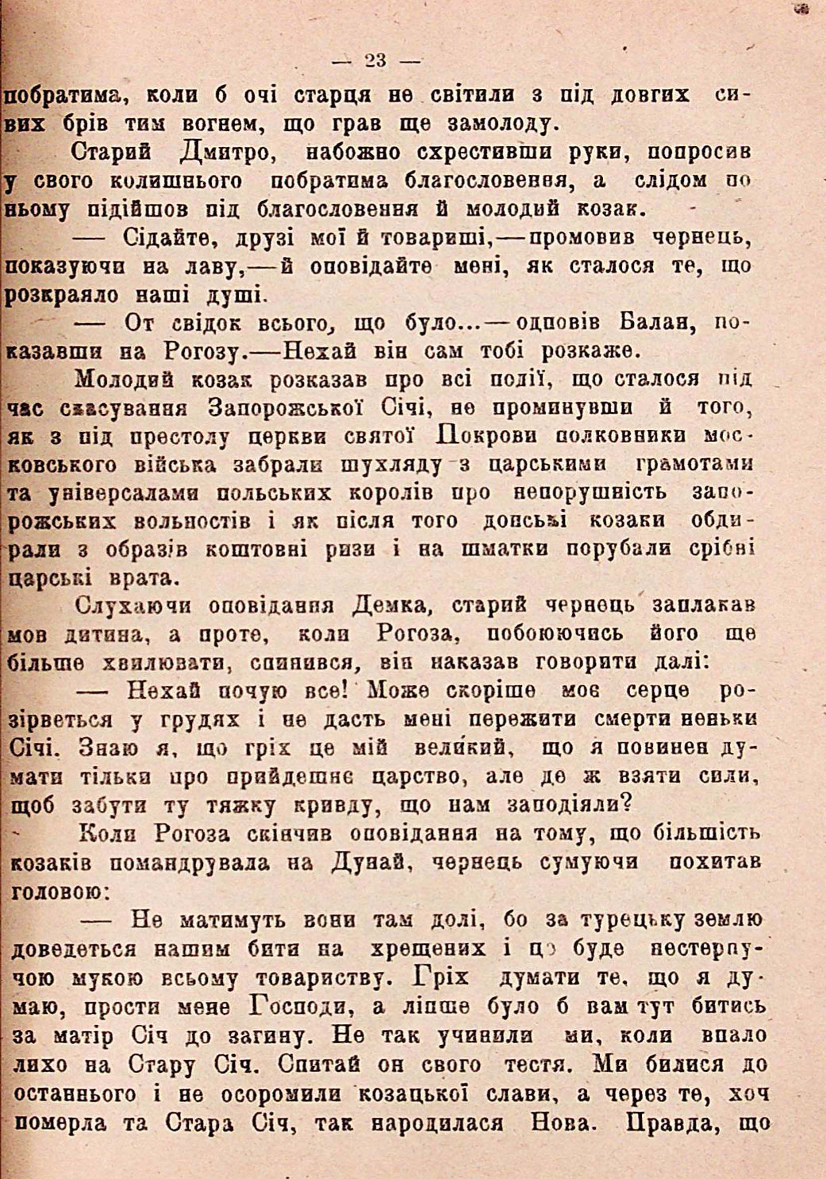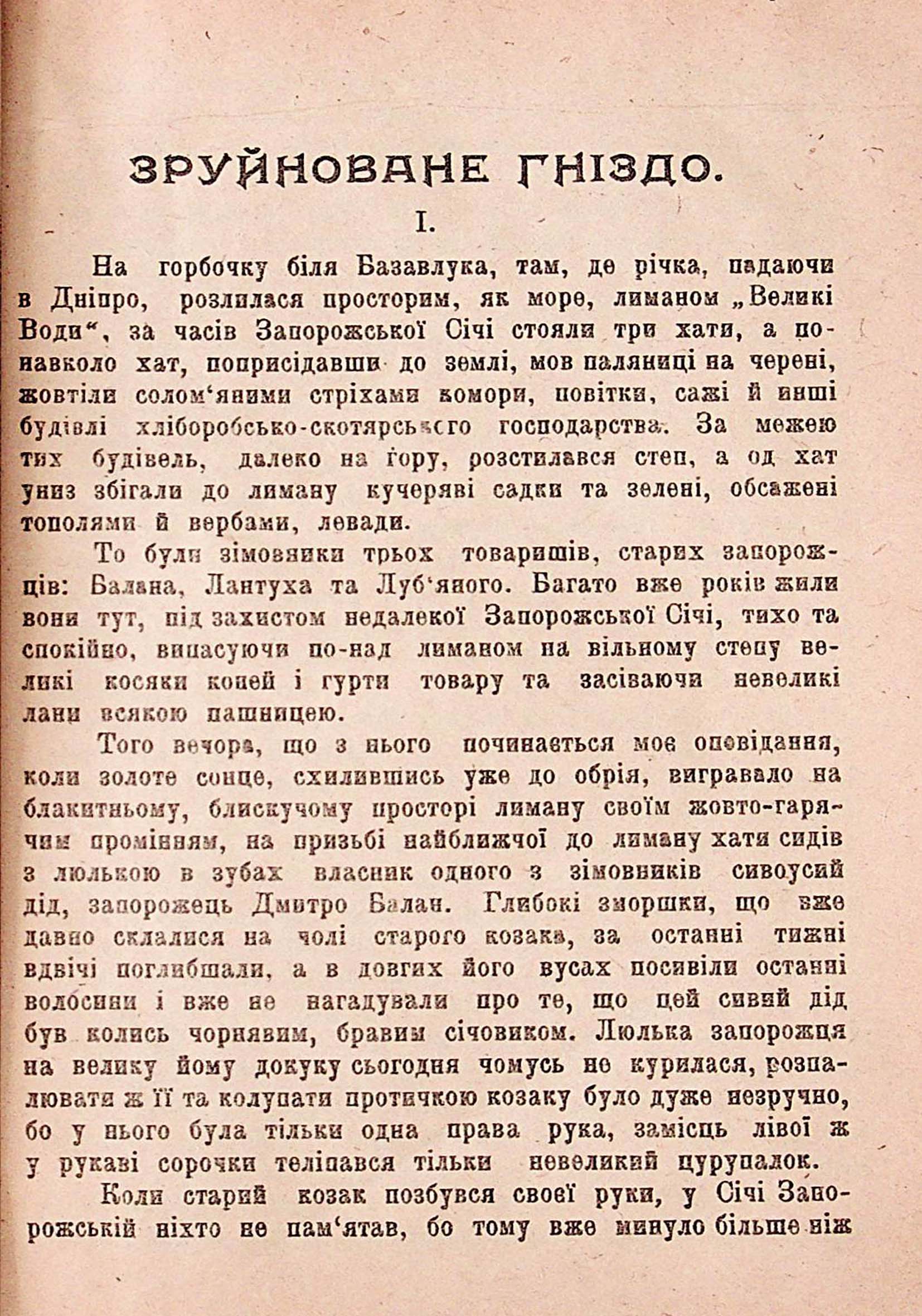ЗРУЙНОВАНЕ ГНІЗДО. Повість з часів скасуваня Запорожської Січі