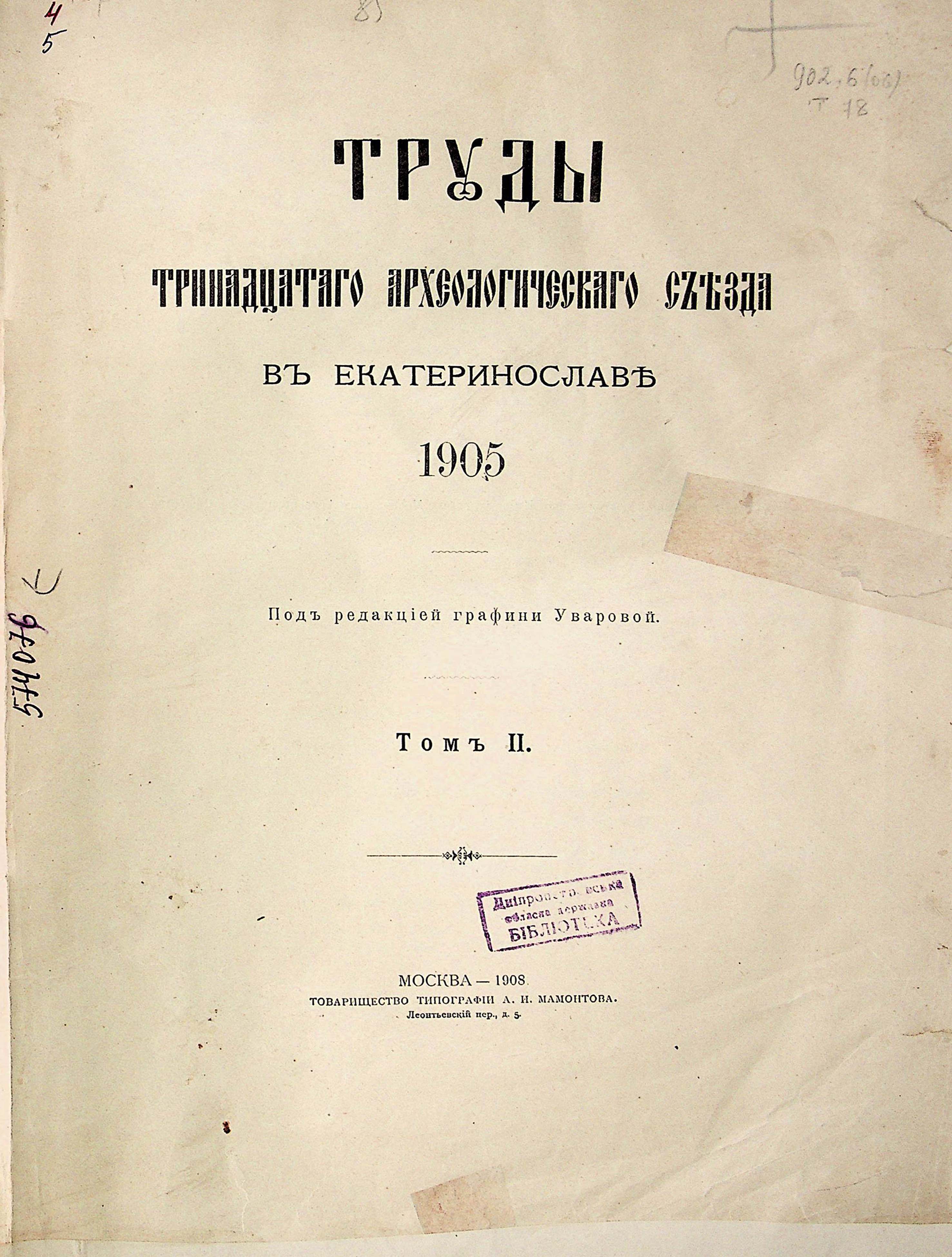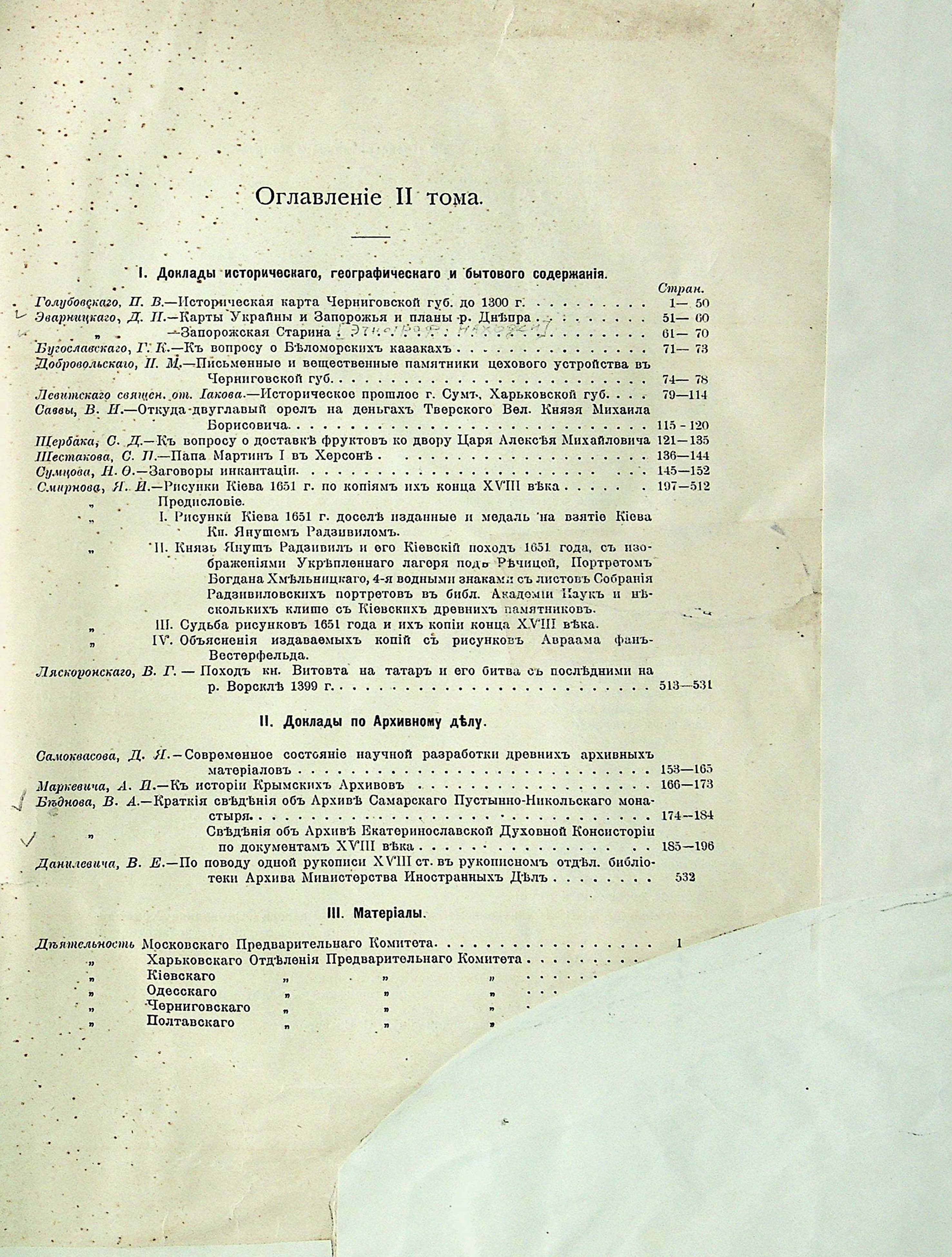 II Отделеніе: Древности историко-географическія и этнографическія