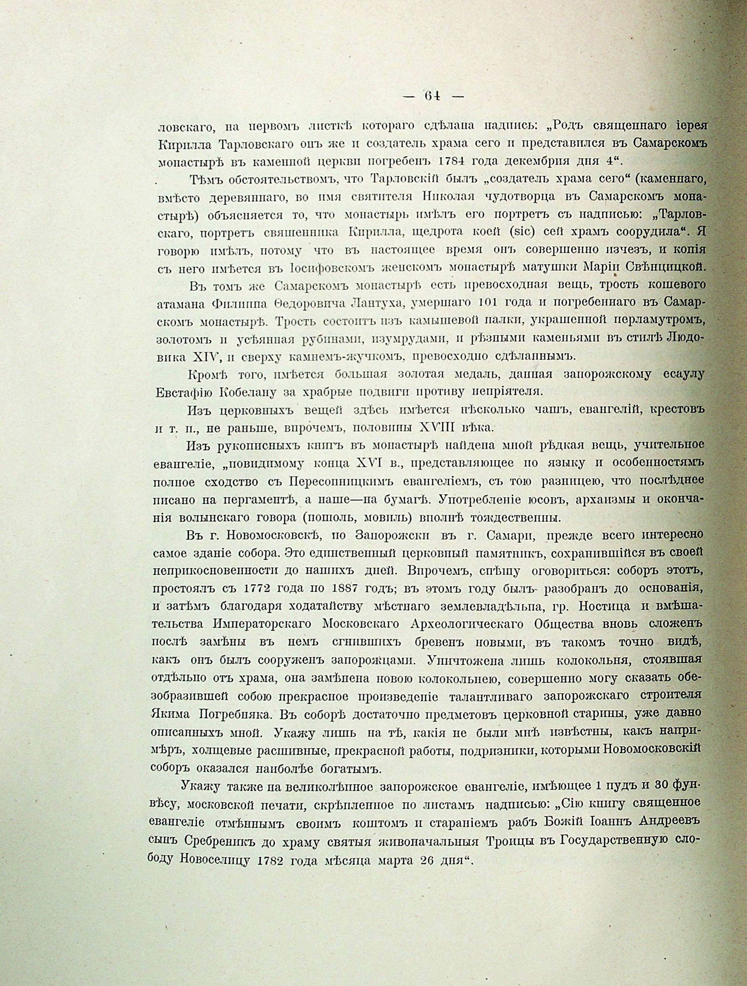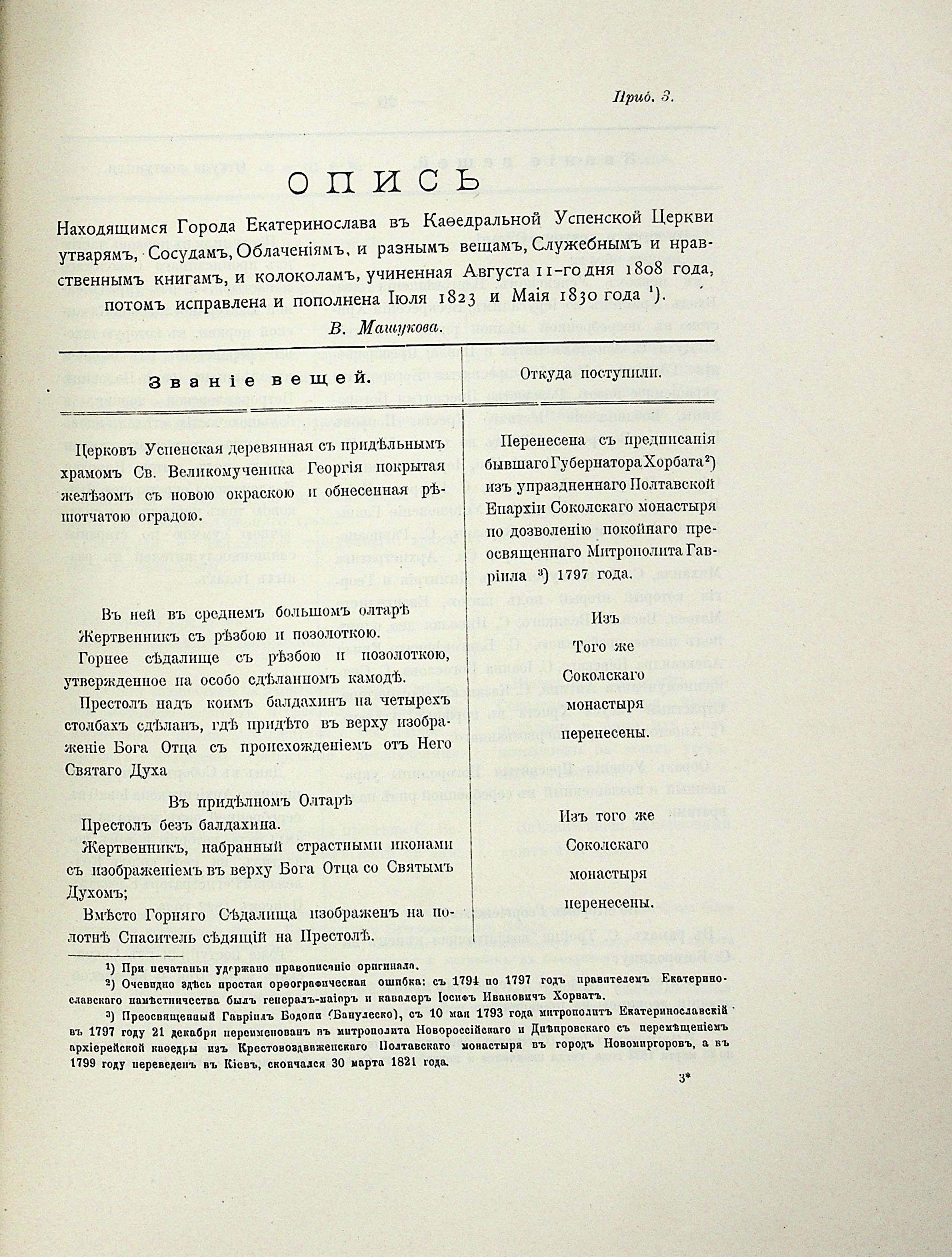 Приб. №5. Памятники XVIII столетія въ Екатеринославскомъ кафердальномъ Преображенскомъ соборе. В . Машукова