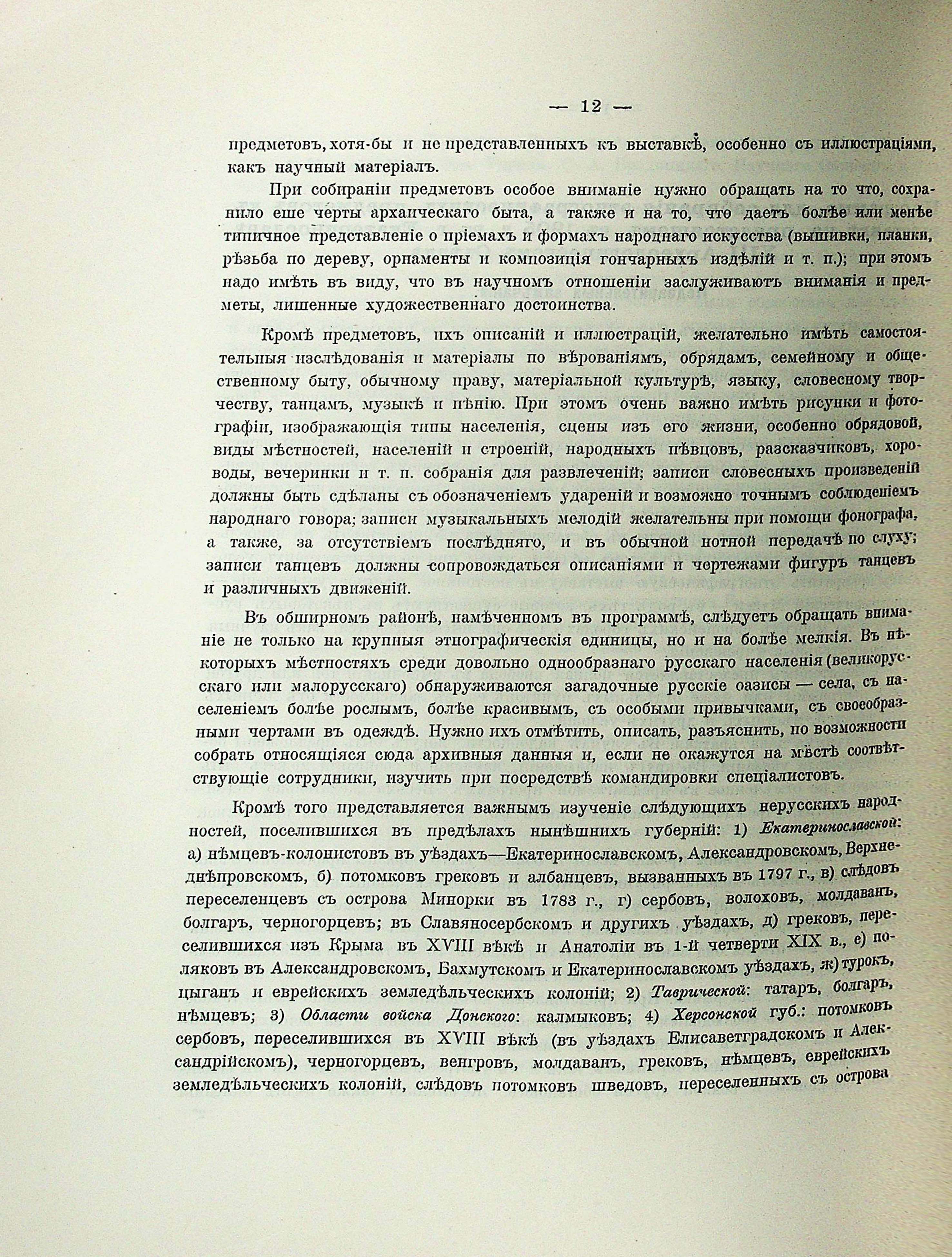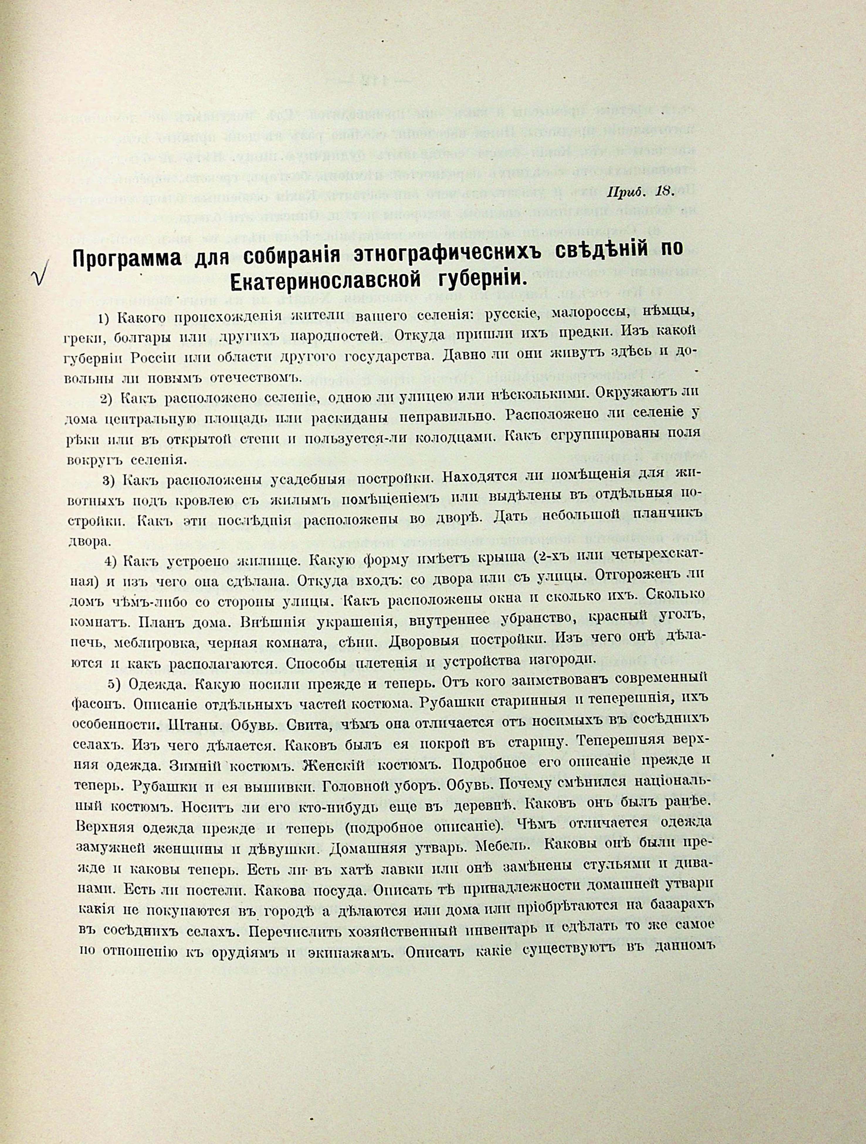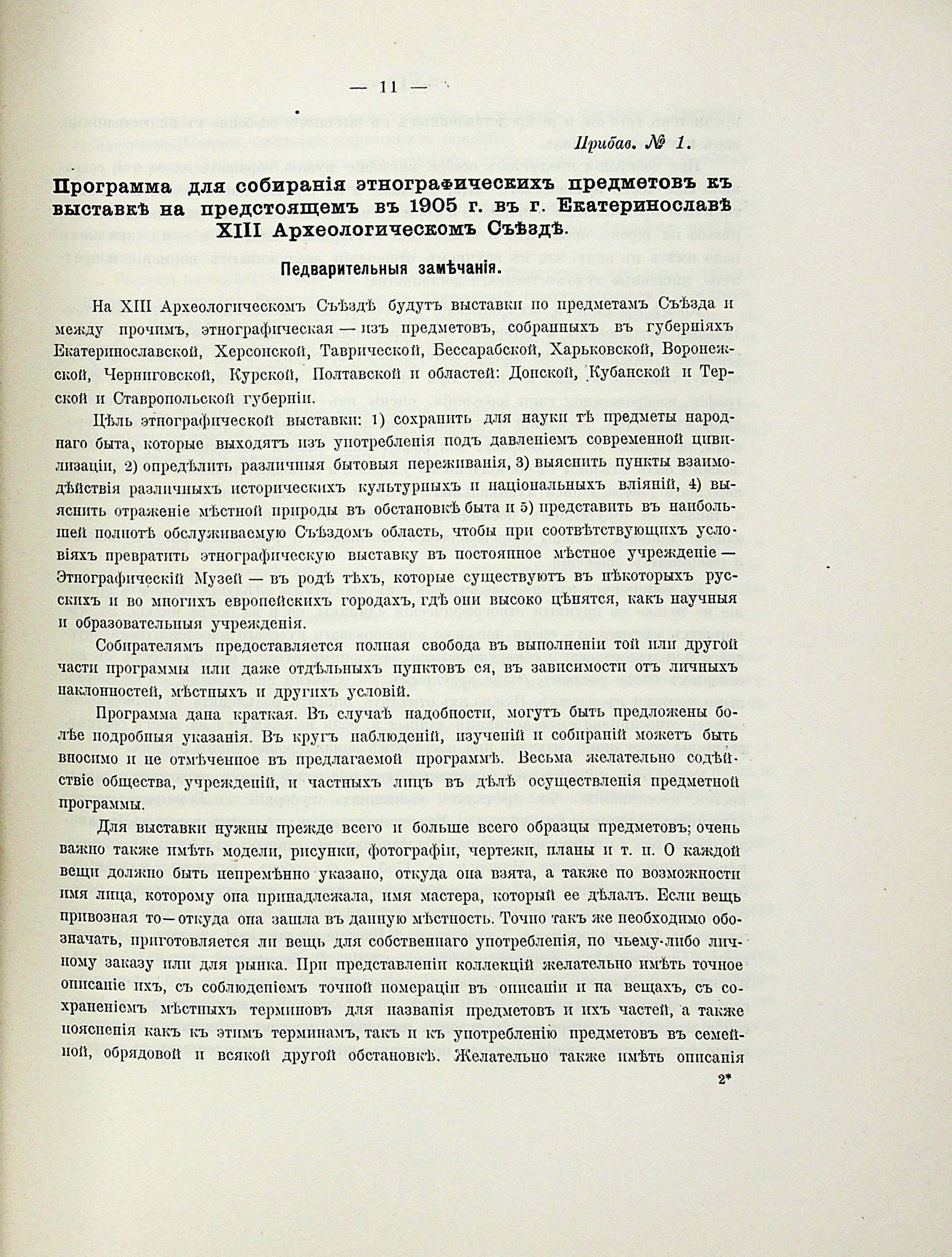Прибав. № 1. Программа для собиранія этнографическихъ предметові къ выставке на предстоящемъ въ 1905 г. въ г. Екатеринославе XIII Археологическомъ Съезде. Педварительныя замечанія