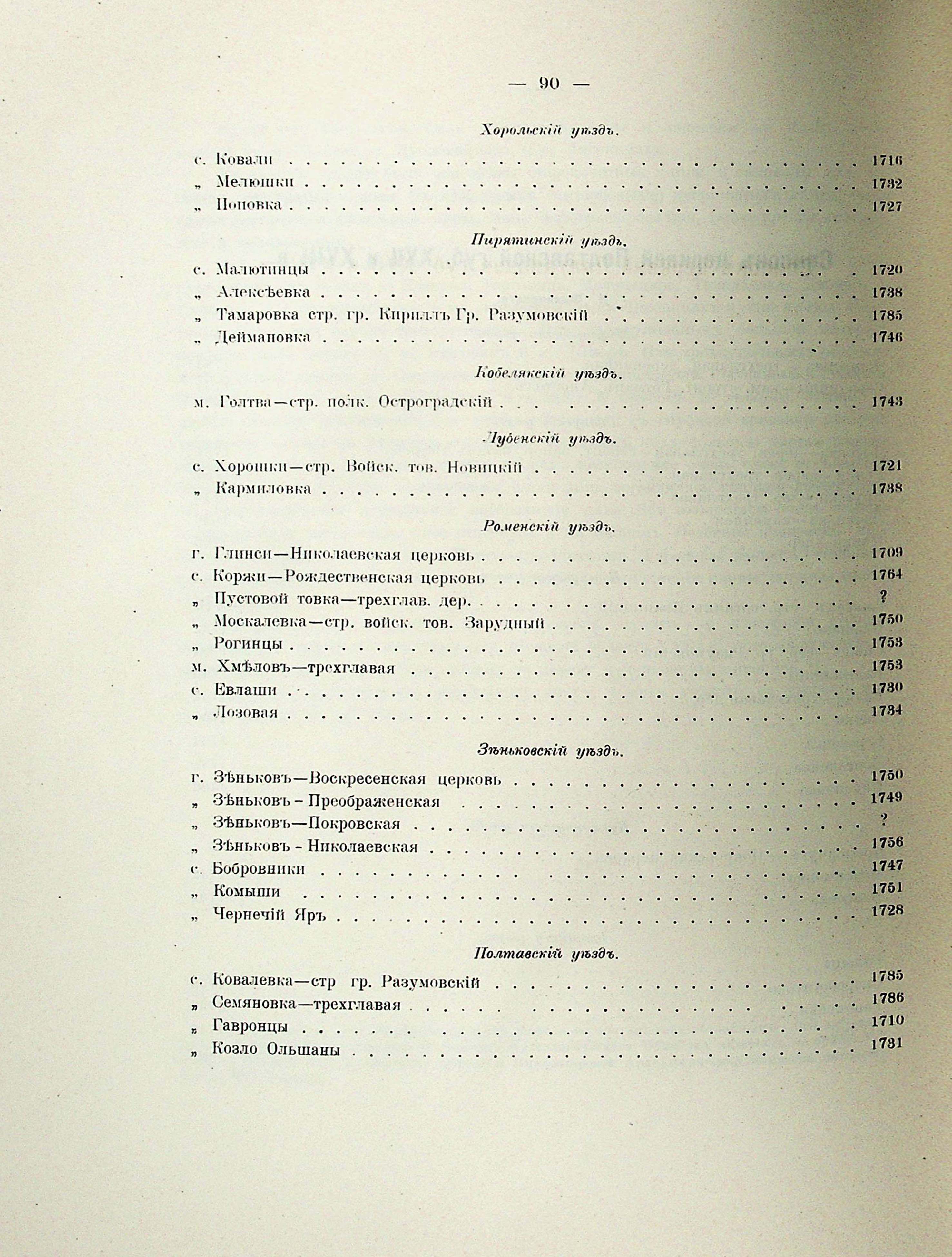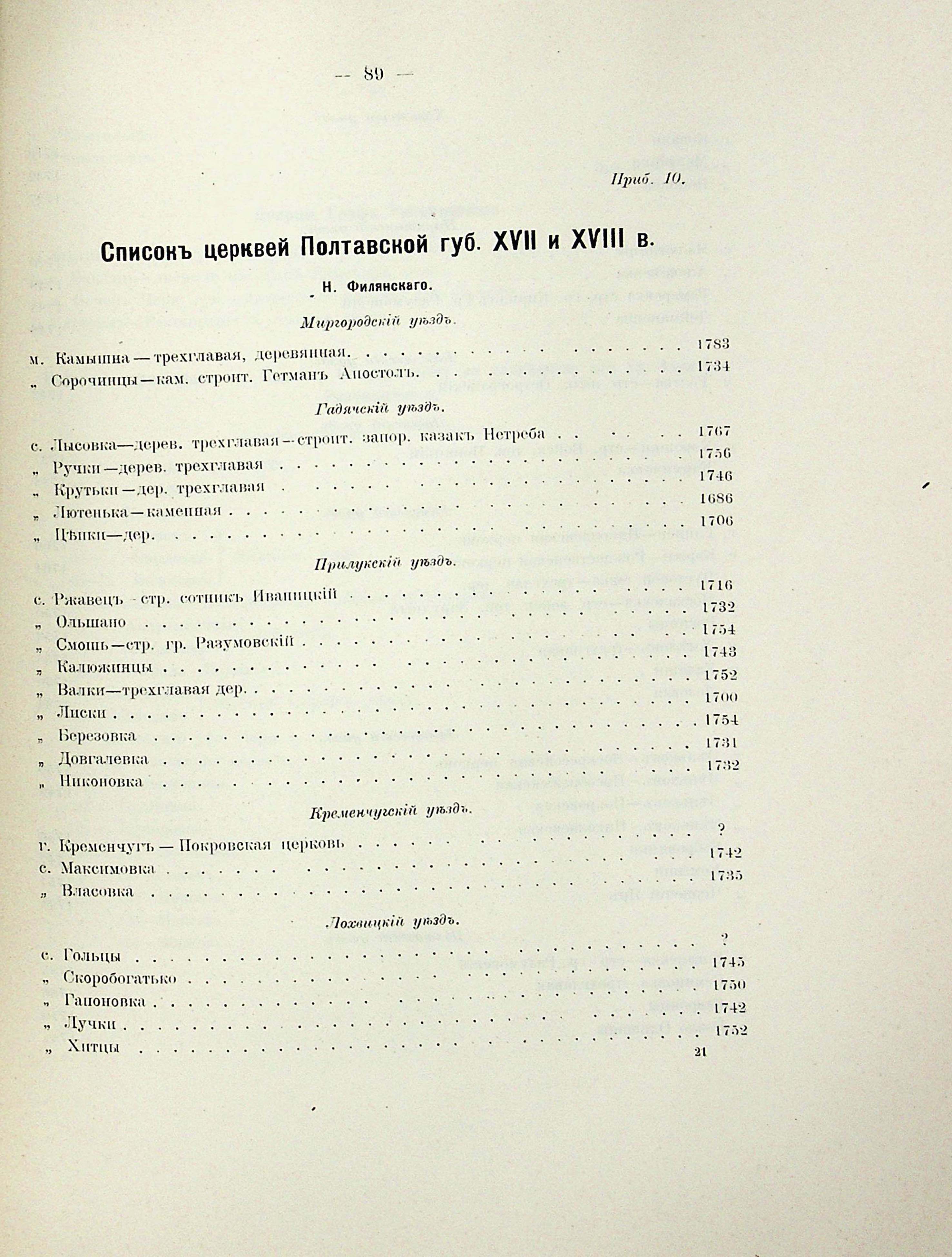 Приб. 10. Списокъ церквей Полтавской губ. XVII и XVIII в. Н. Филянскаго