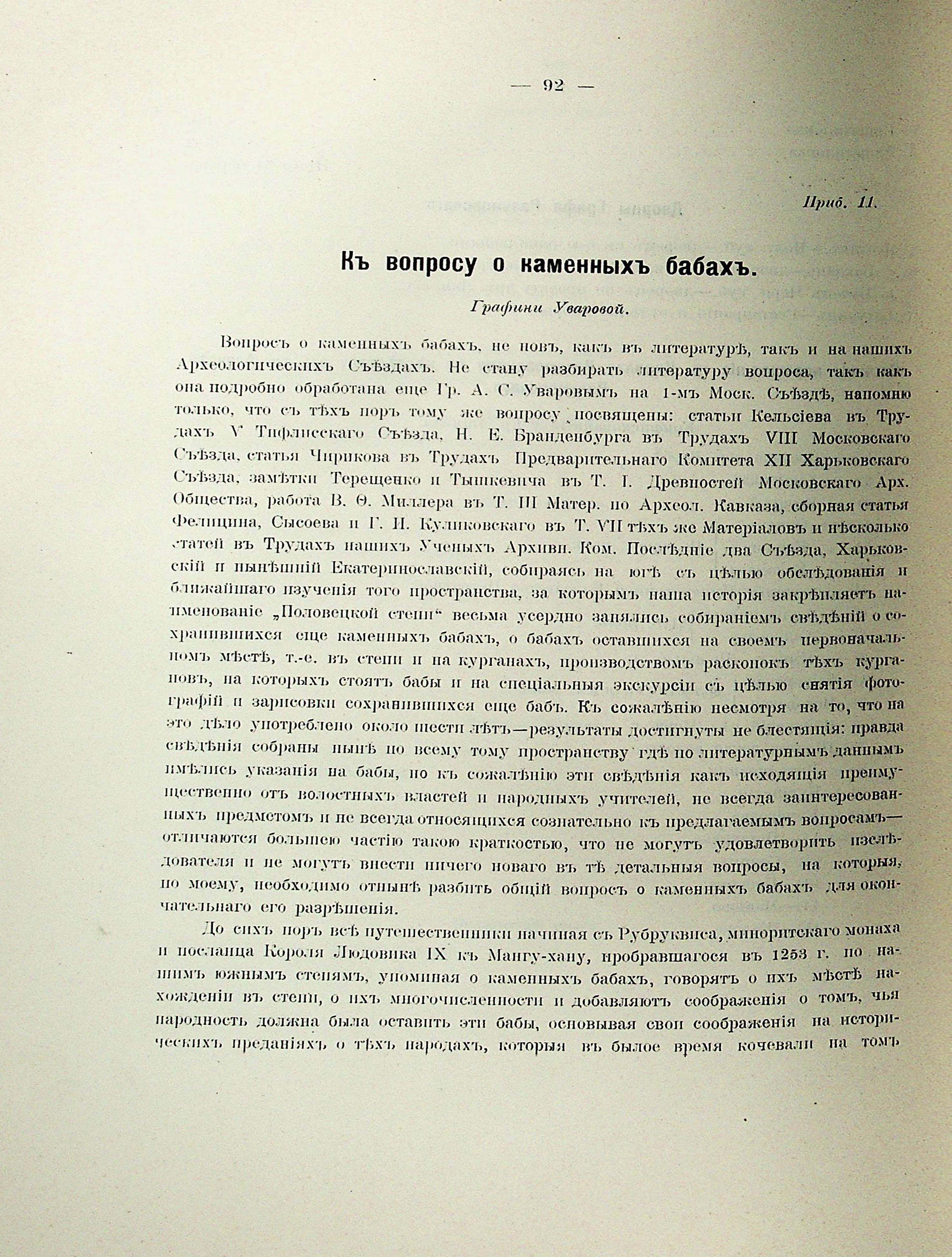 Приб.11. Къ вопросу о каменныхъ бабахъ. Графини Уваровой