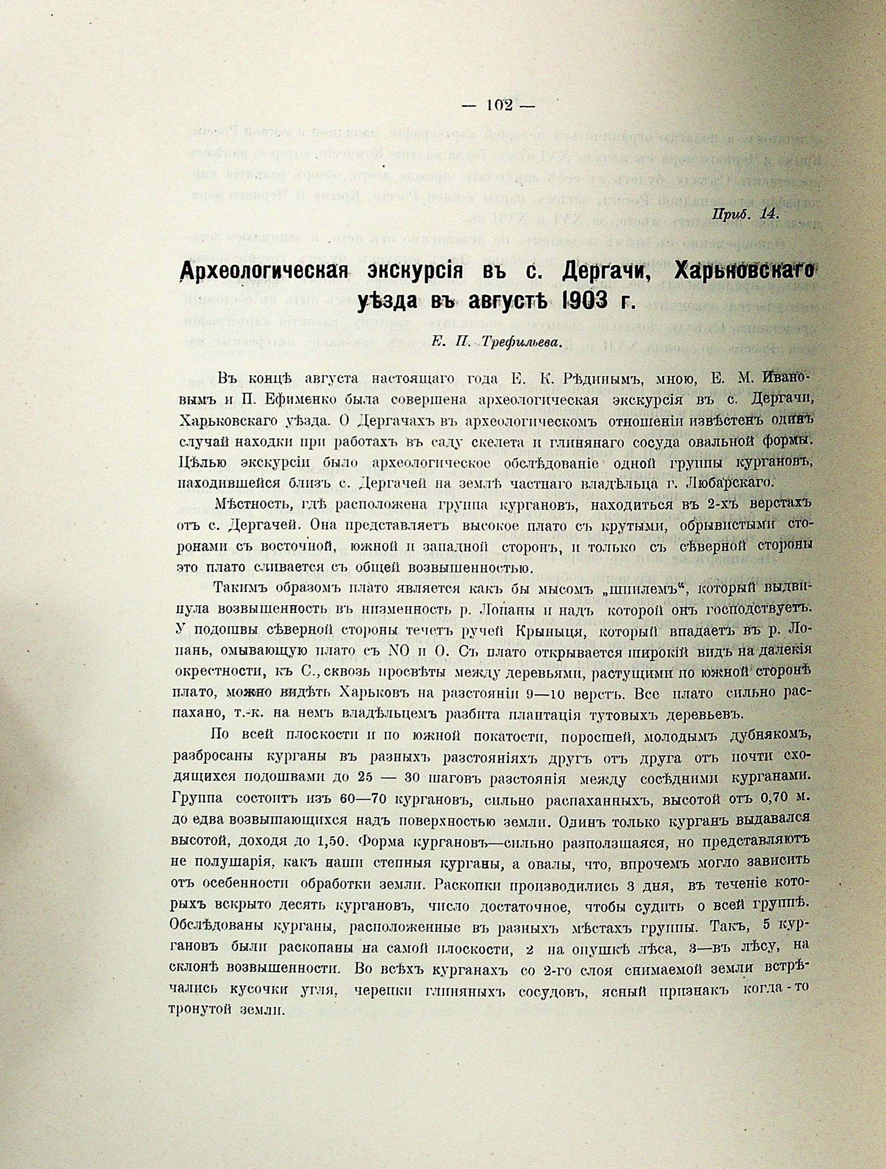 Приб.14. Археологическая екскурсія въ с. Дергачи, Хаірьковскаго уезда въ августЬ 1903 г. Е. П. Трефильева
