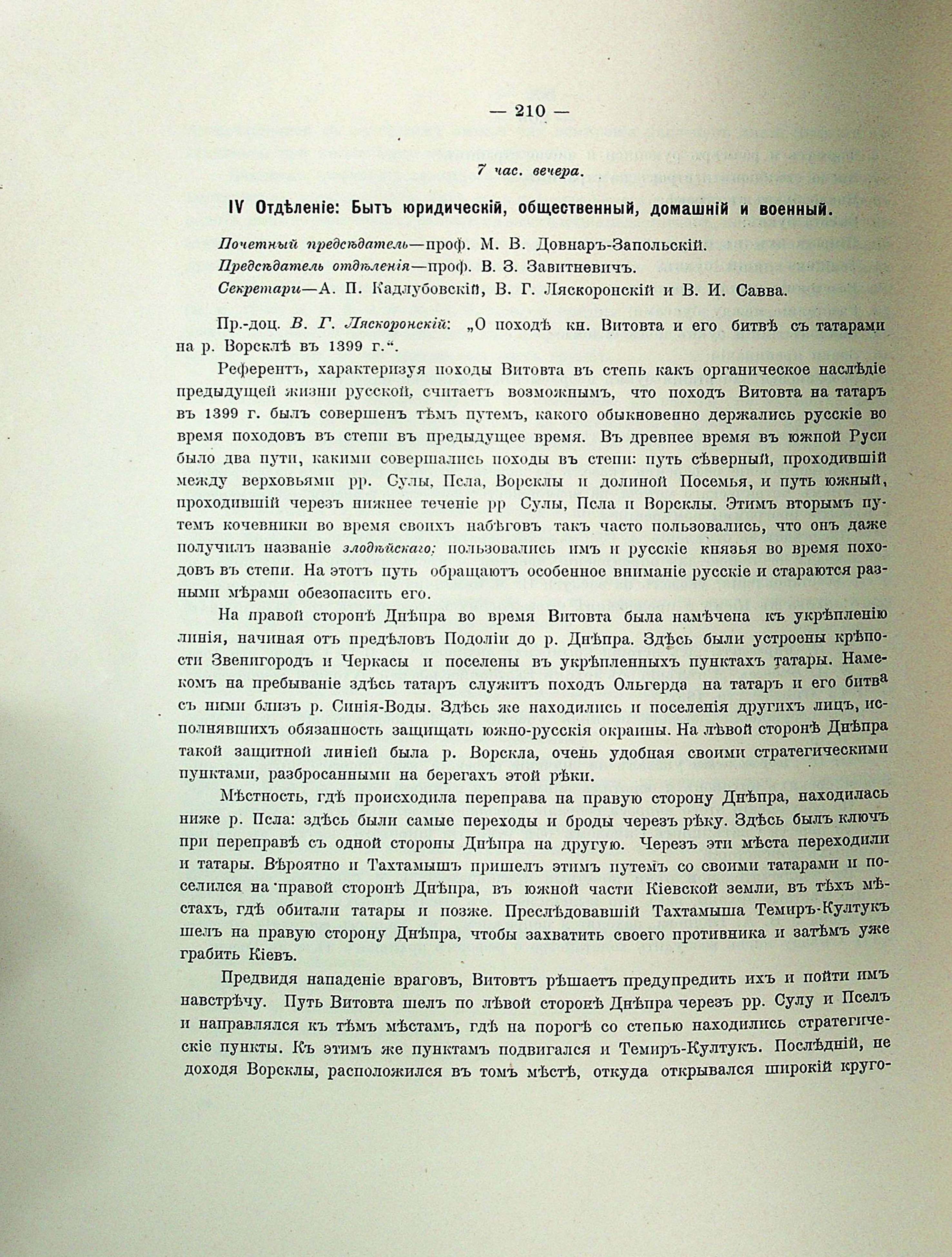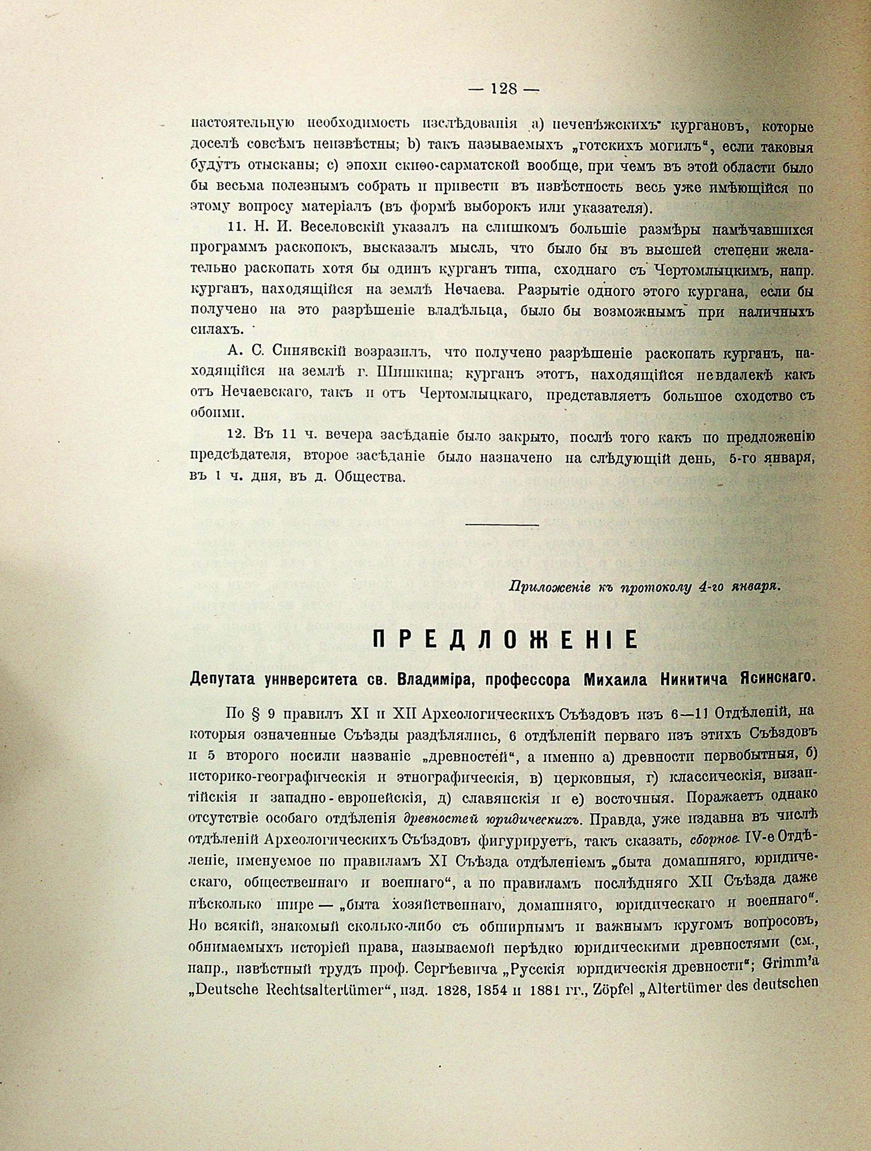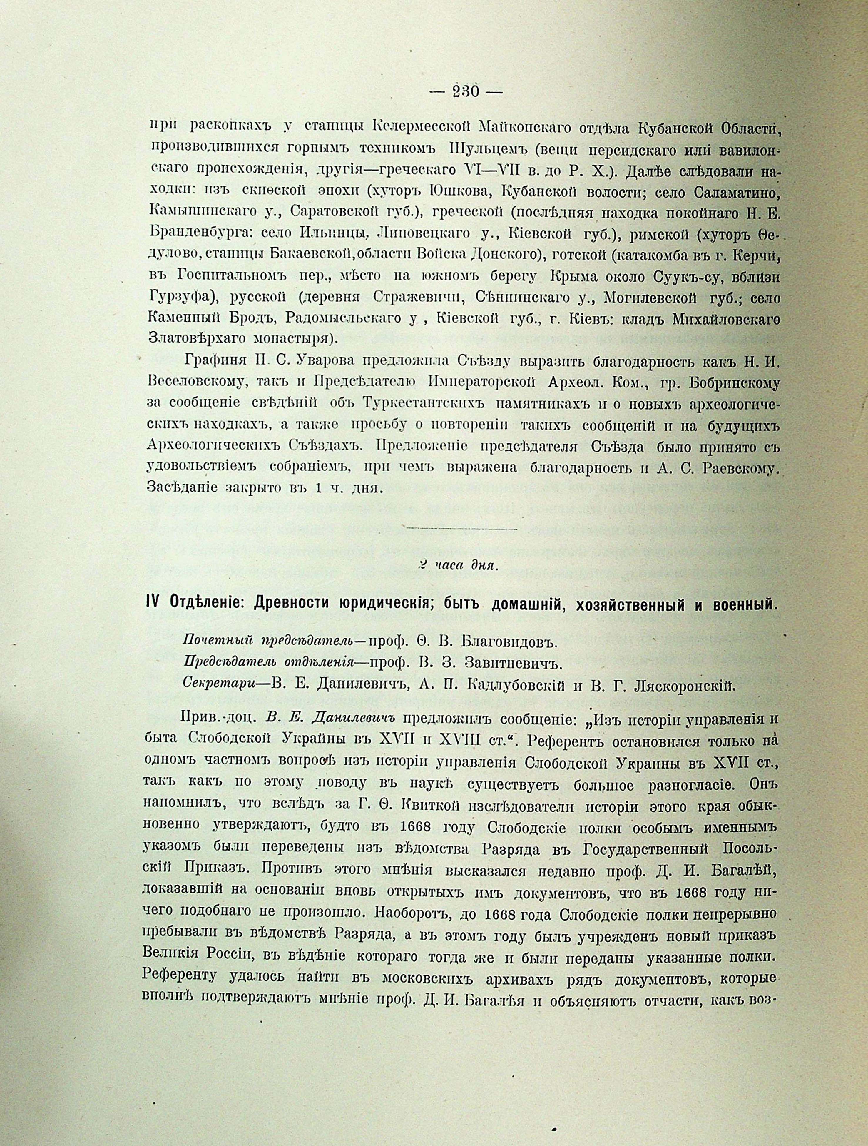 ПАРАЛЛЕЛЬНОЕ ЗАСЕДАНІЕ. VI Отделеніе: Древности юридическія; бытъ общественный, домашній и военный