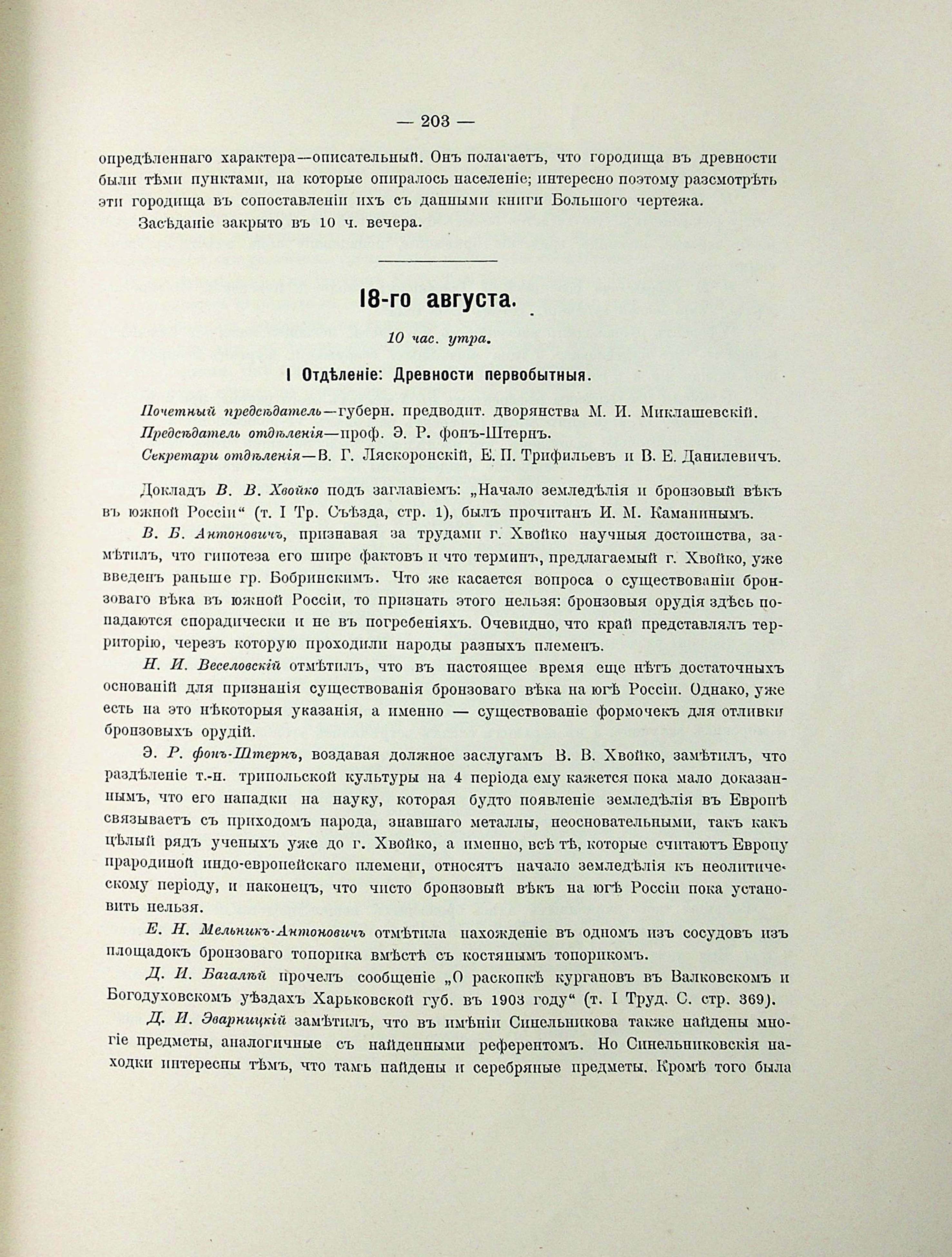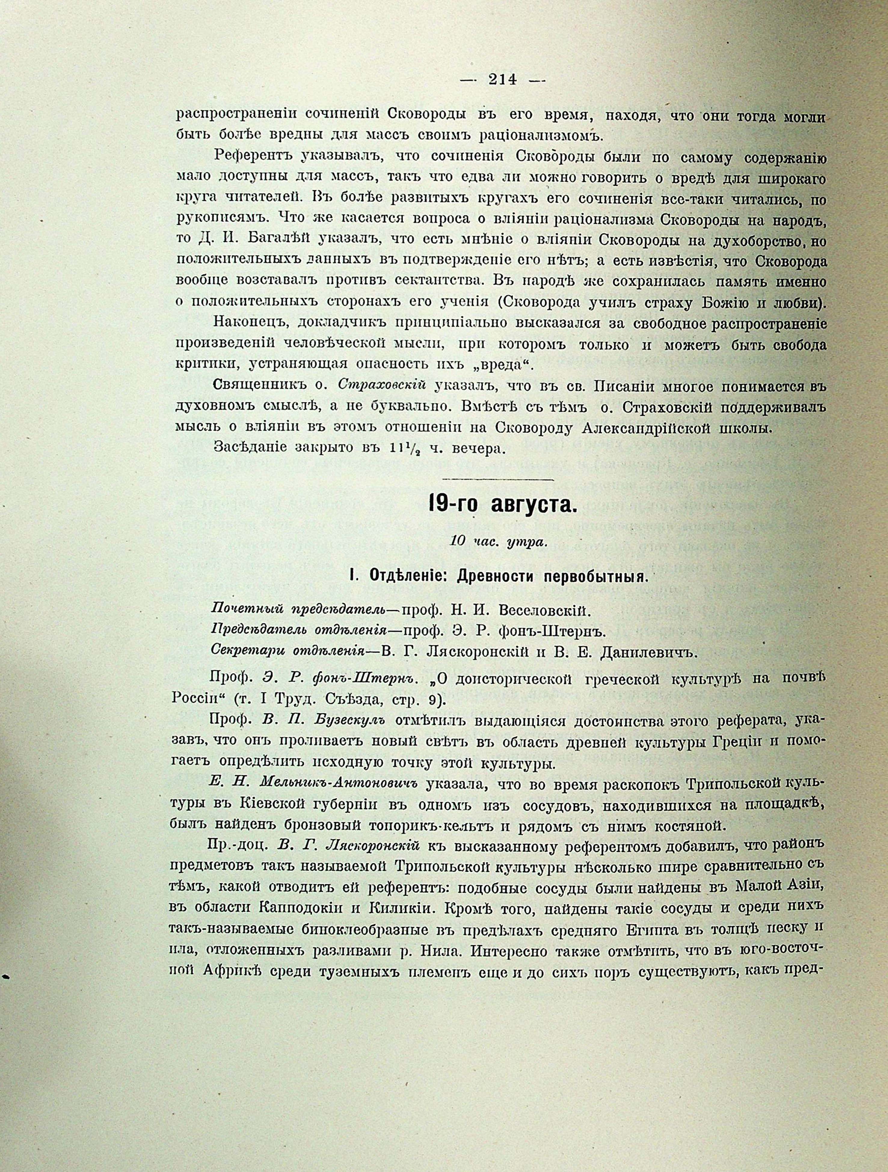 19-го августа. І. Отделеніе: Древности первобытный