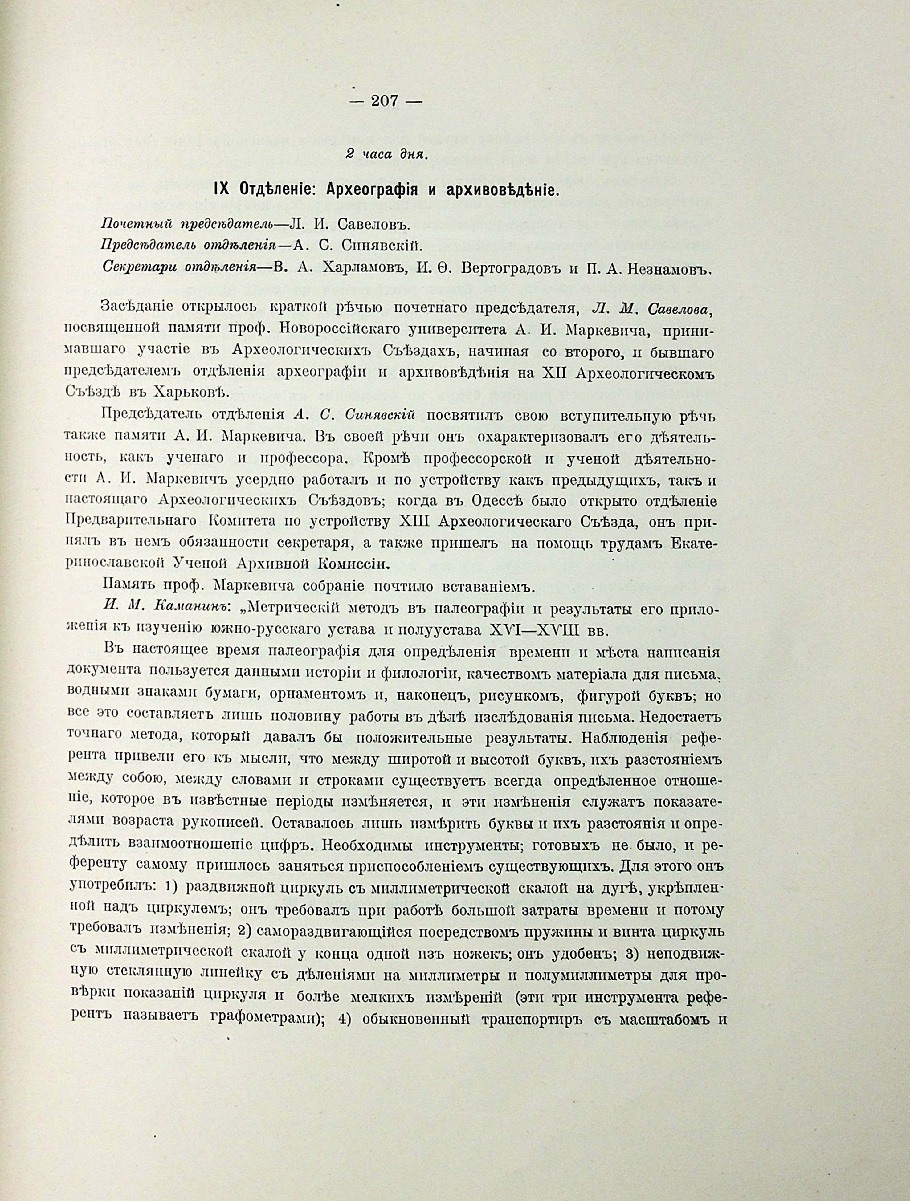 ПАРАЛЛЕЛЬНОЕ ЗАСЕДАНІЕ. IX ОтделенІе: Археографія и архивоведеніе