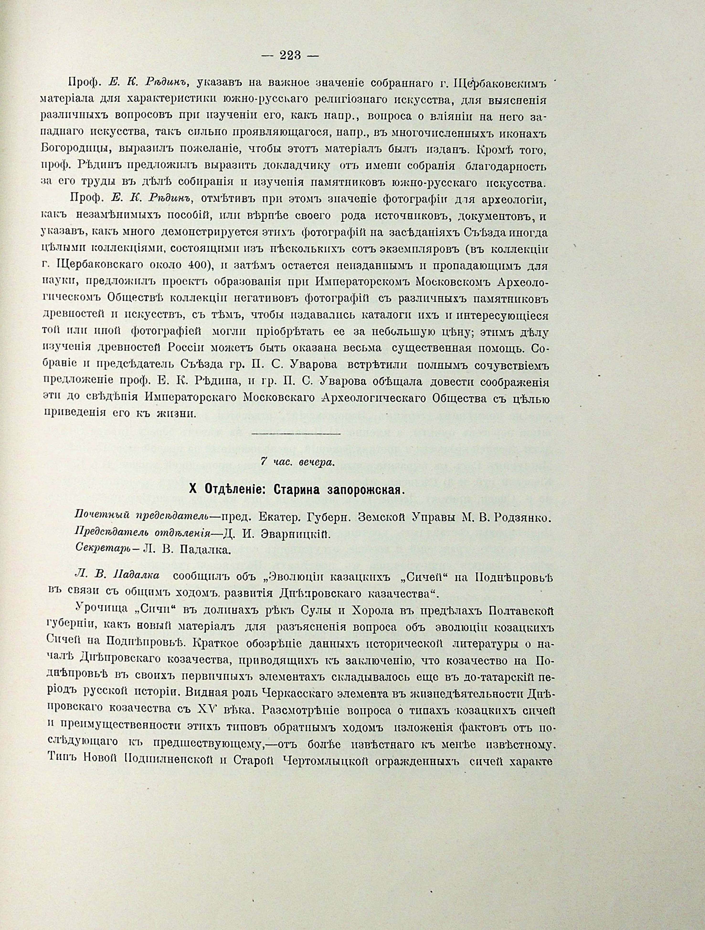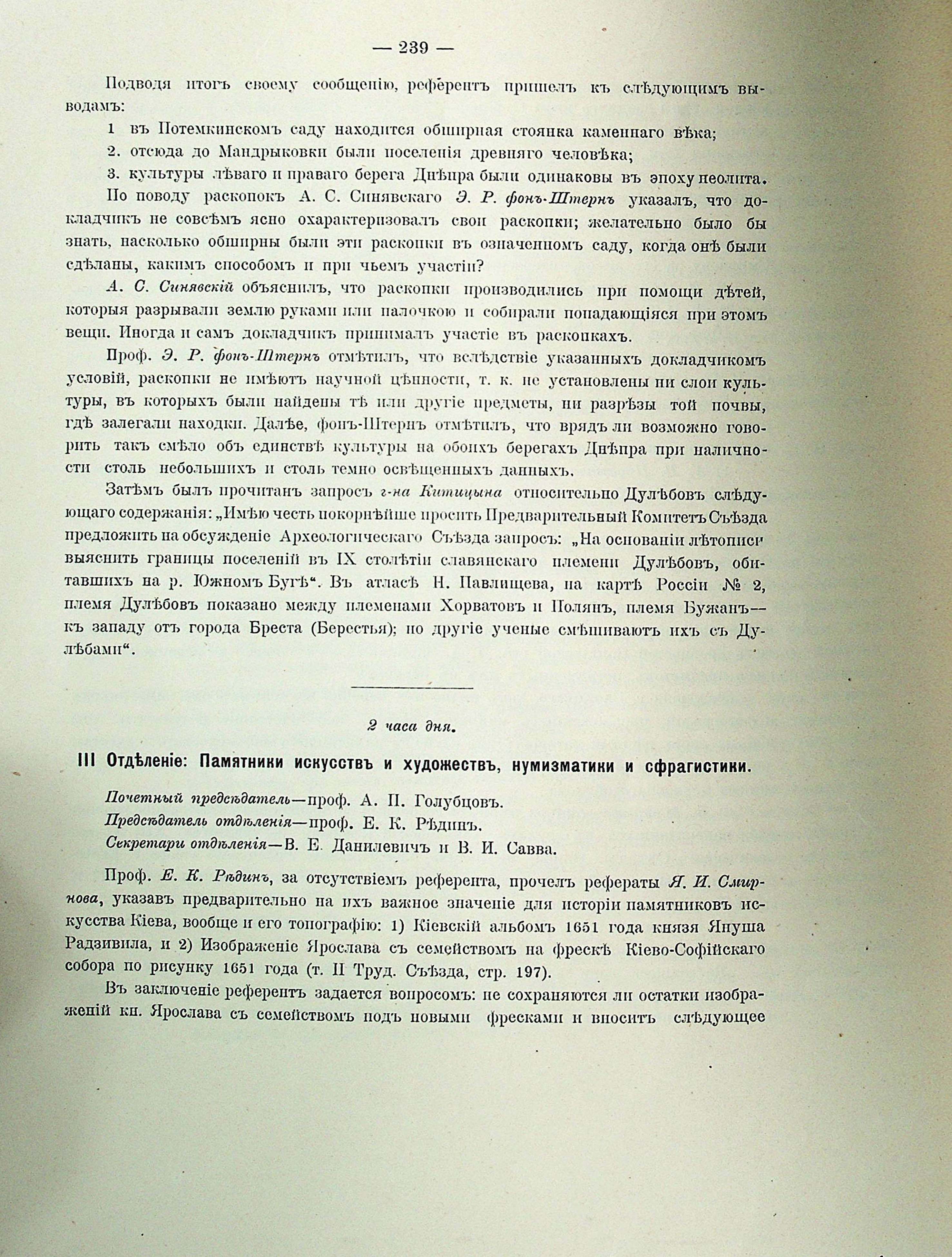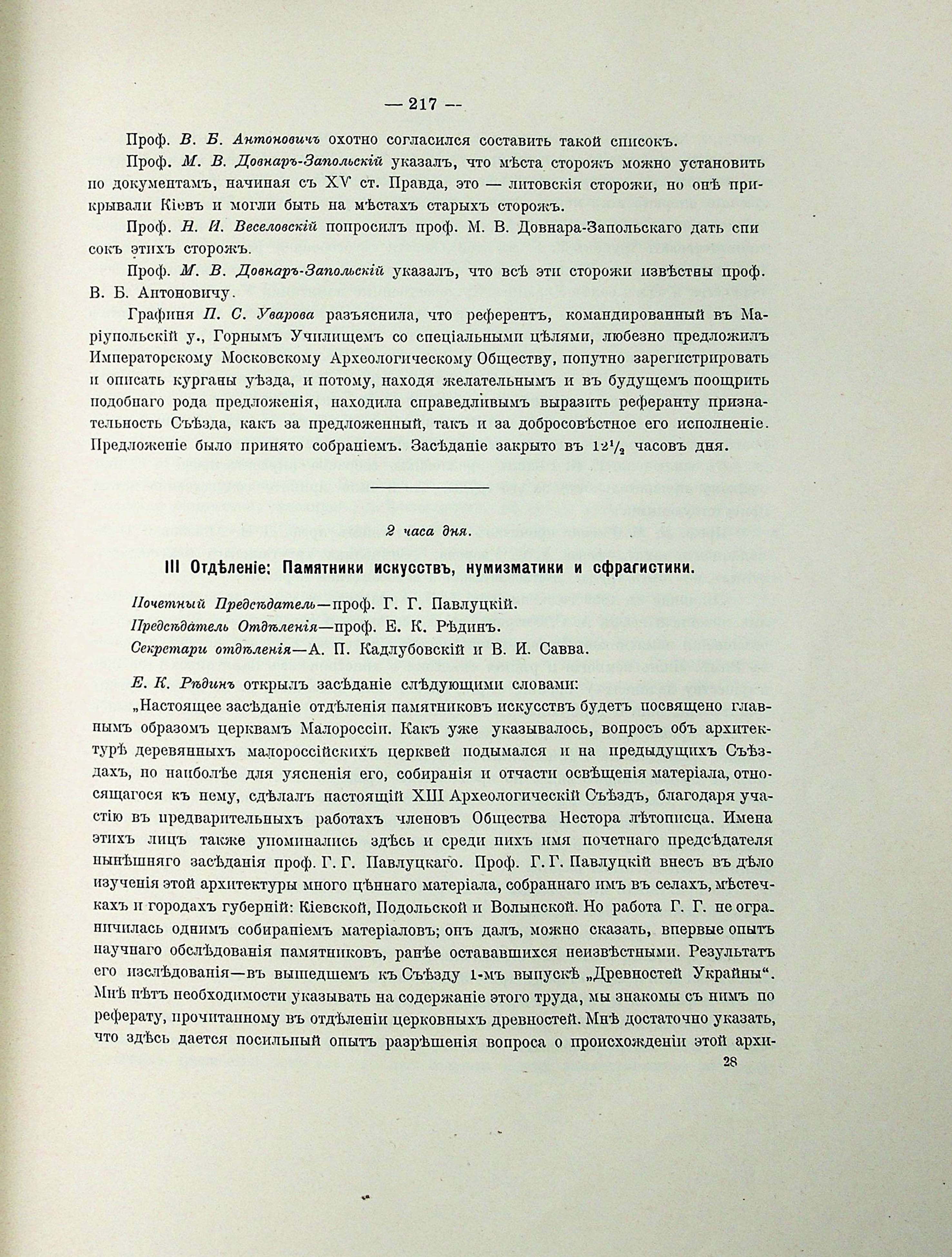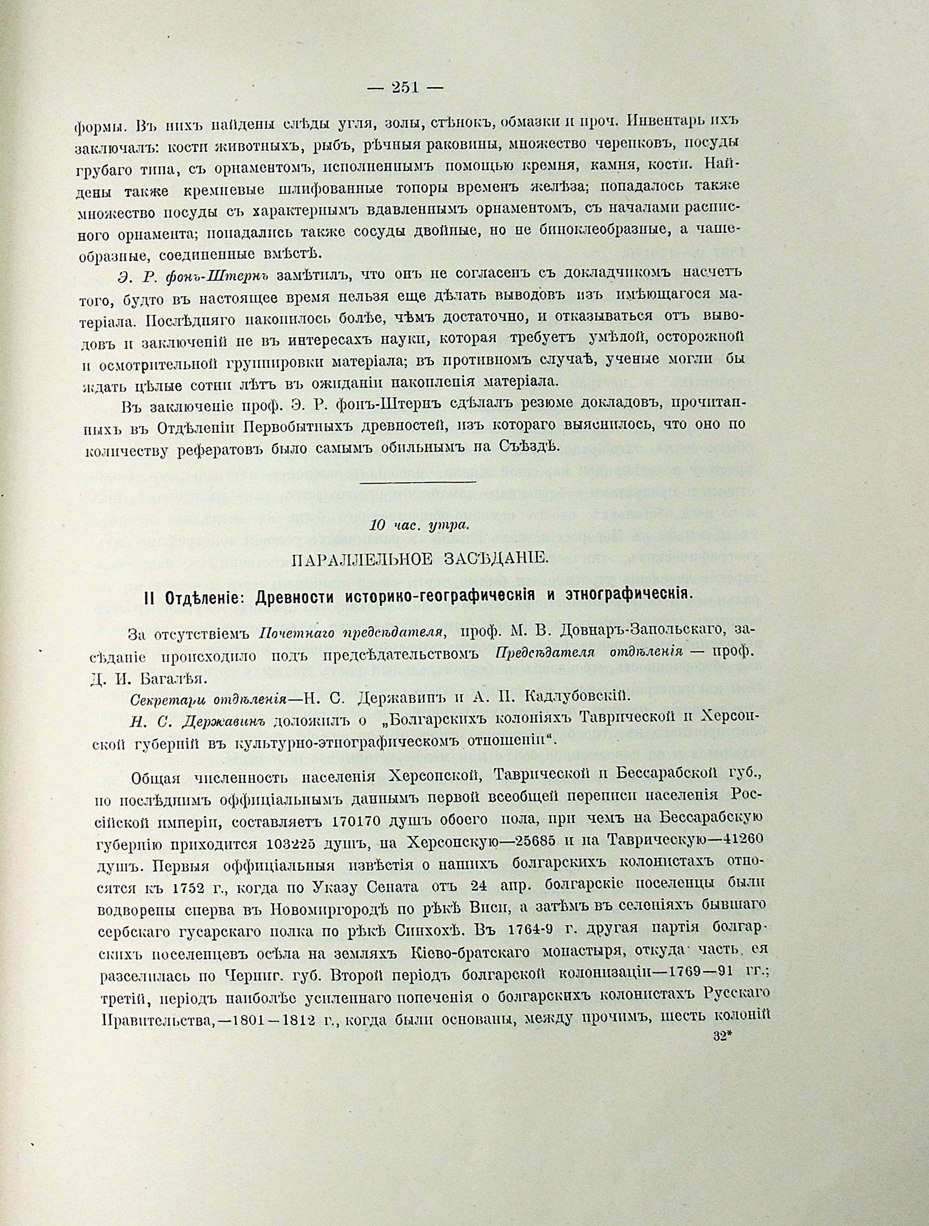 ПАРАЛЛЕЛЬНОЕ ЗАСЕДАНІЕ. II Отделеніе: Древности историко-географическія и этнографическія
