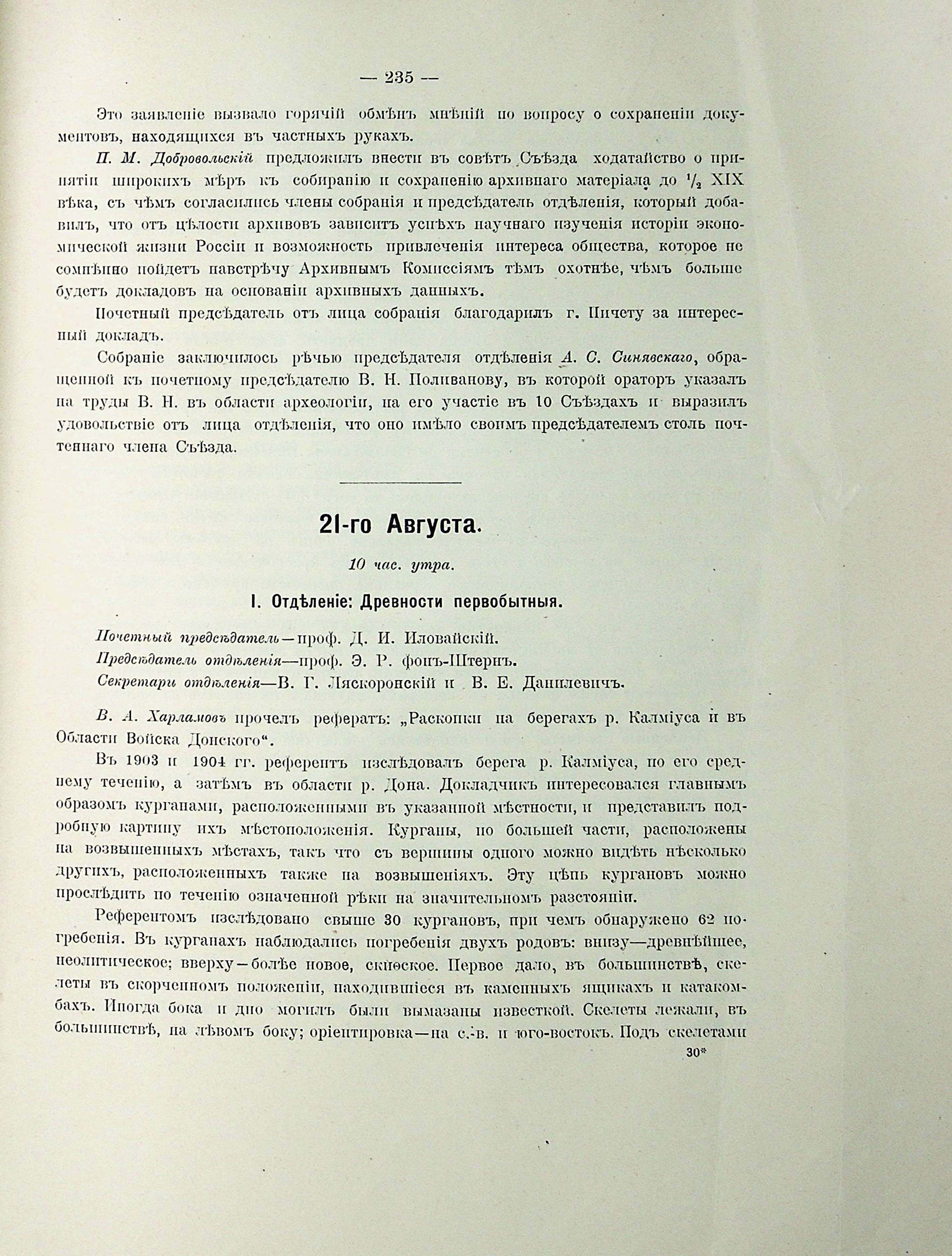 22 августа. I Отделеніе: Первобытныя древности