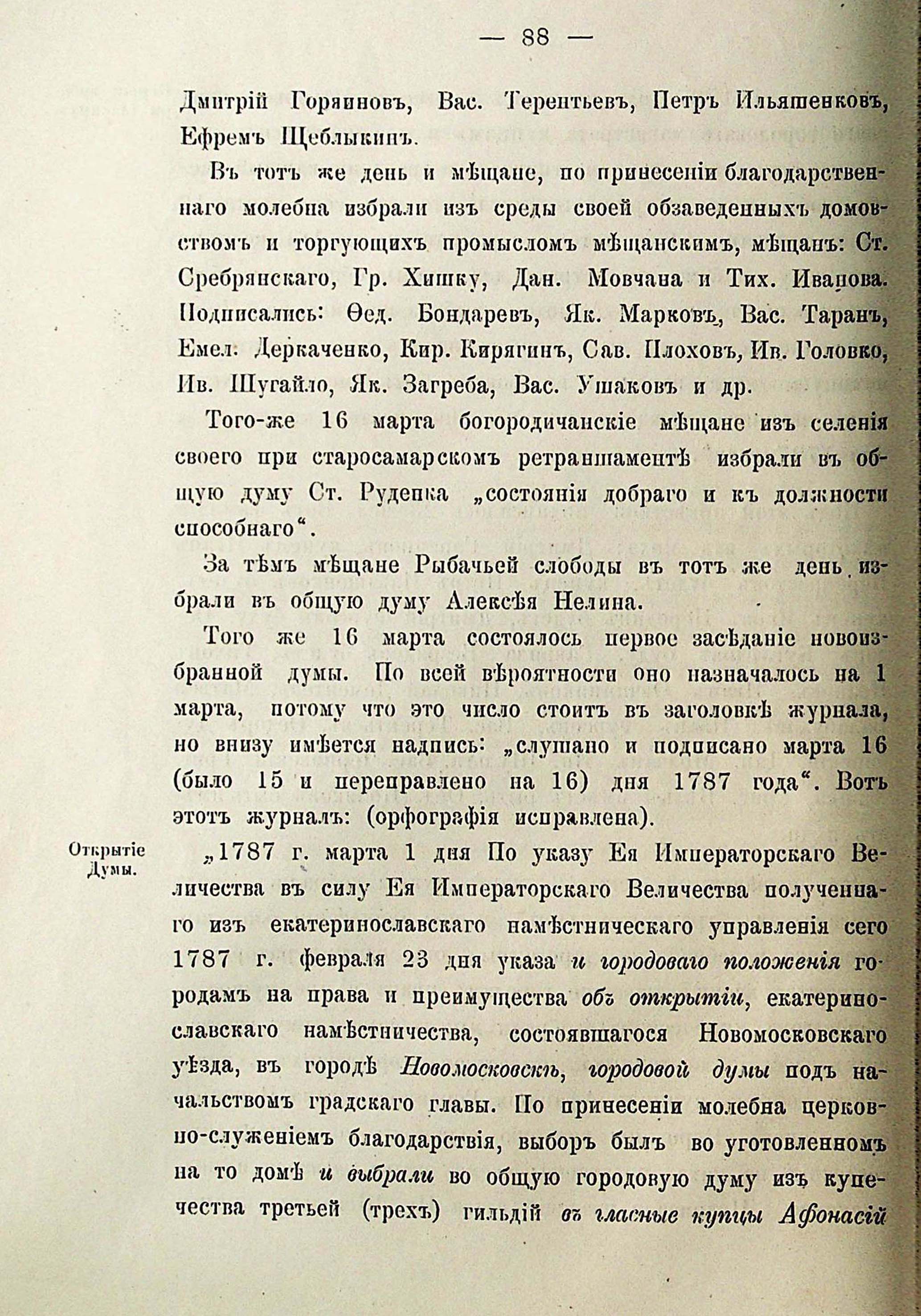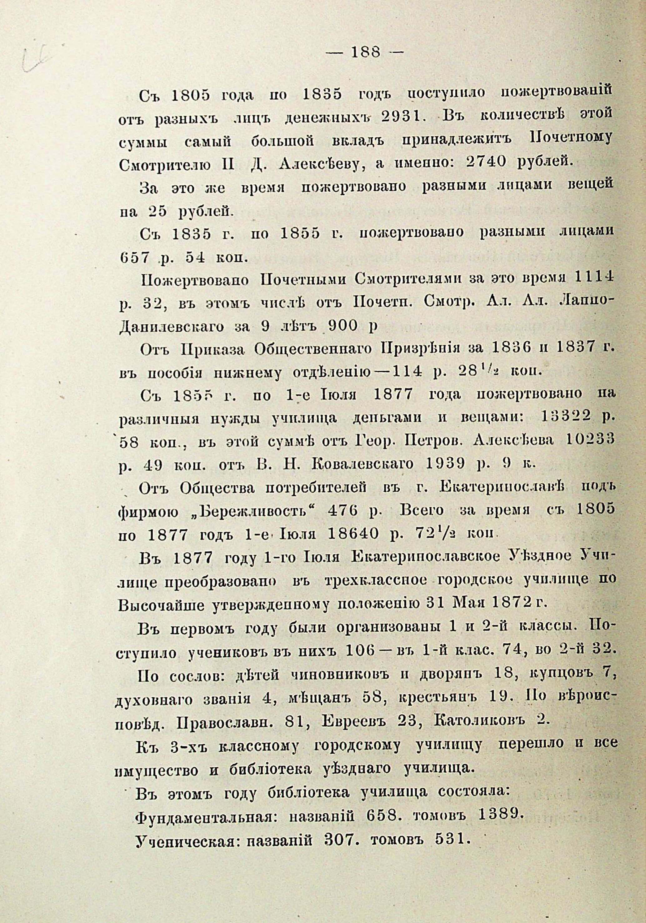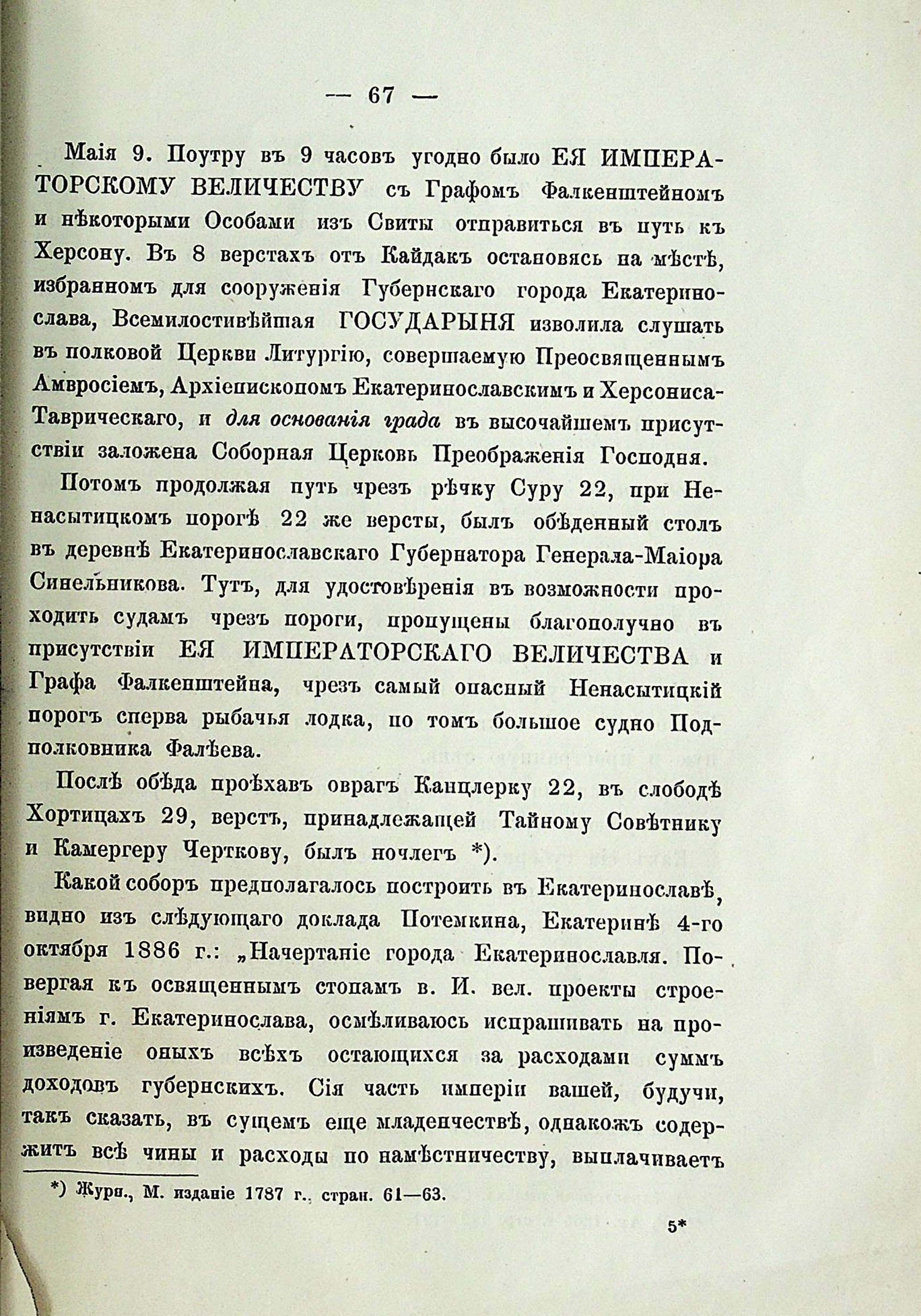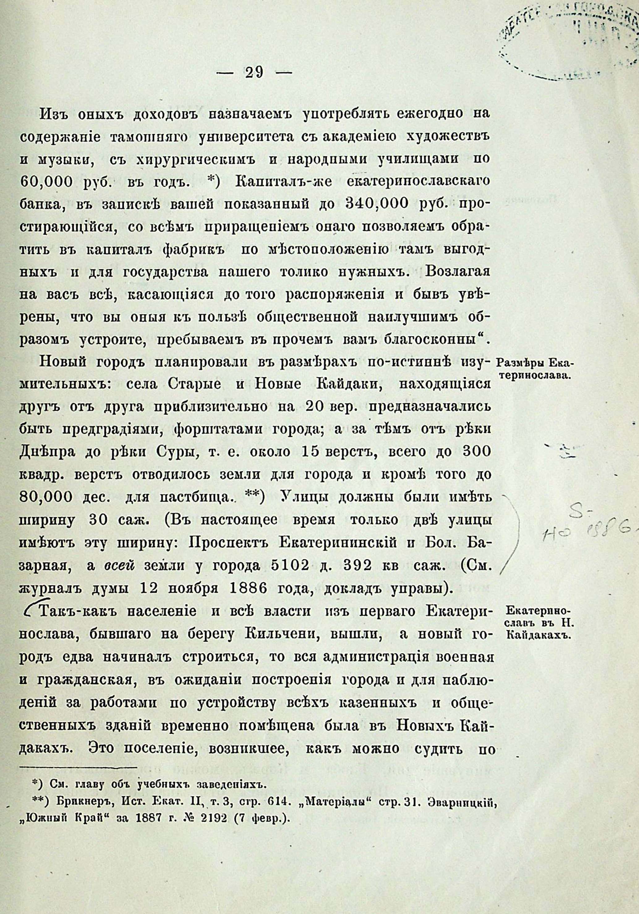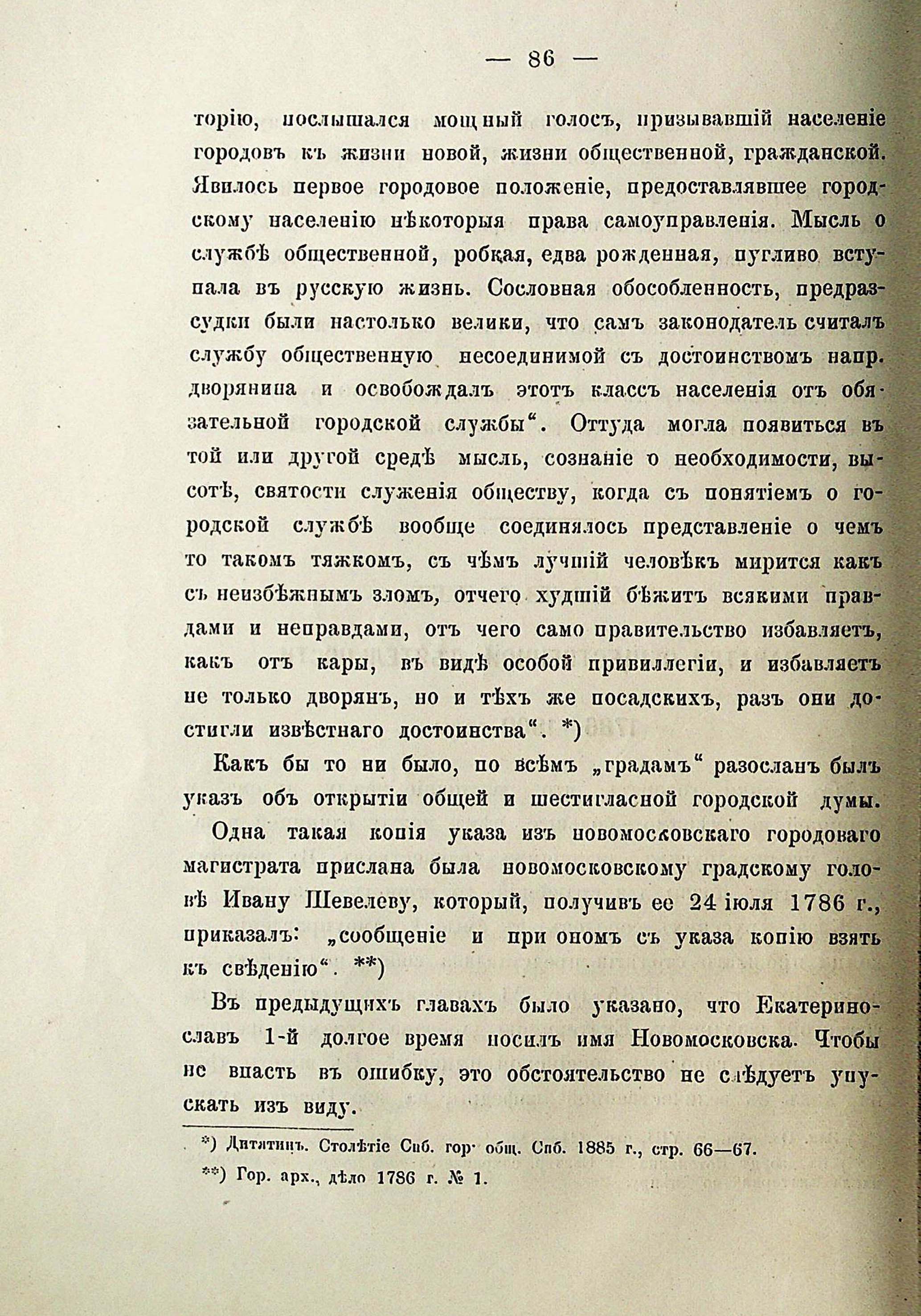 ПЕРВОЕ СТОЛЕТІЕ г. ЕКАТЕРИНОСЛАВА 1787-9 мая-1887г. Докладъ Екатеринославской Городской Управы къ торжественному заседанію 9 мая 1887 года