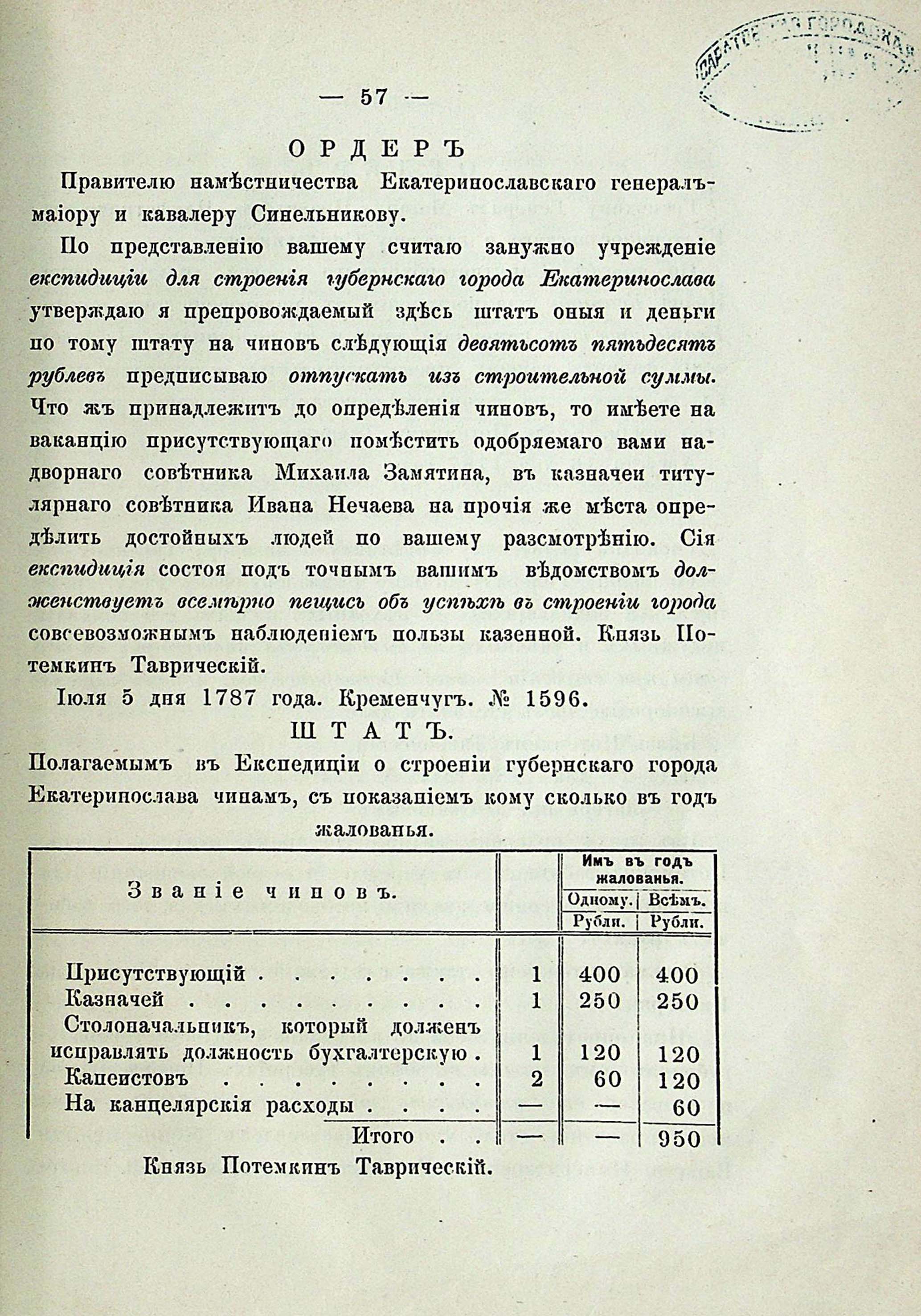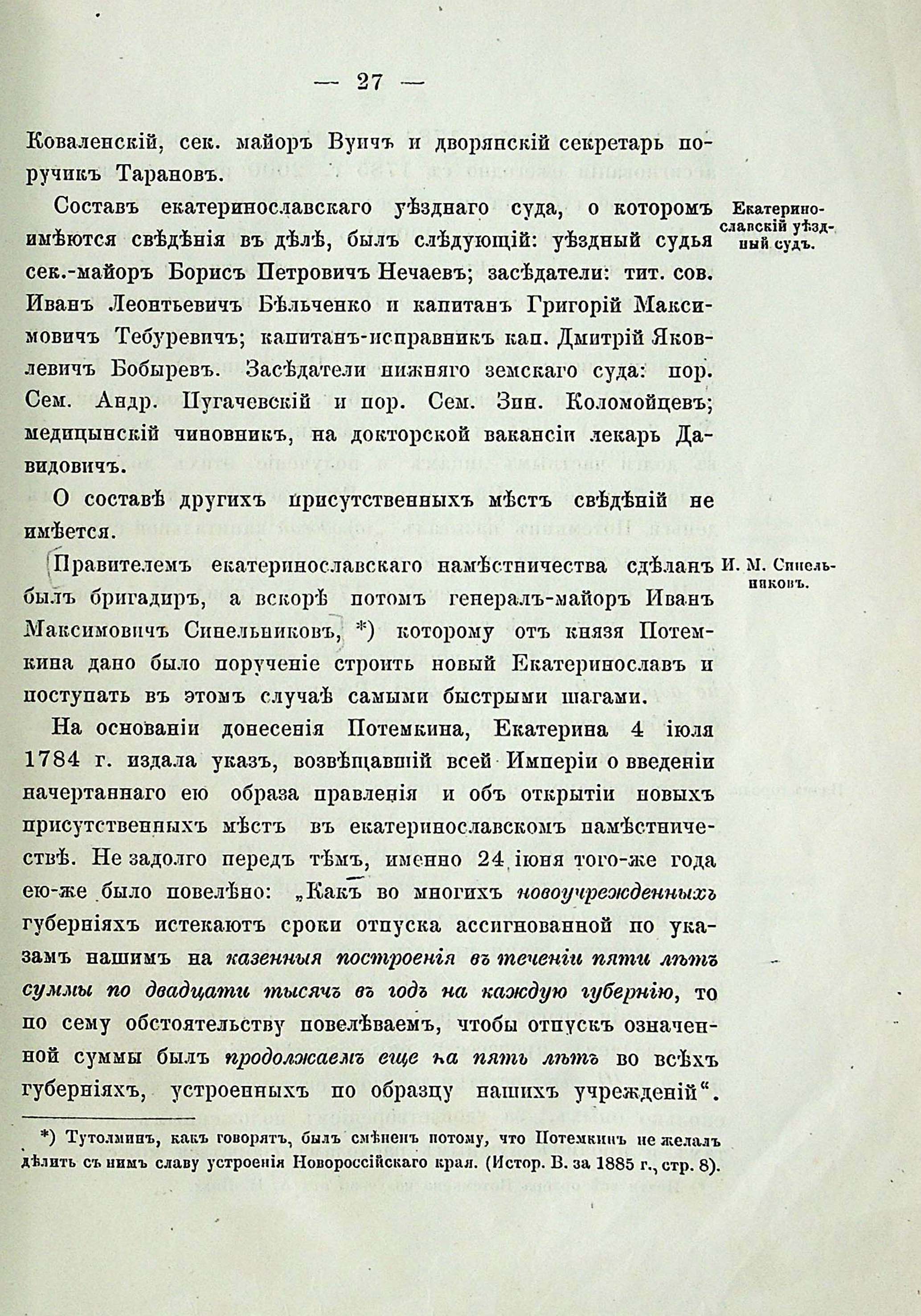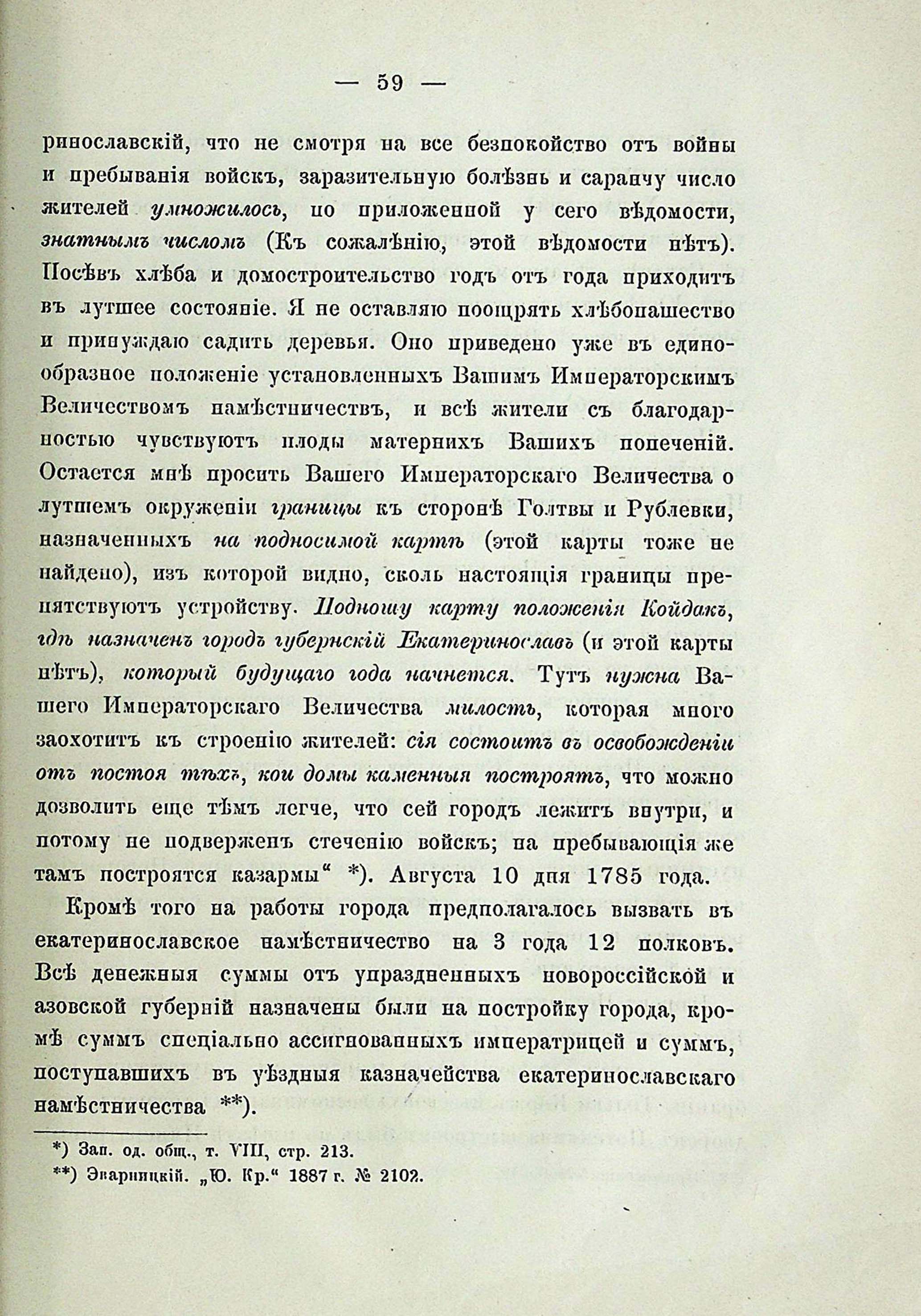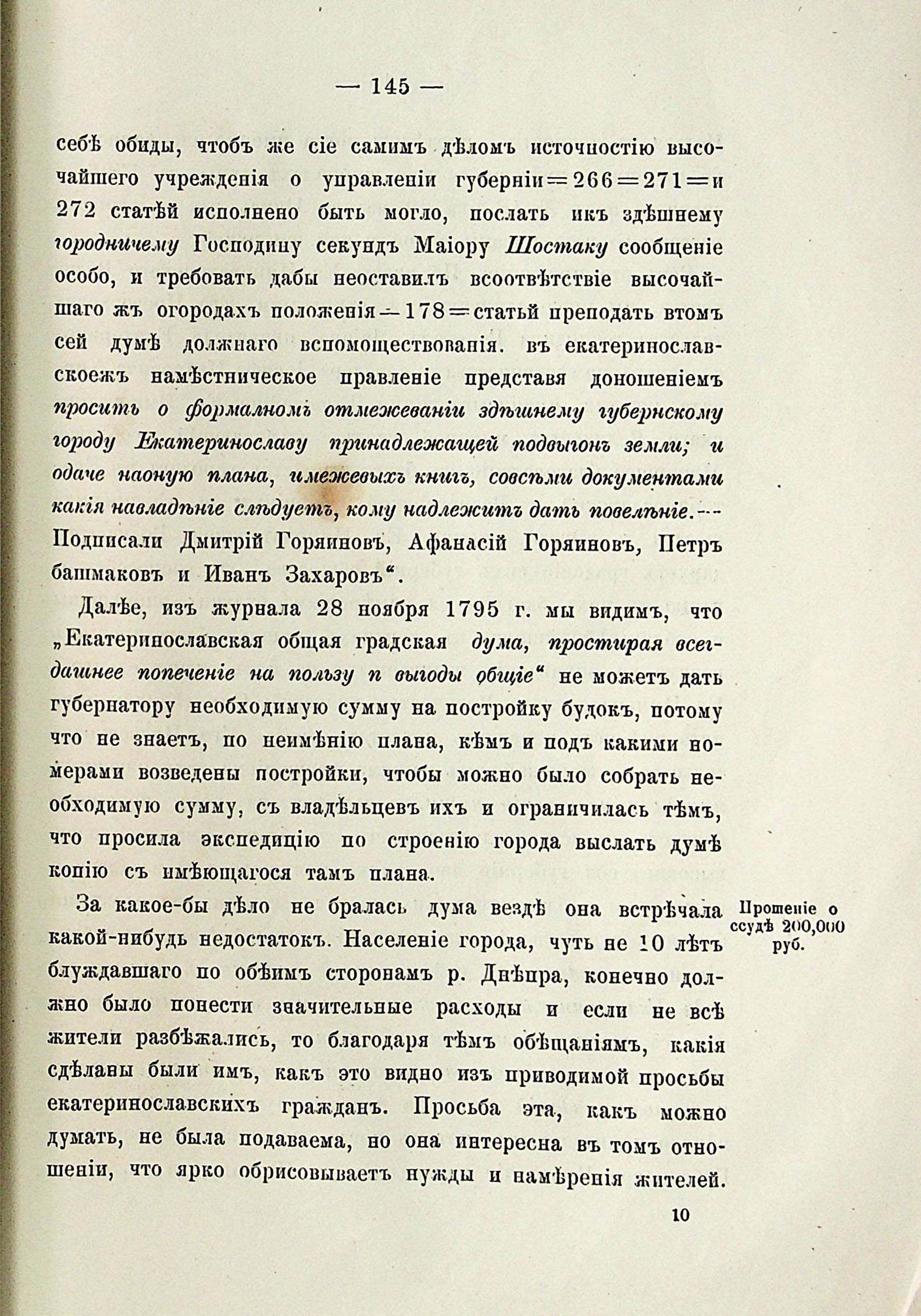 ПЕРВОЕ СТОЛЕТІЕ г. ЕКАТЕРИНОСЛАВА 1787-9 мая-1887г. Докладъ Екатеринославской Городской Управы къ торжественному заседанію 9 мая 1887 года