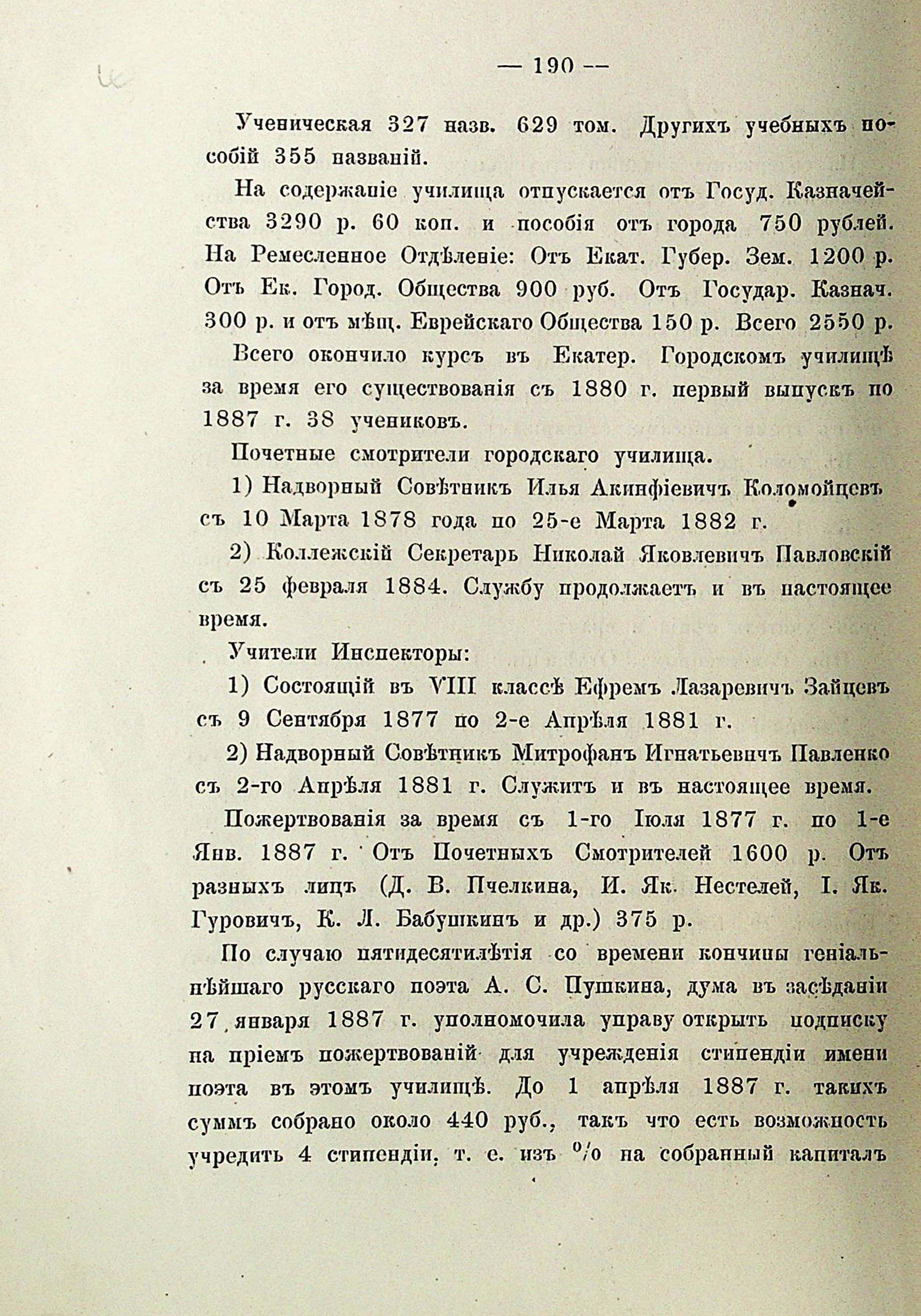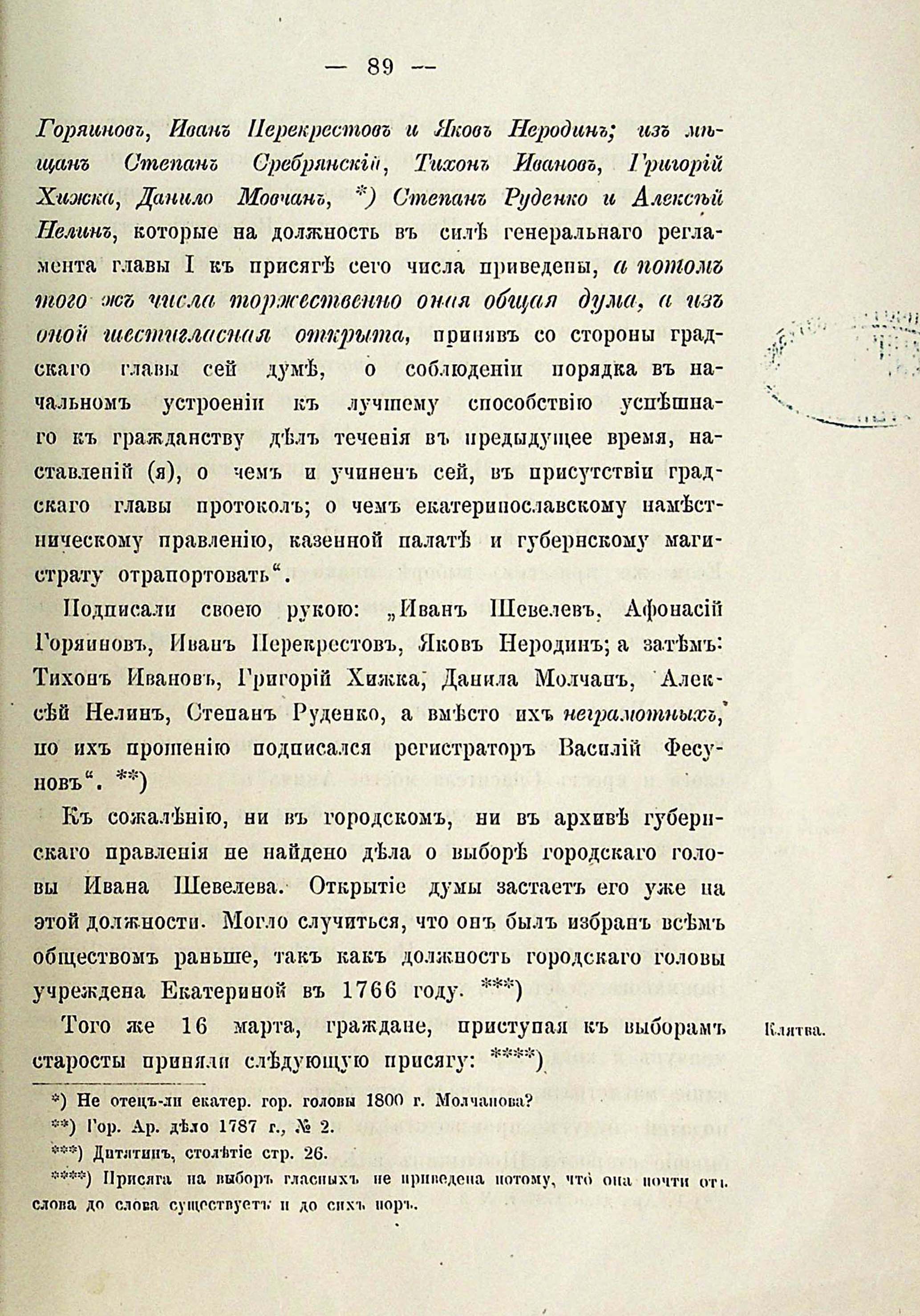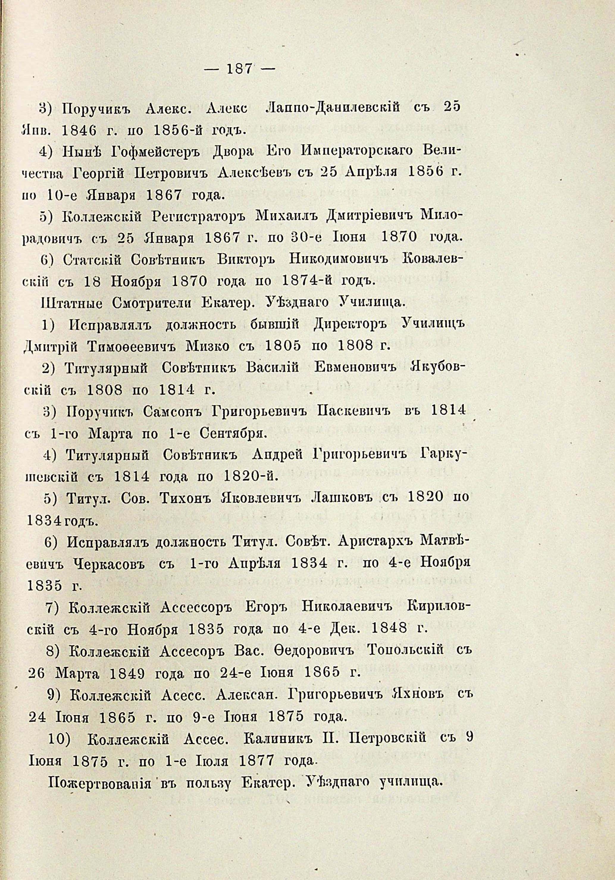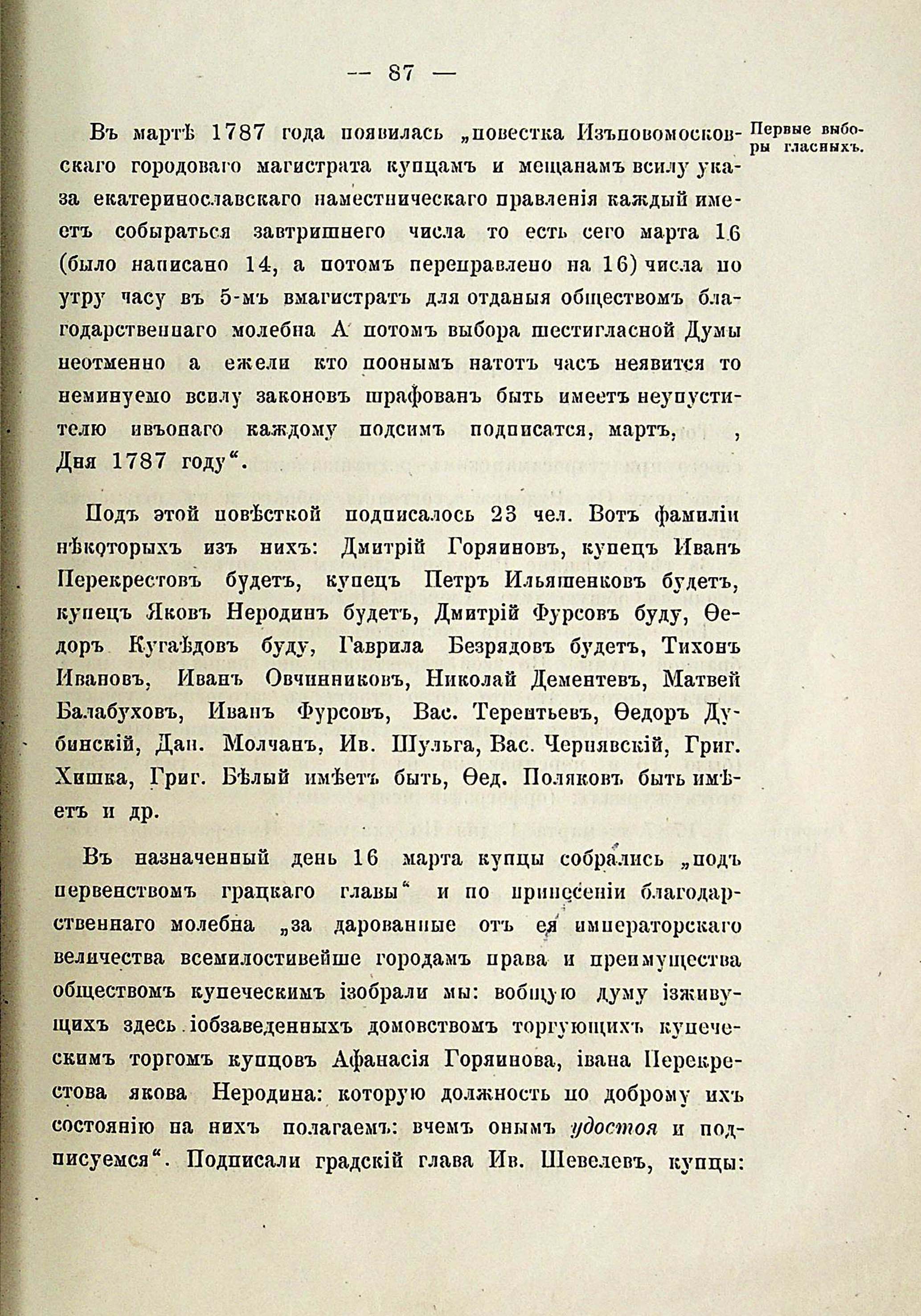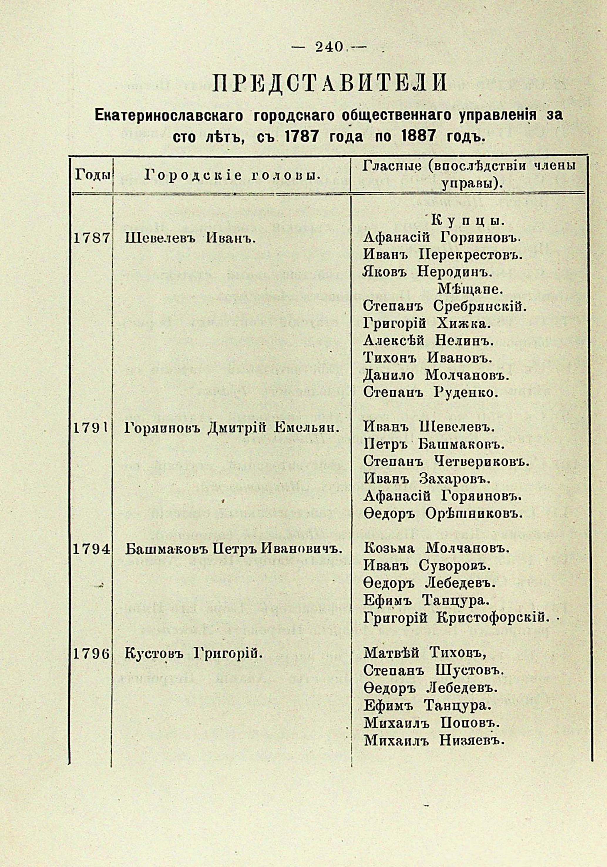 ПРЕДСТАВИТЕЛИ Екатеринославскаго городскаго общественнаго управленій за сто летъ, съ 1787 года по 1887 годъ