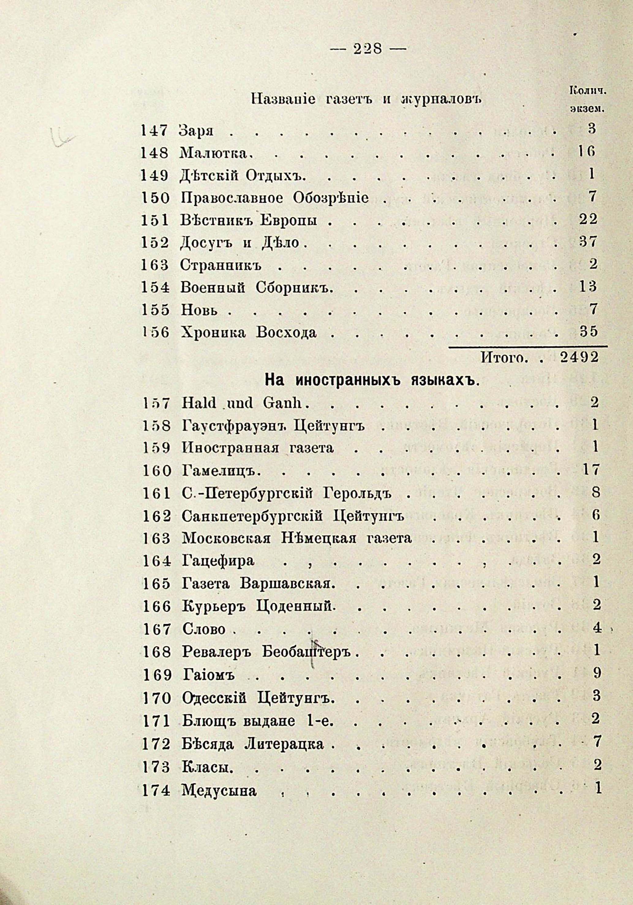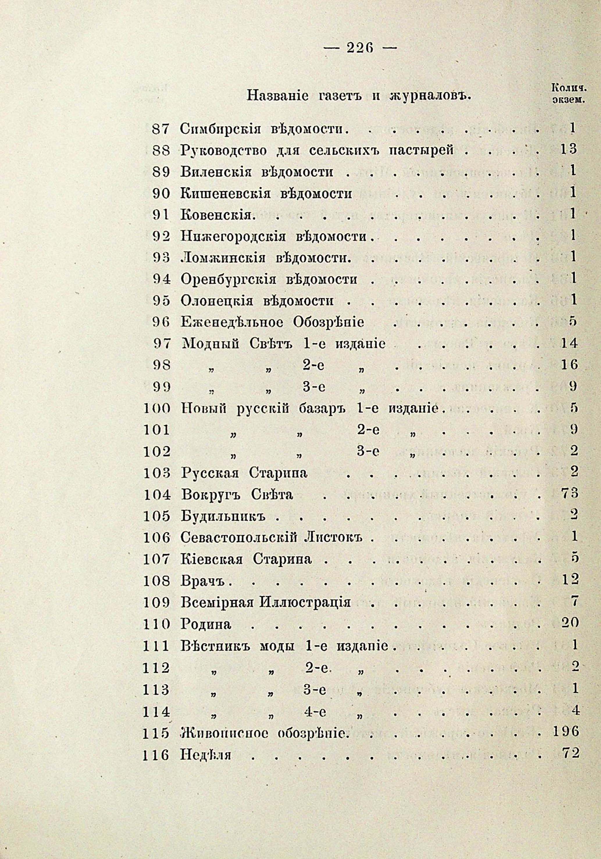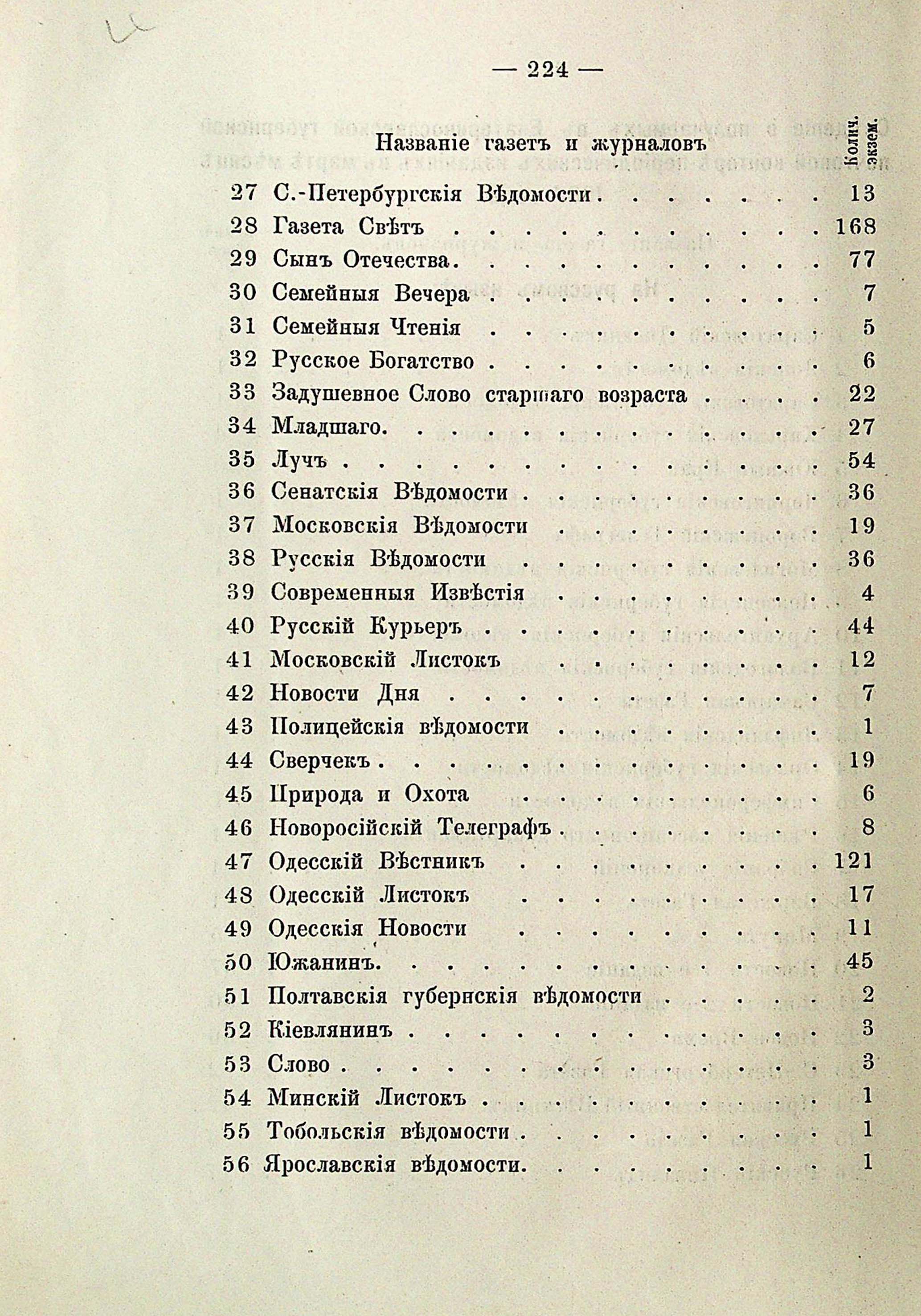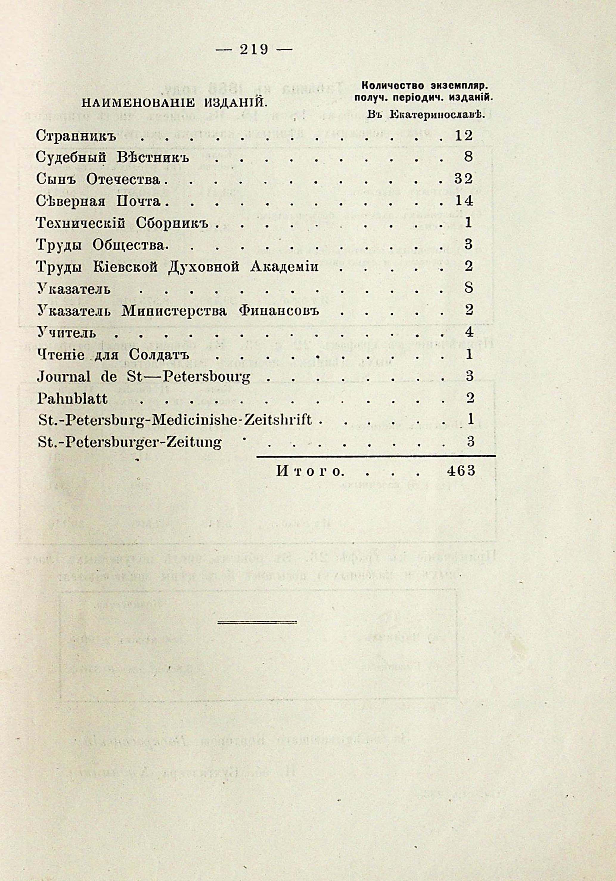 Сведініе о числе періодическихъ изданій, получавшихся въ Екатеринославсной губерніи въ 1866 году