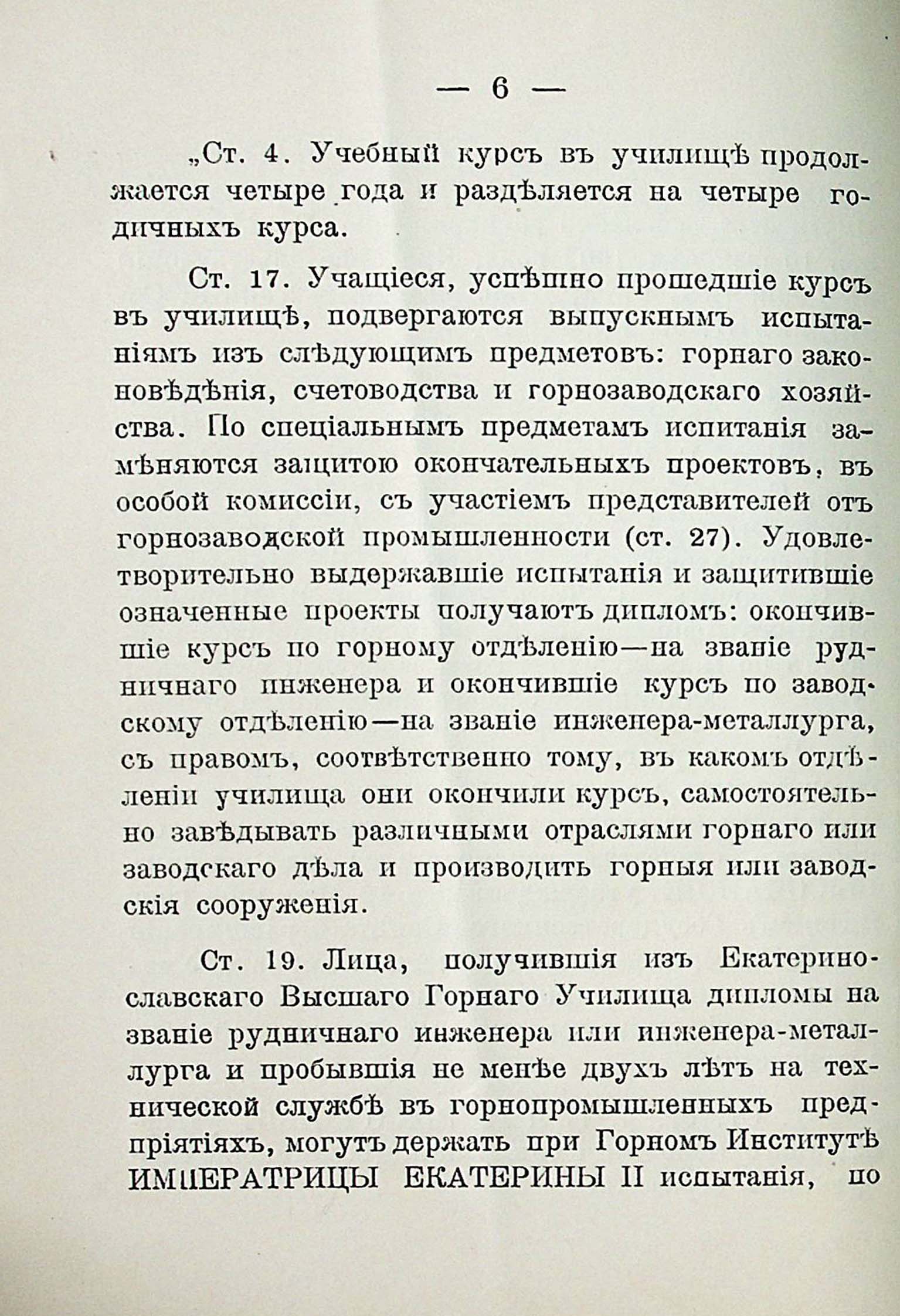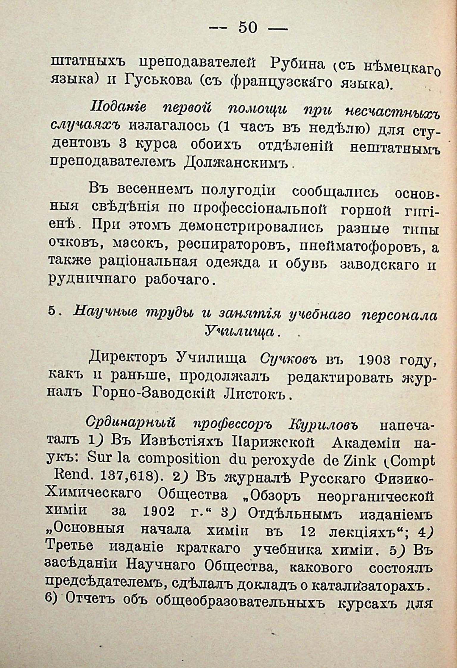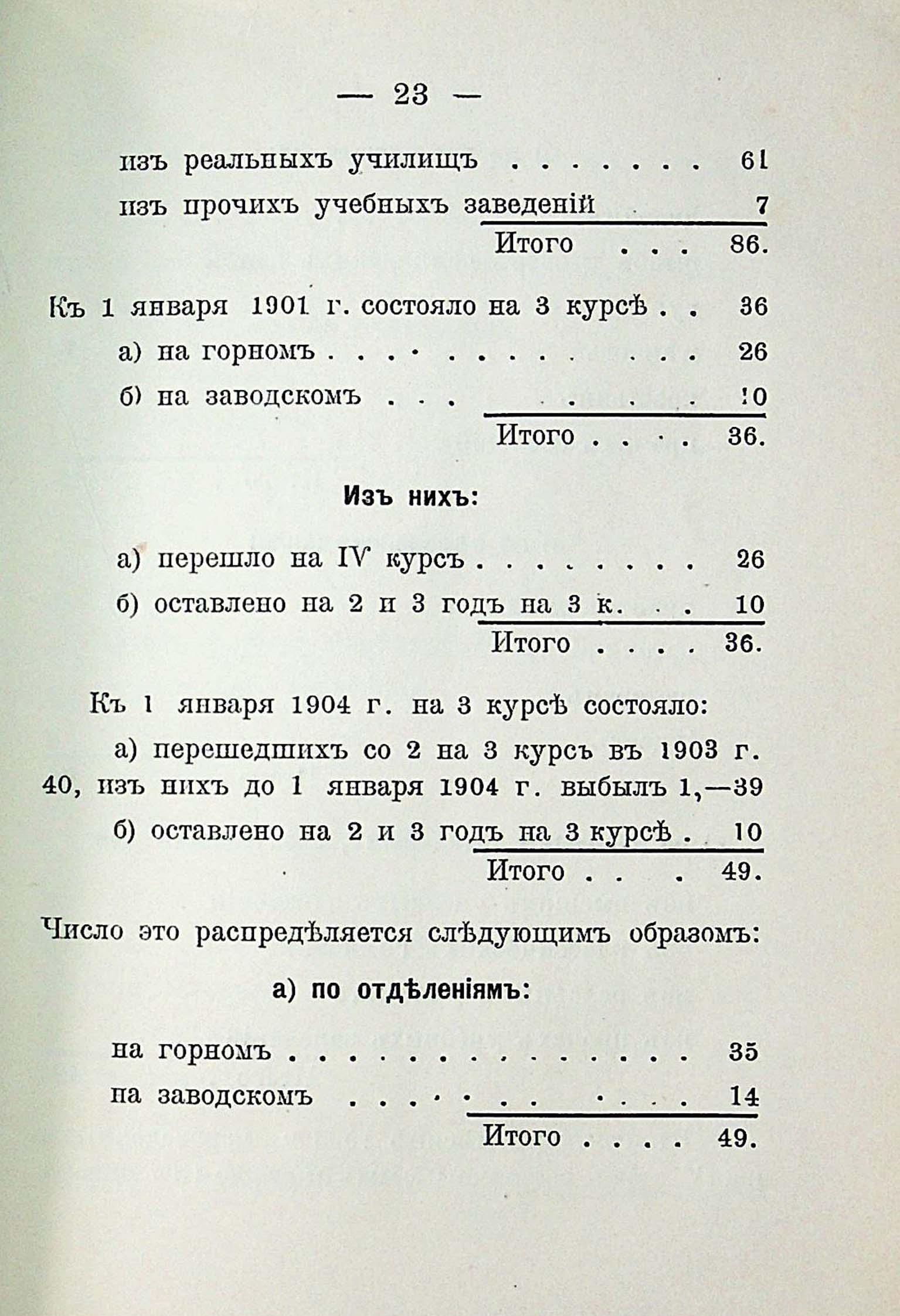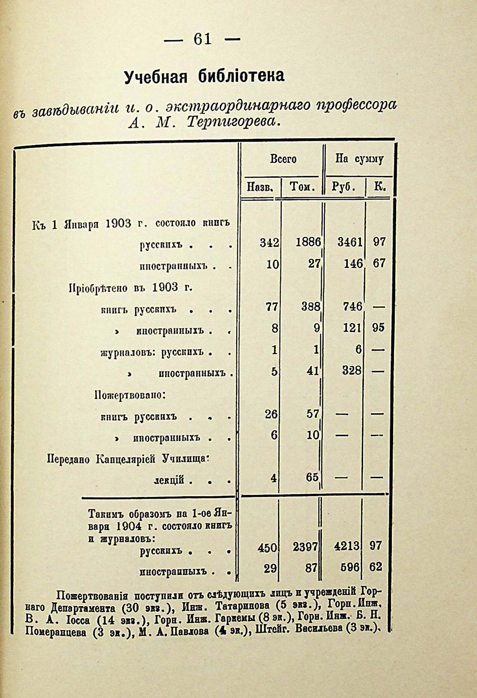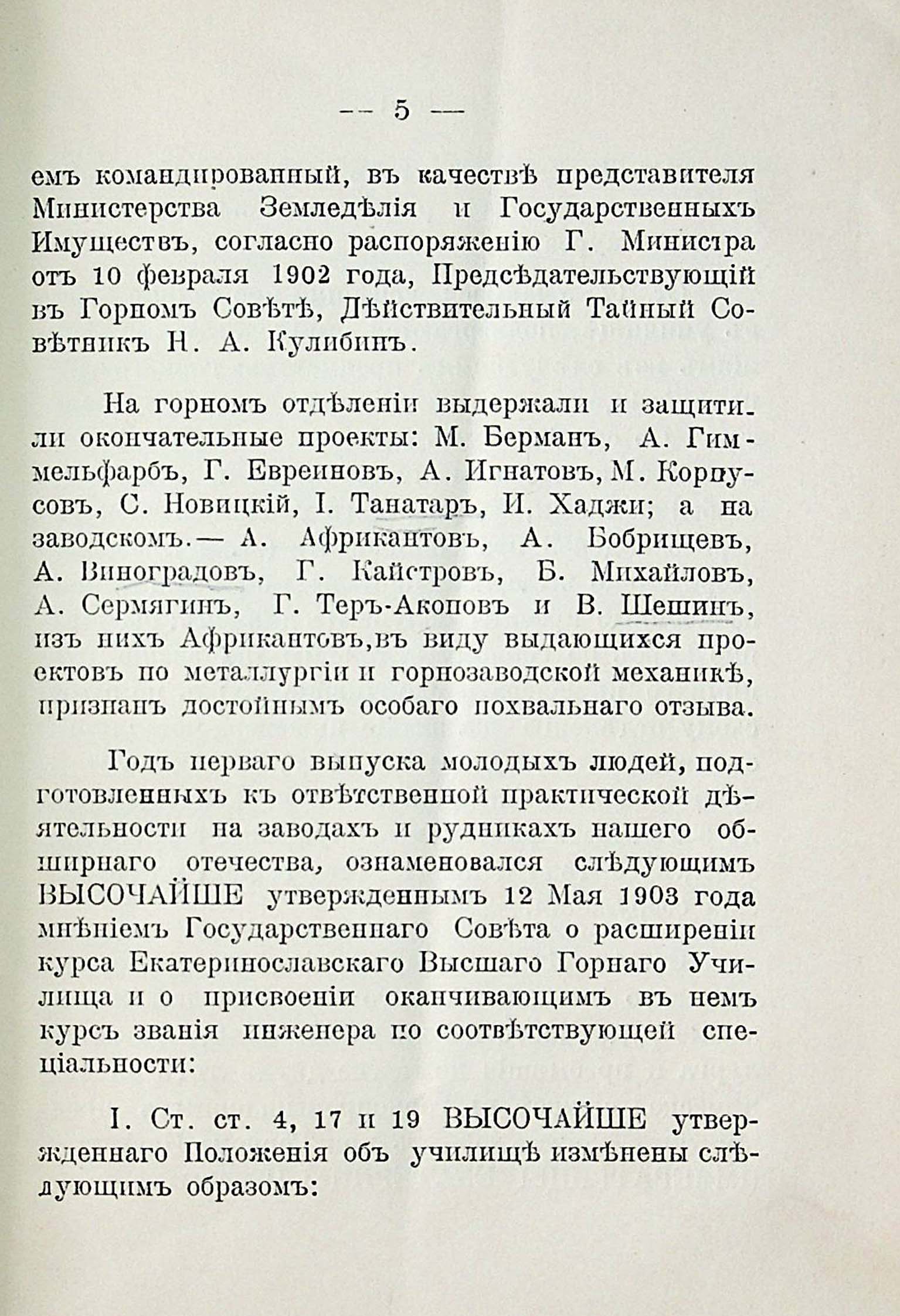5. Отчетъ о состояніи и действіяхъ Екатеринославскаго Высшаго Горнаго Училища за 1903 годъ