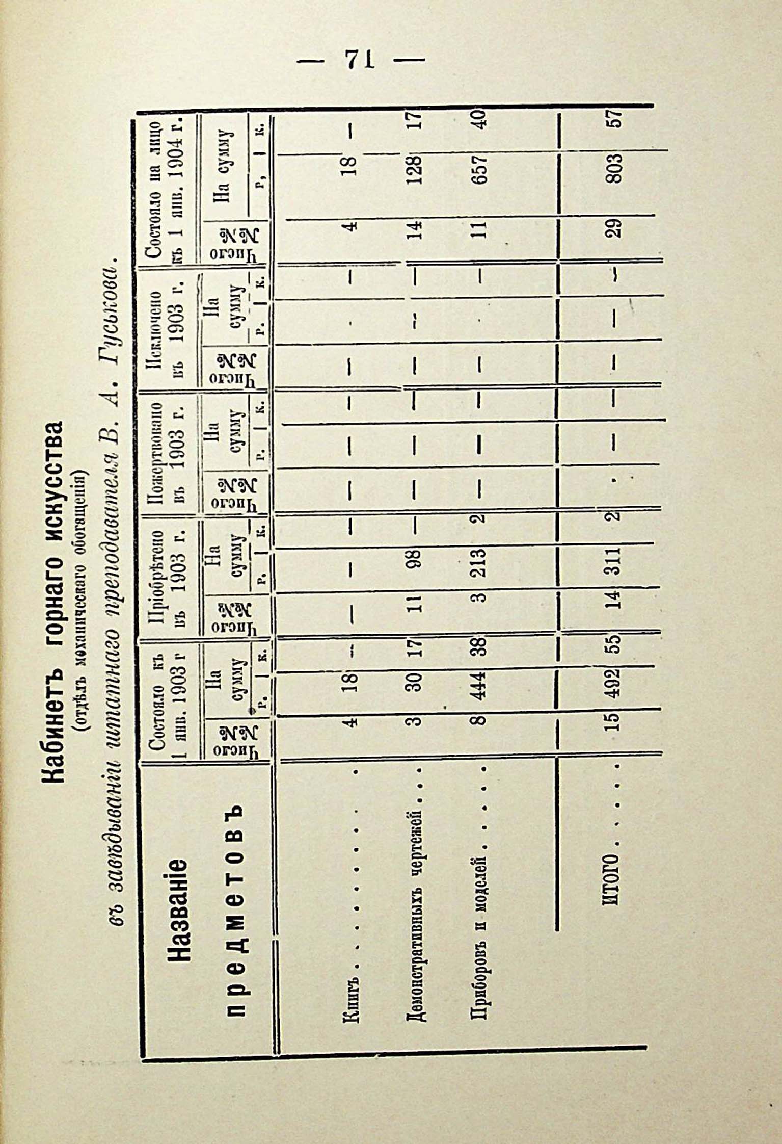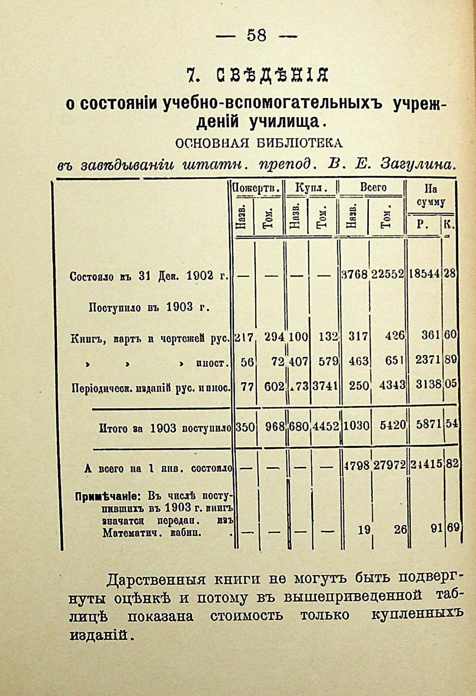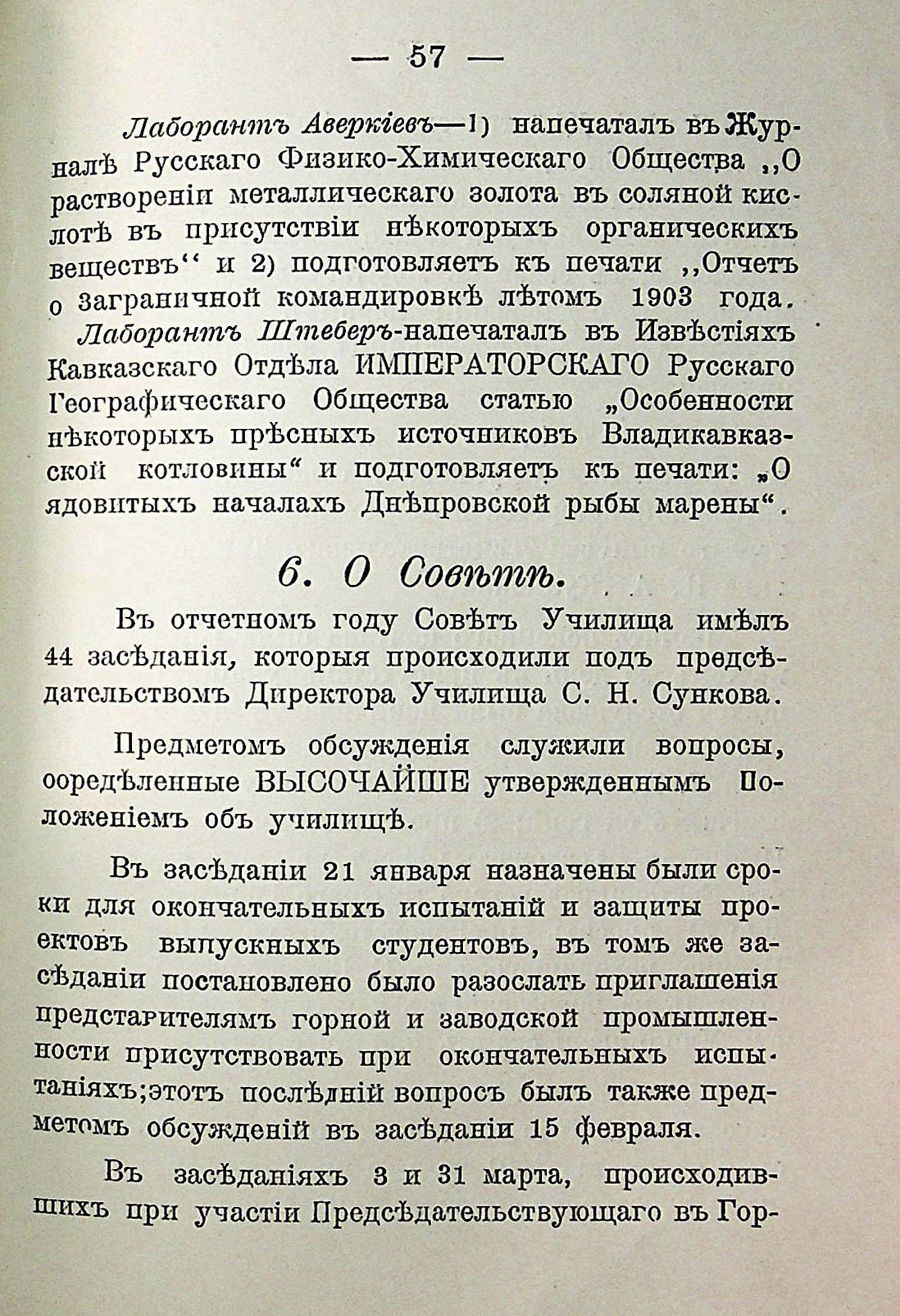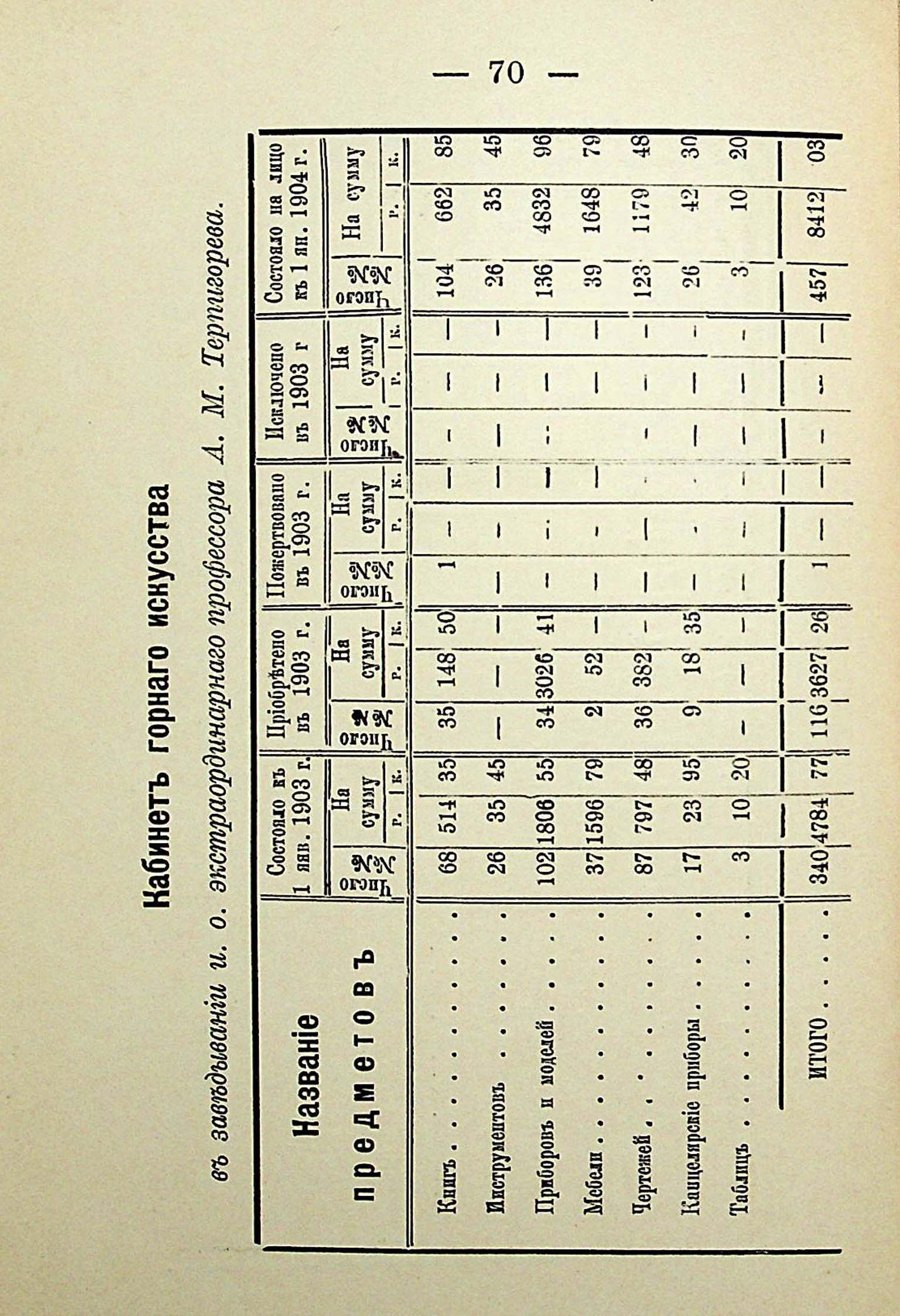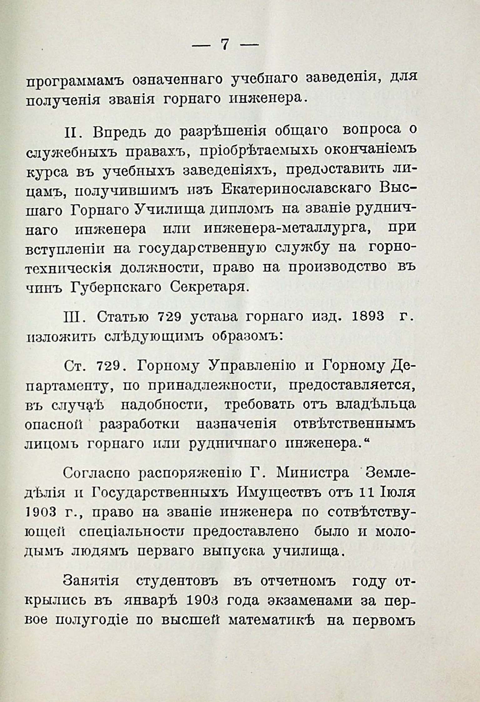 7. Отчетъ о состояніи и действіяхъ Екатеринославскаго Высшаго Горнаго Училища за 1903 годъ
