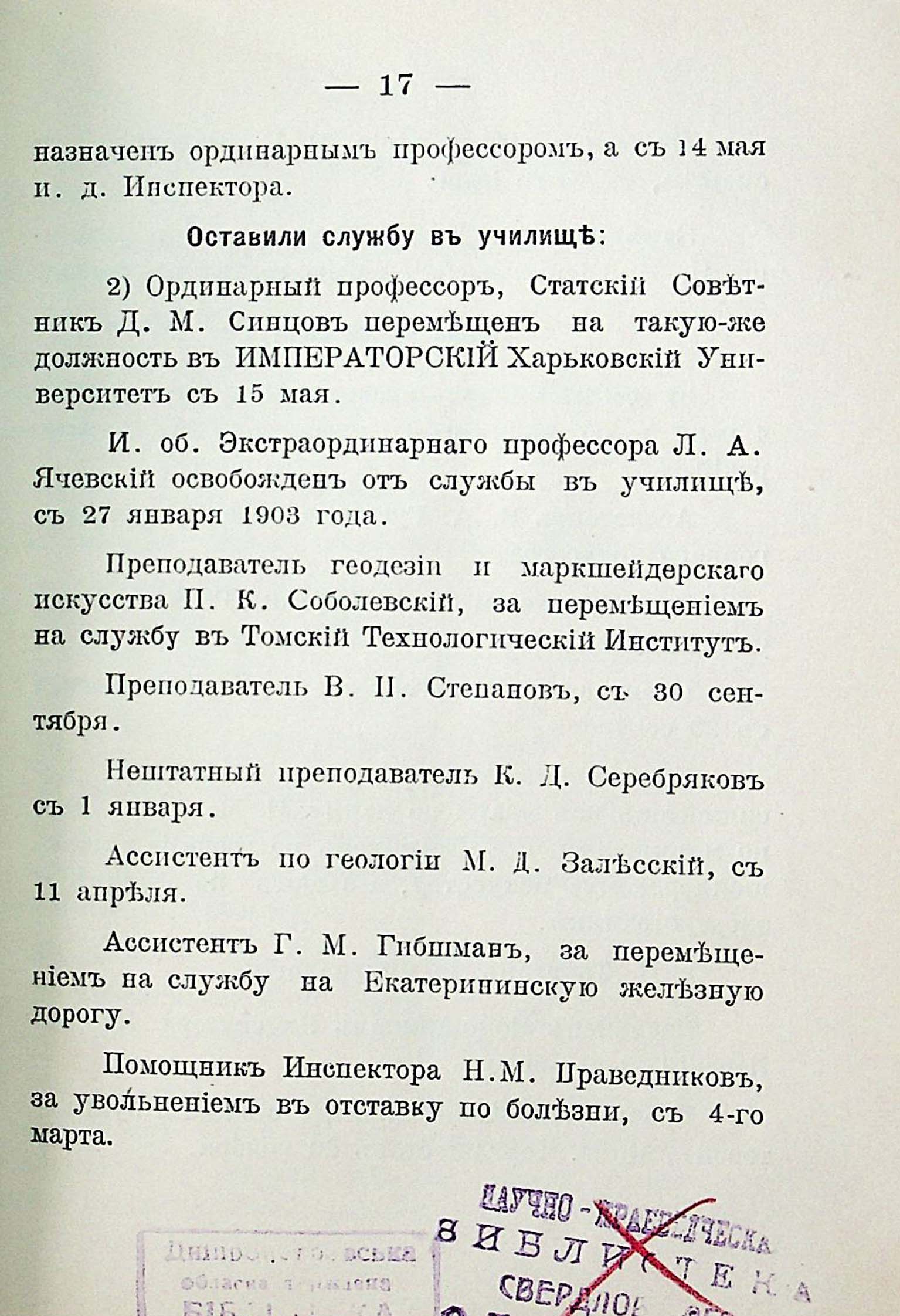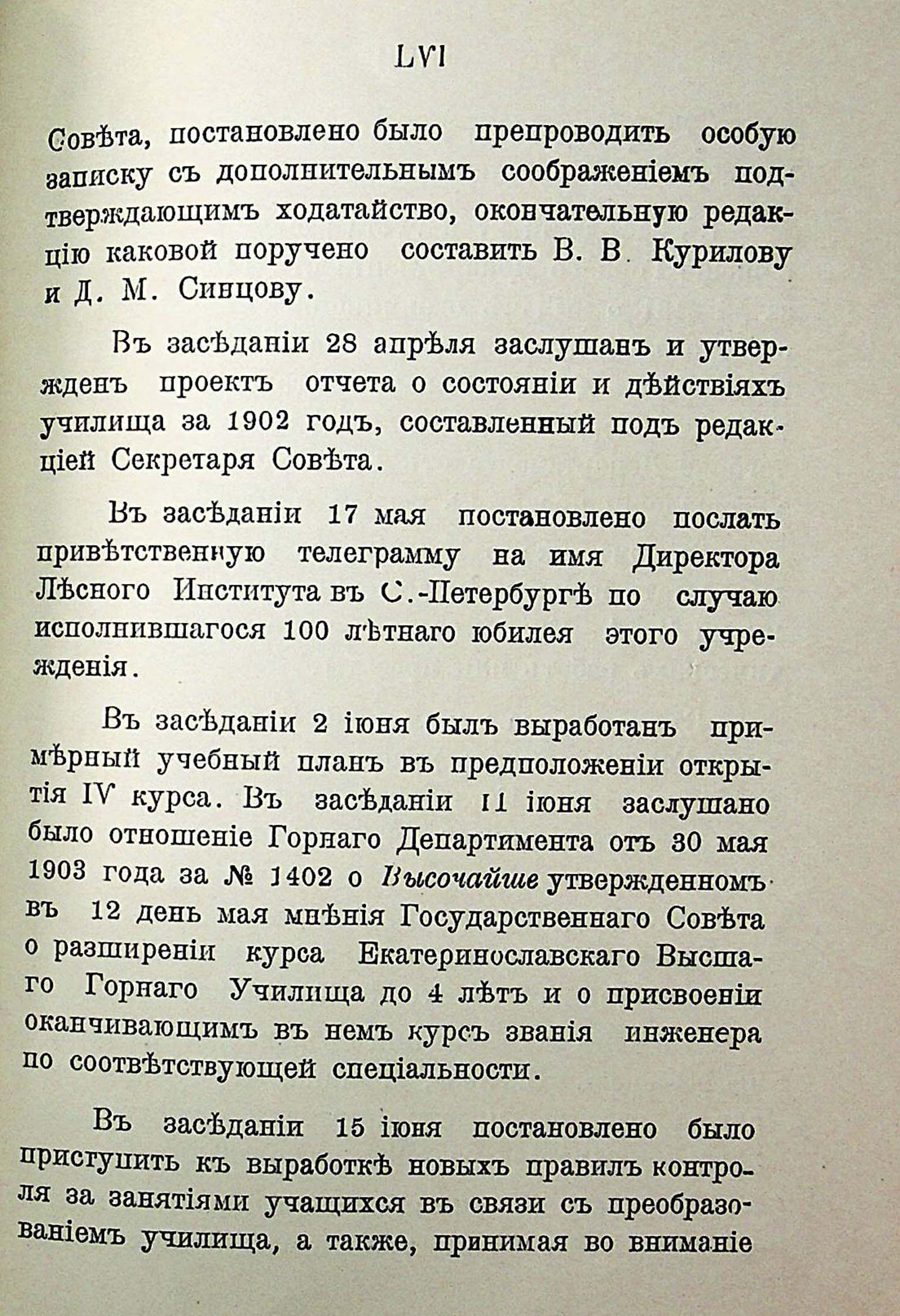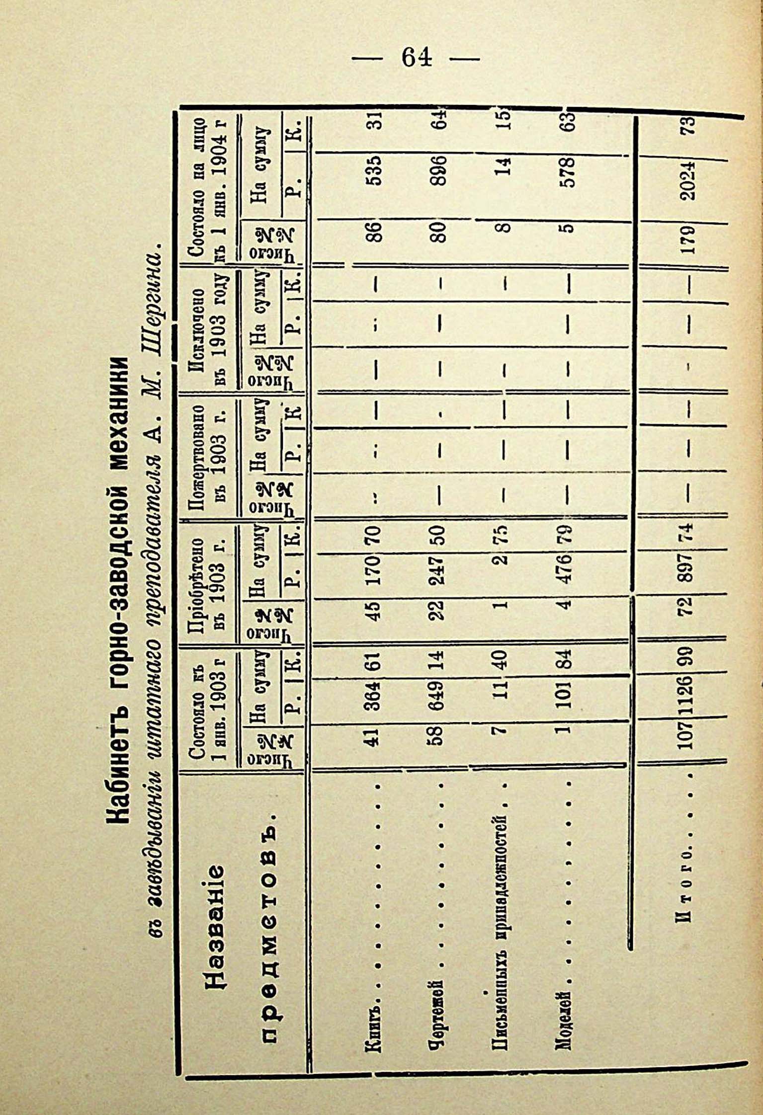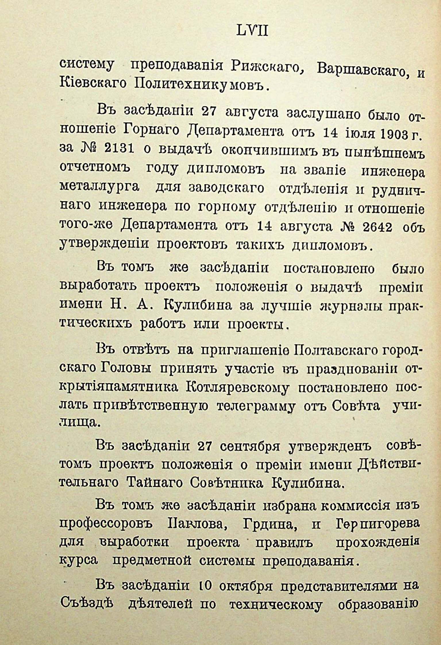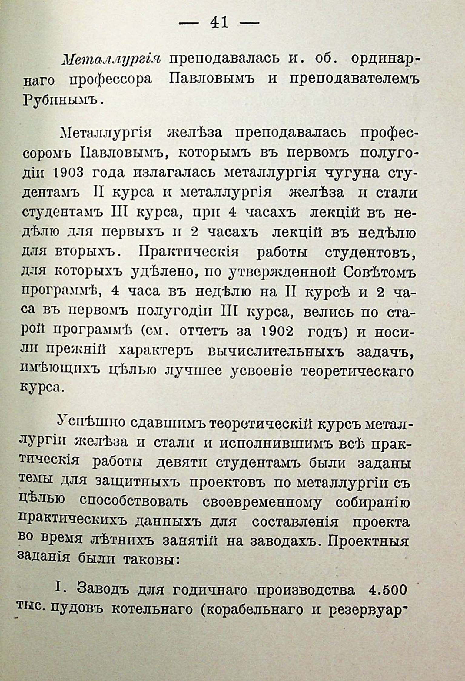 7. Отчетъ о состояніи и действіяхъ Екатеринославскаго Высшаго Горнаго Училища за 1903 годъ