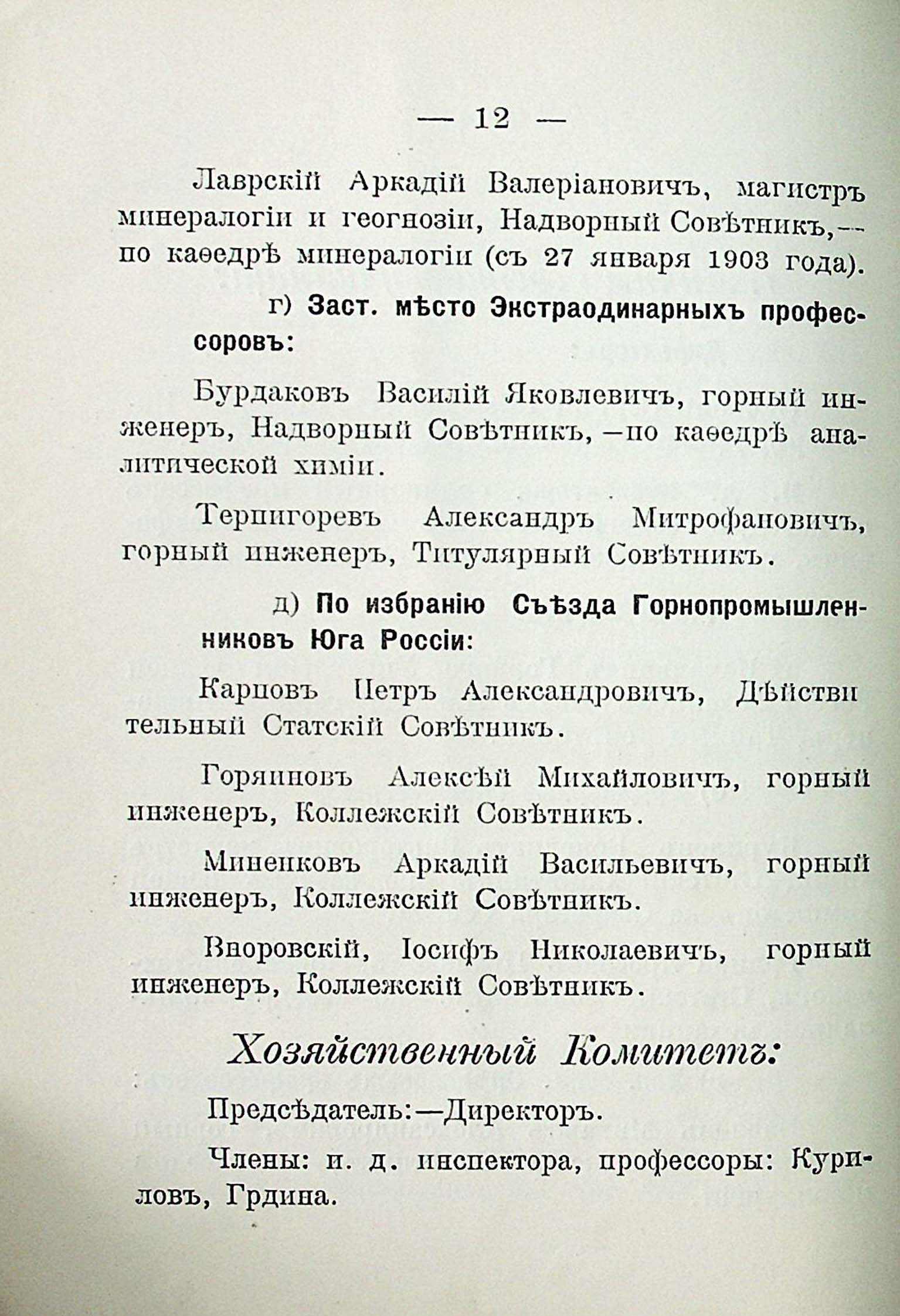 Отчетъ о состояніи и действіяхъ Екатеринославскаго Высшаго Горнаго Училища за 1903 годъ