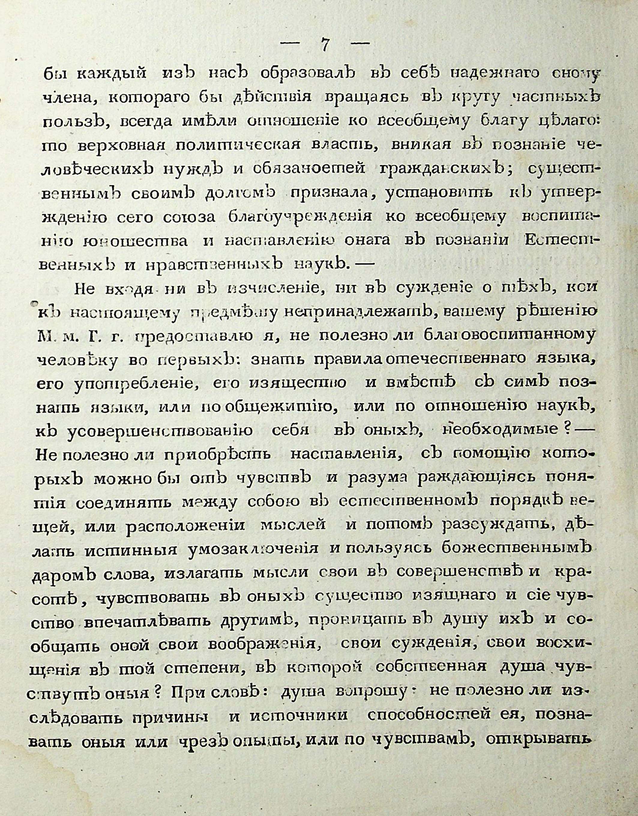 О сведенїяхъ нужныхъ благовоспитанному человеку и пользе оныхъ въ общежтіи