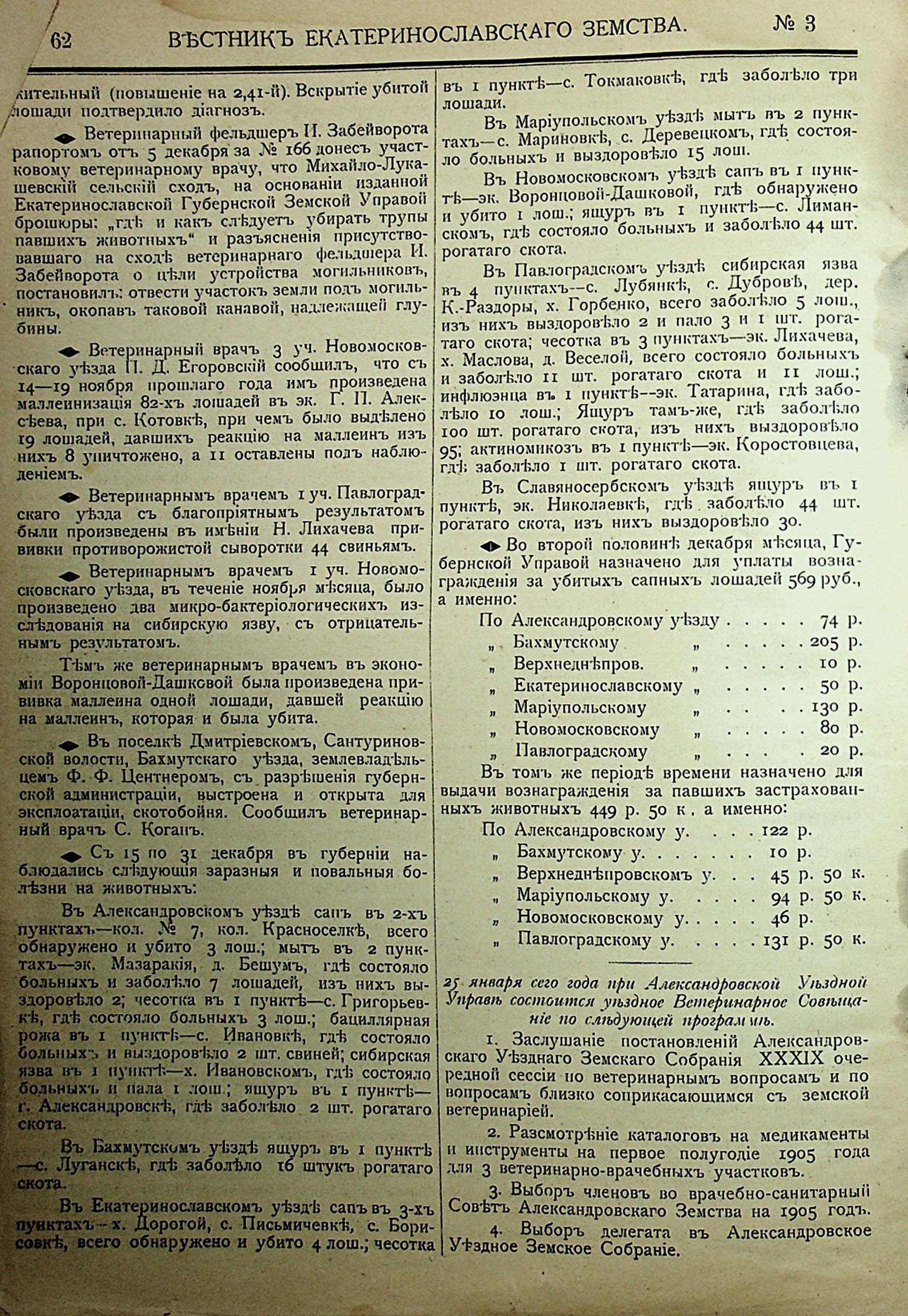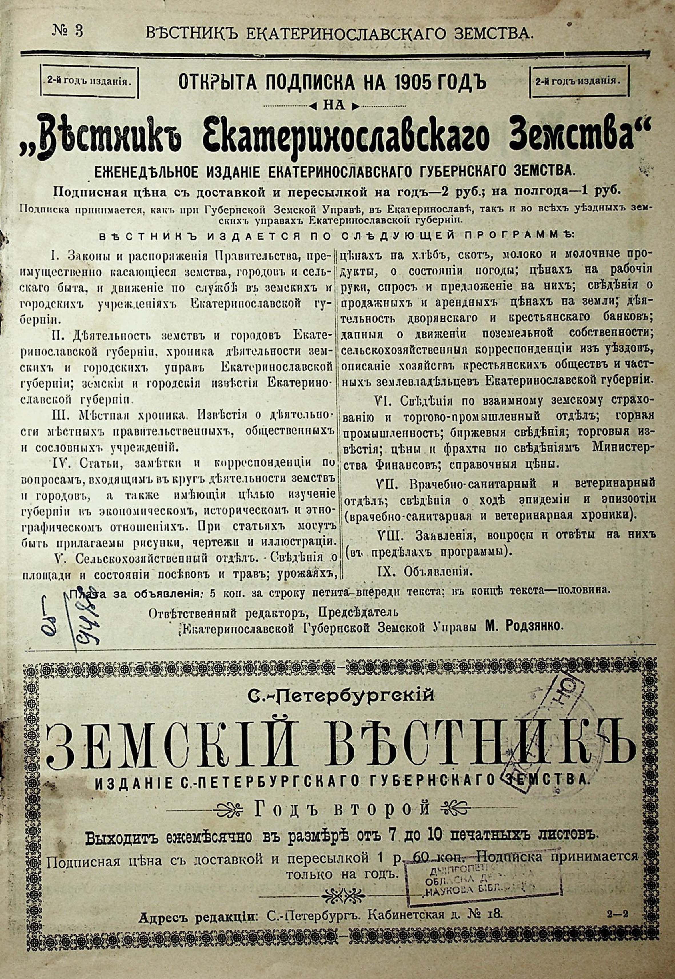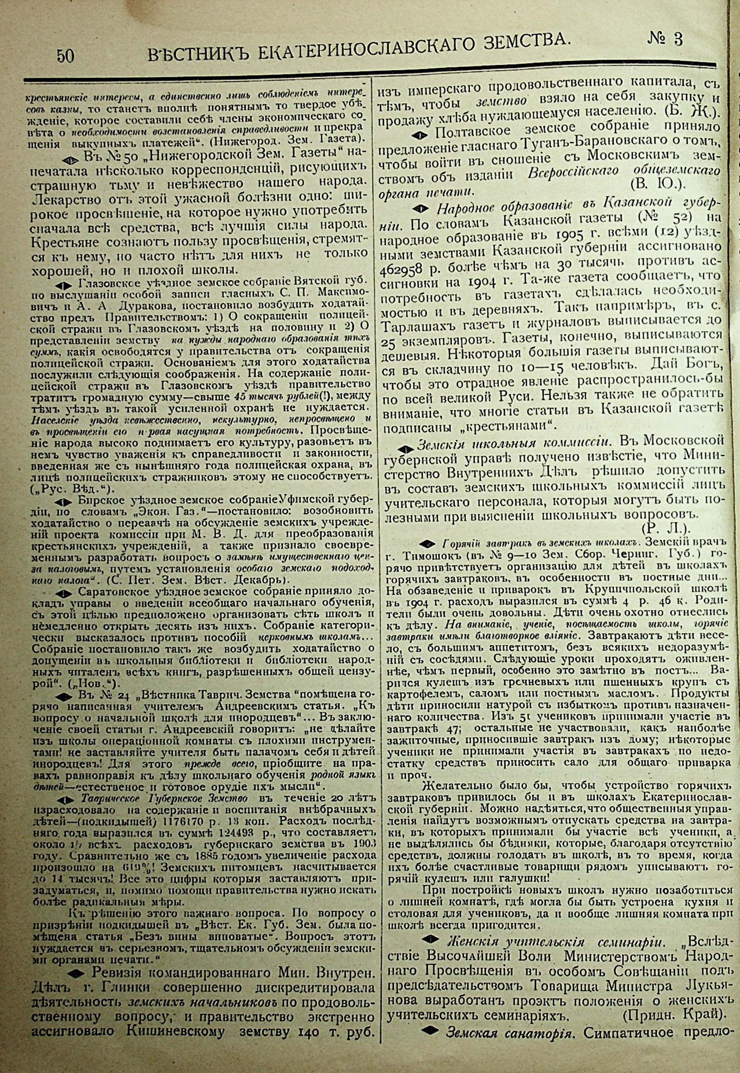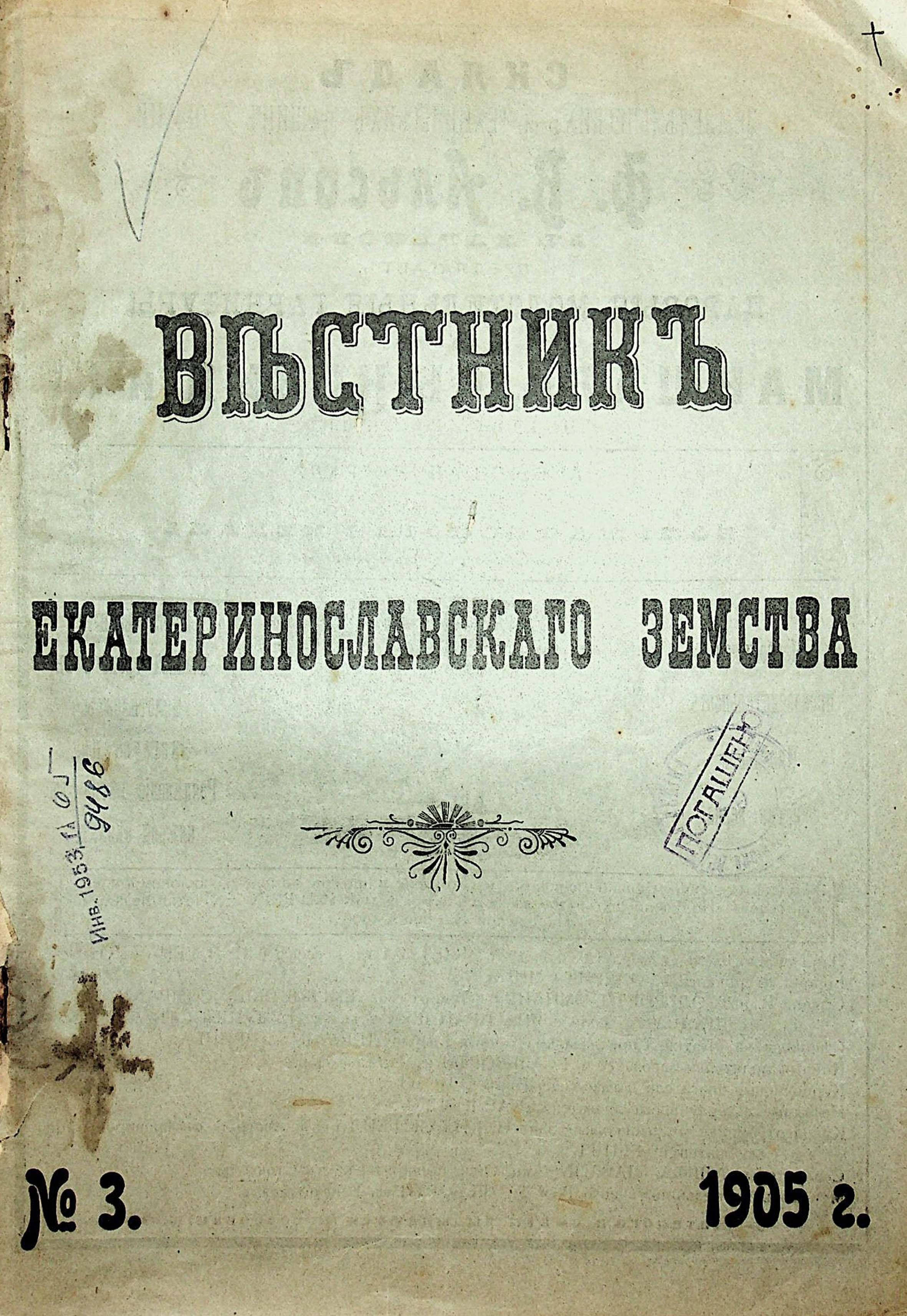 1. Вестникъ Екатеринославскаго земства. №3. 1905 г