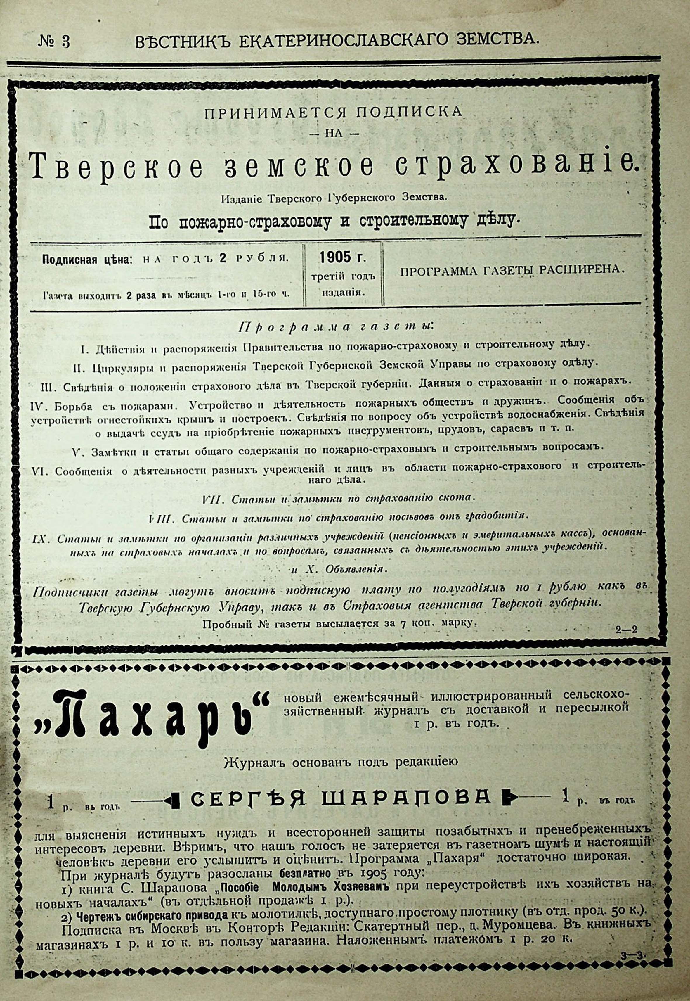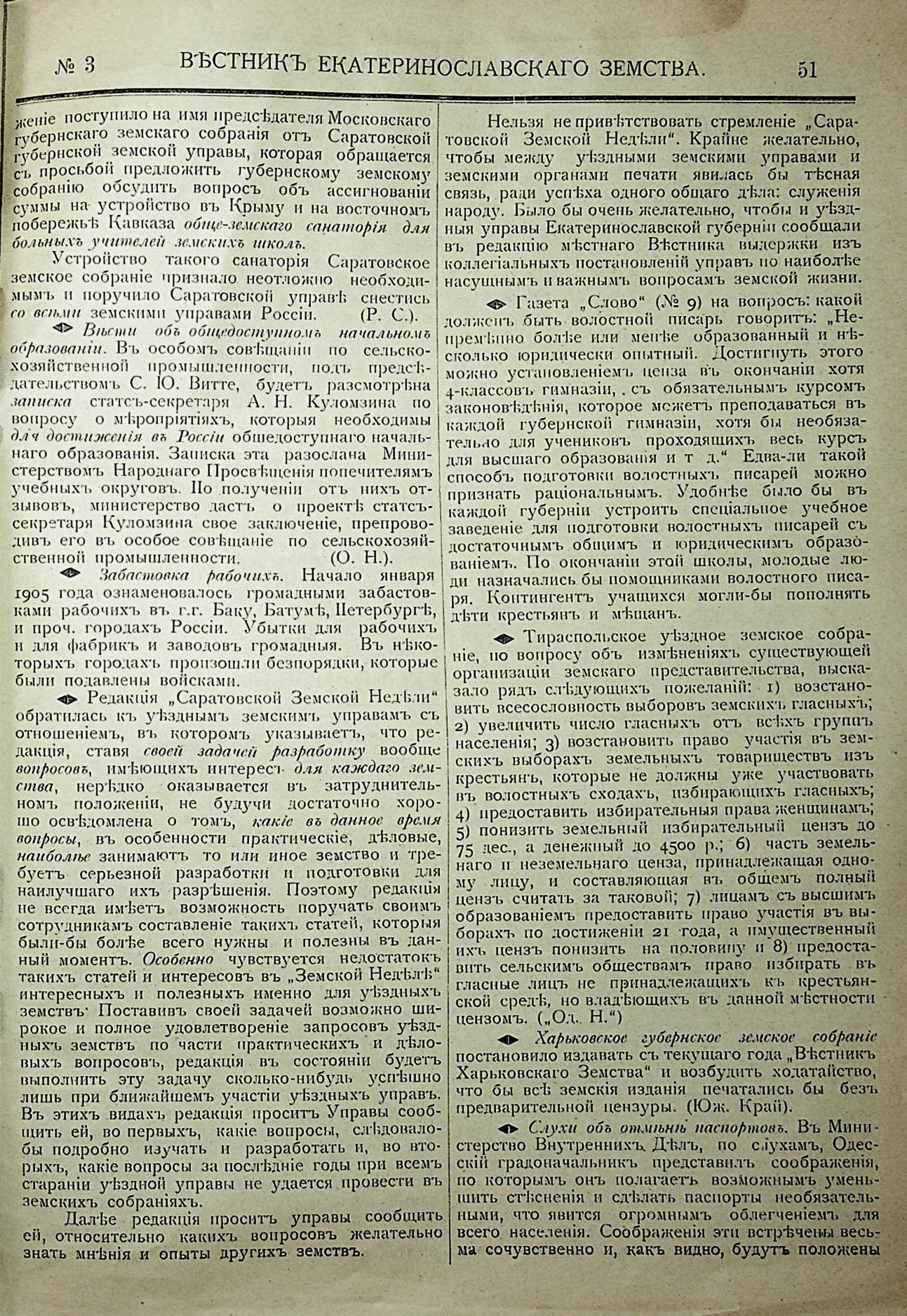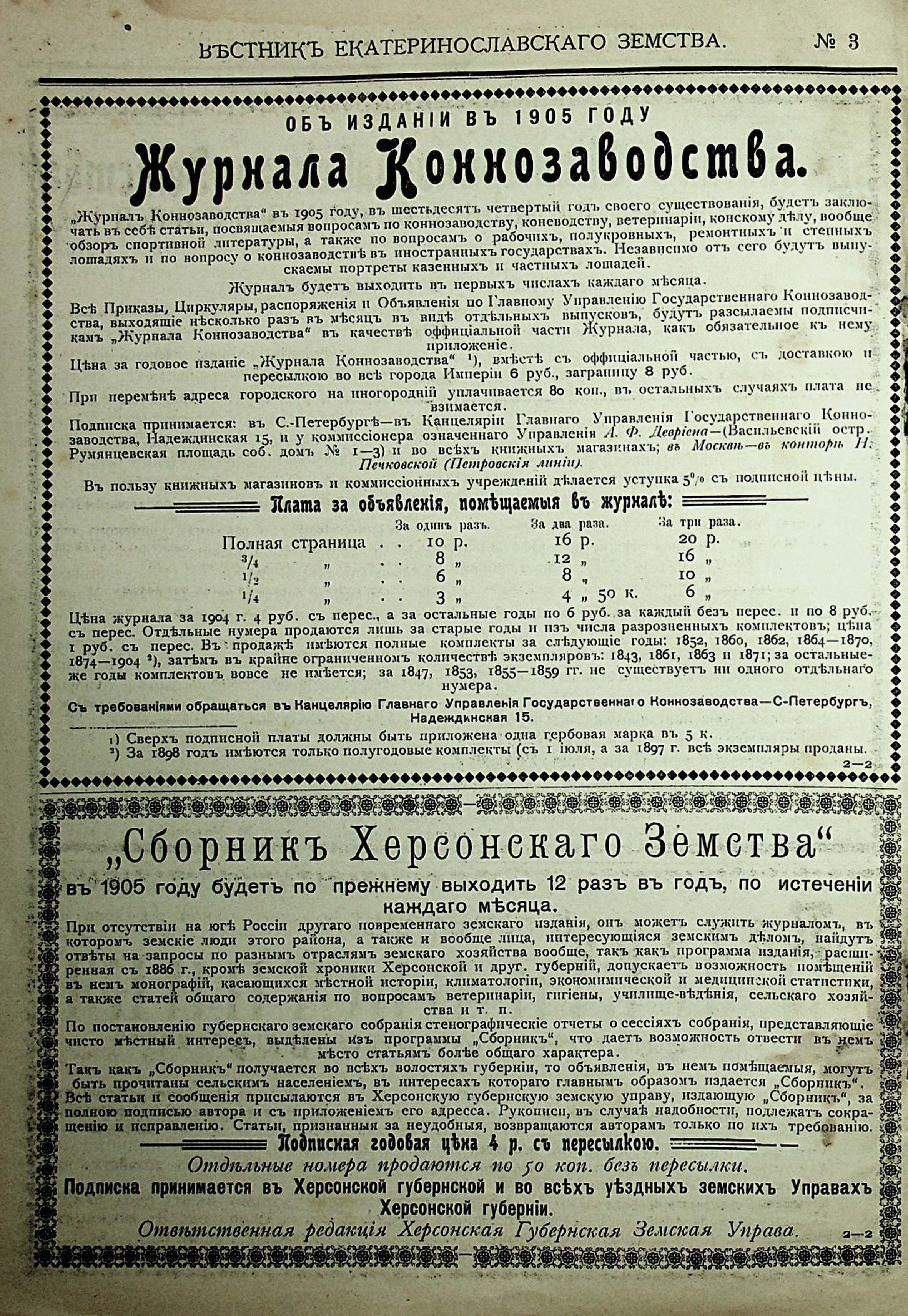 1. Вестникъ Екатеринославскаго земства. №3. 1905 г