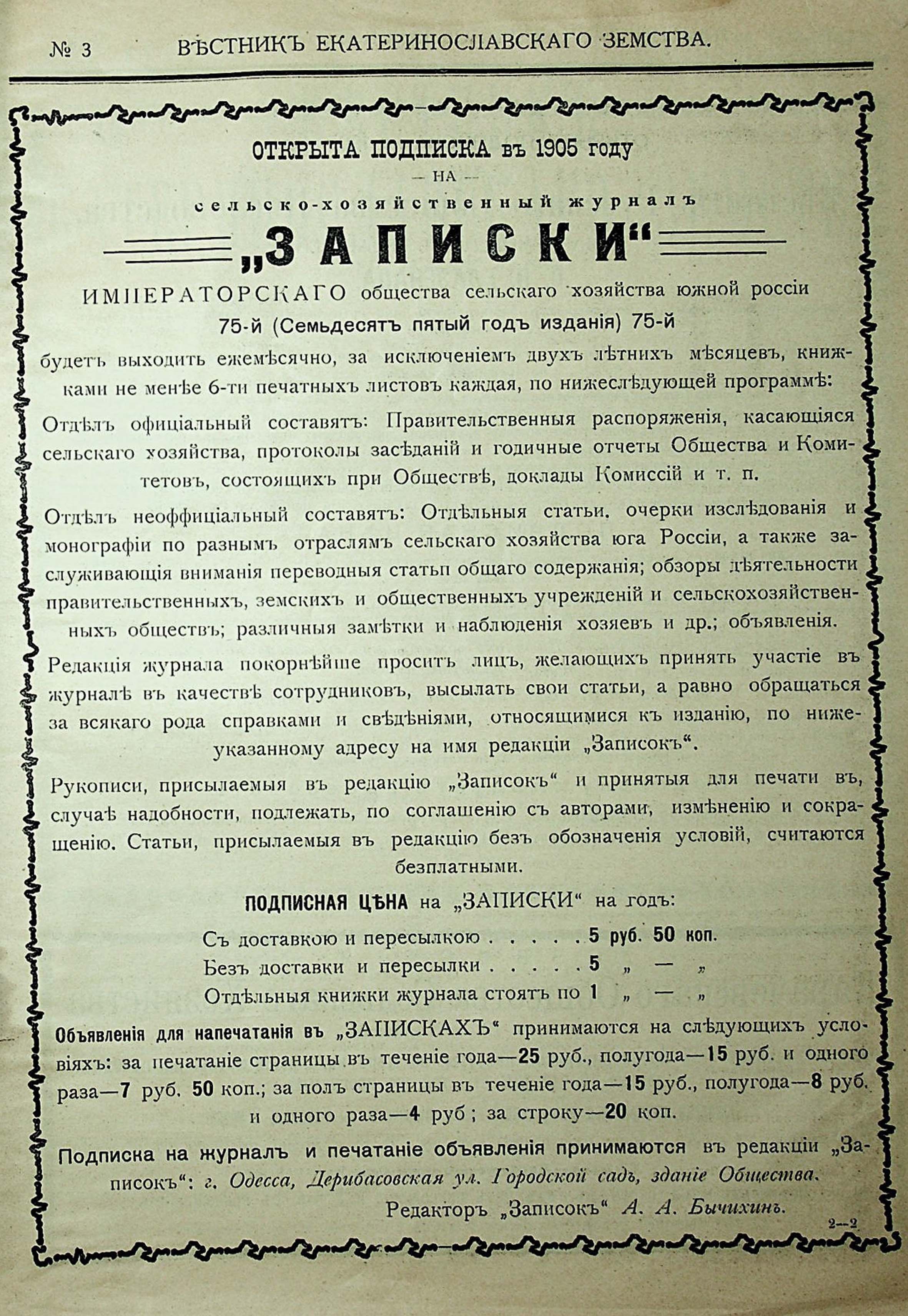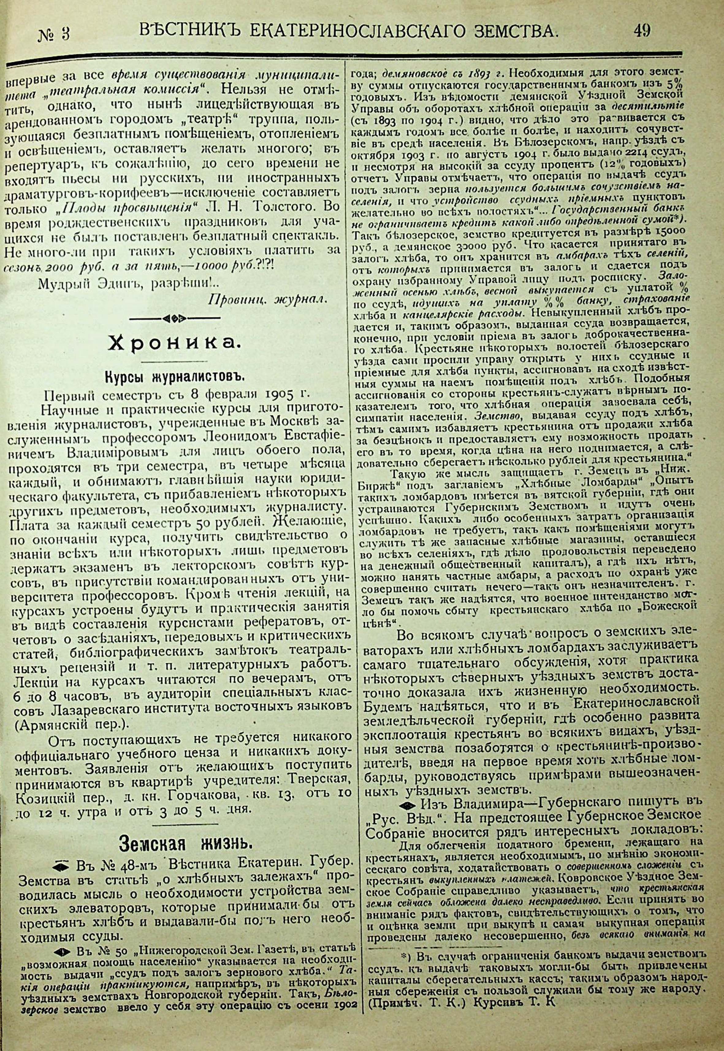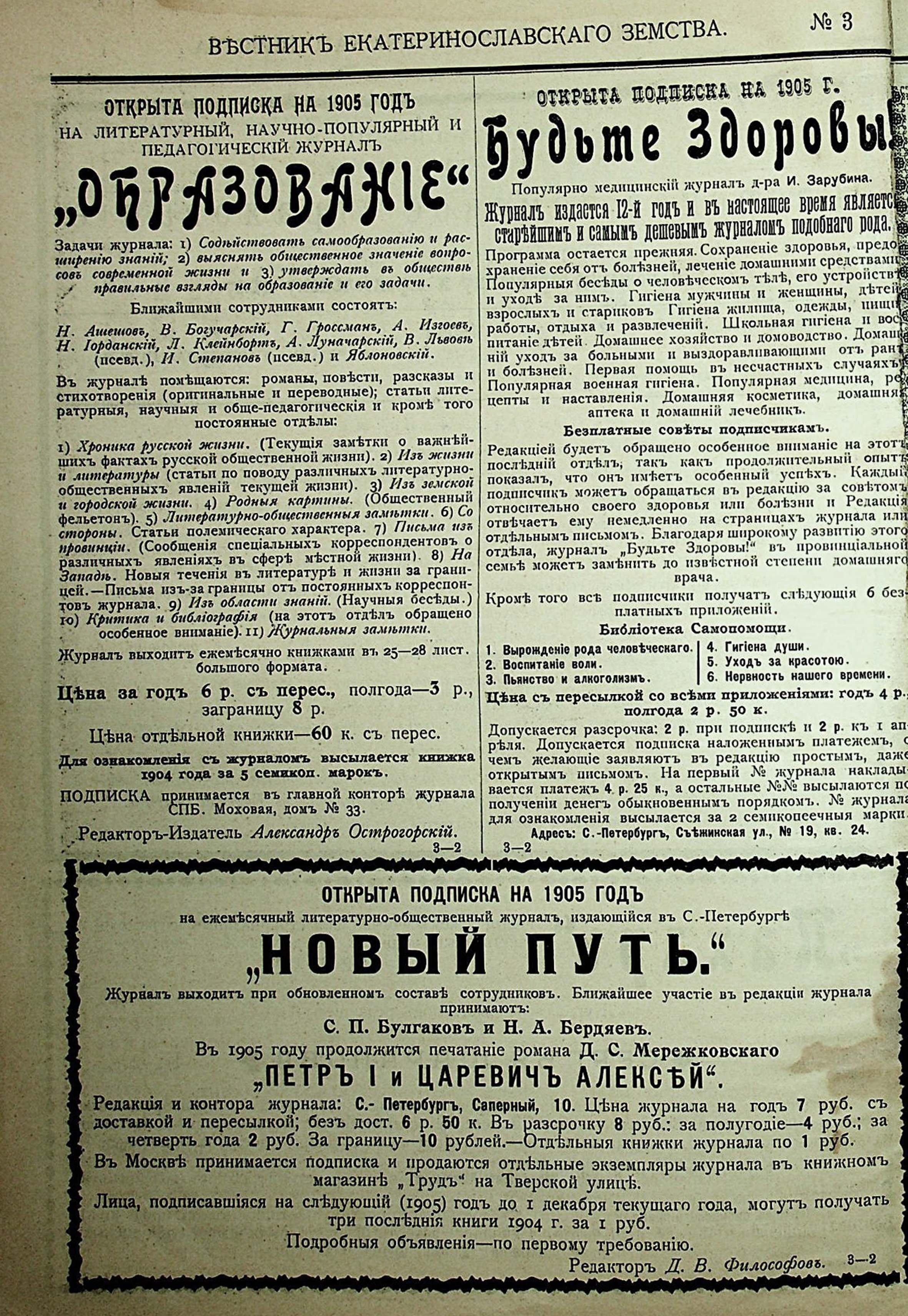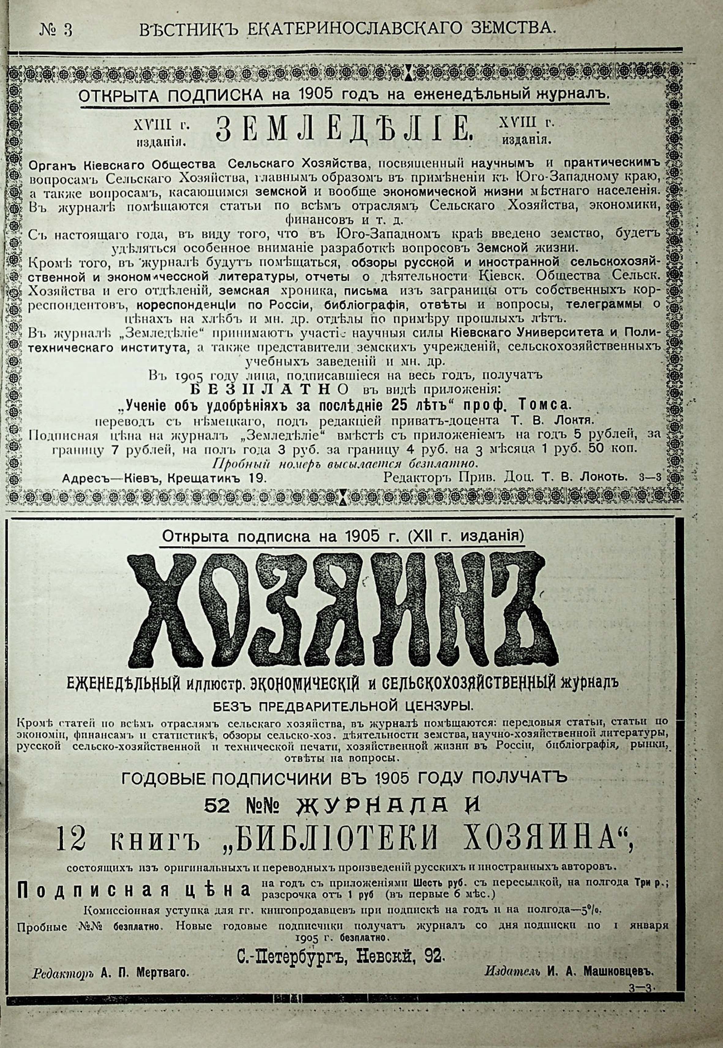 1. Вестникъ Екатеринославскаго земства. №3. 1905 г