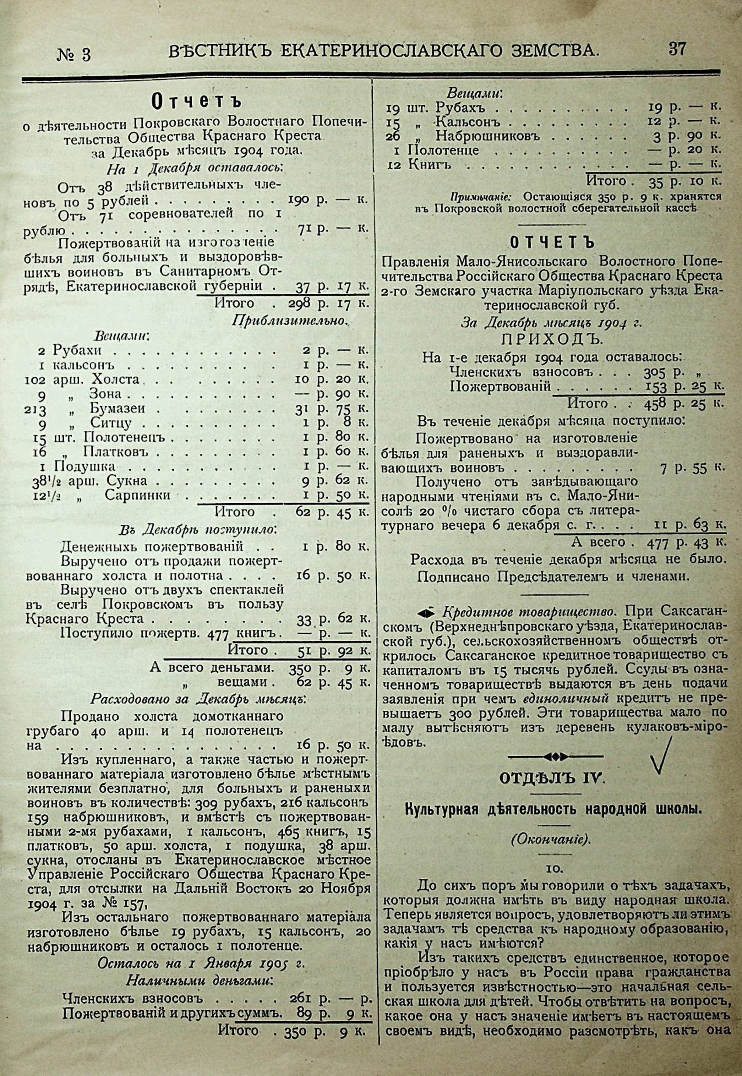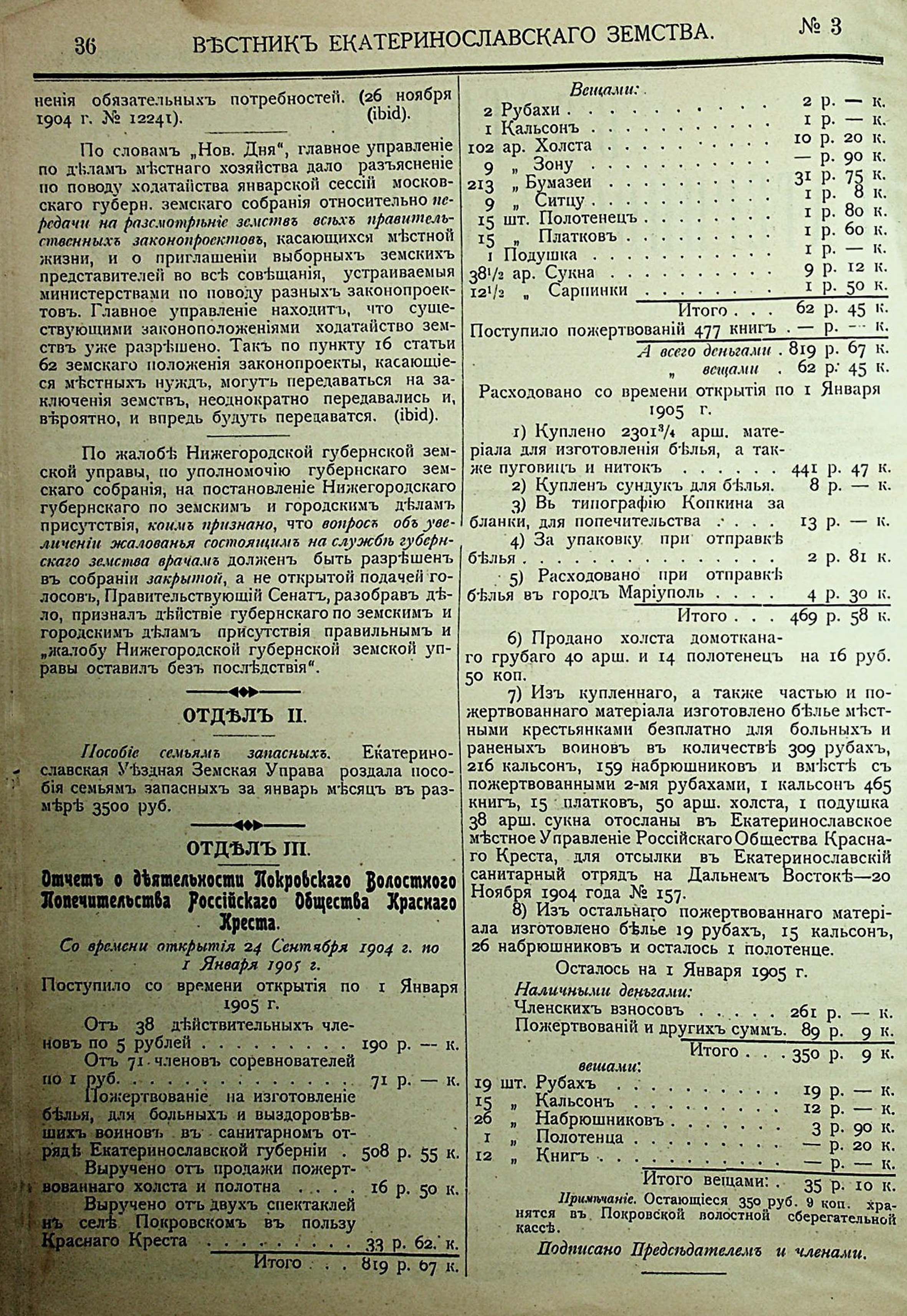 Отделъ II. Отделъ III. Ошчетъ о деятельности Покровскаго волостного Попечительства россійскаго Общества Краснаго Креста