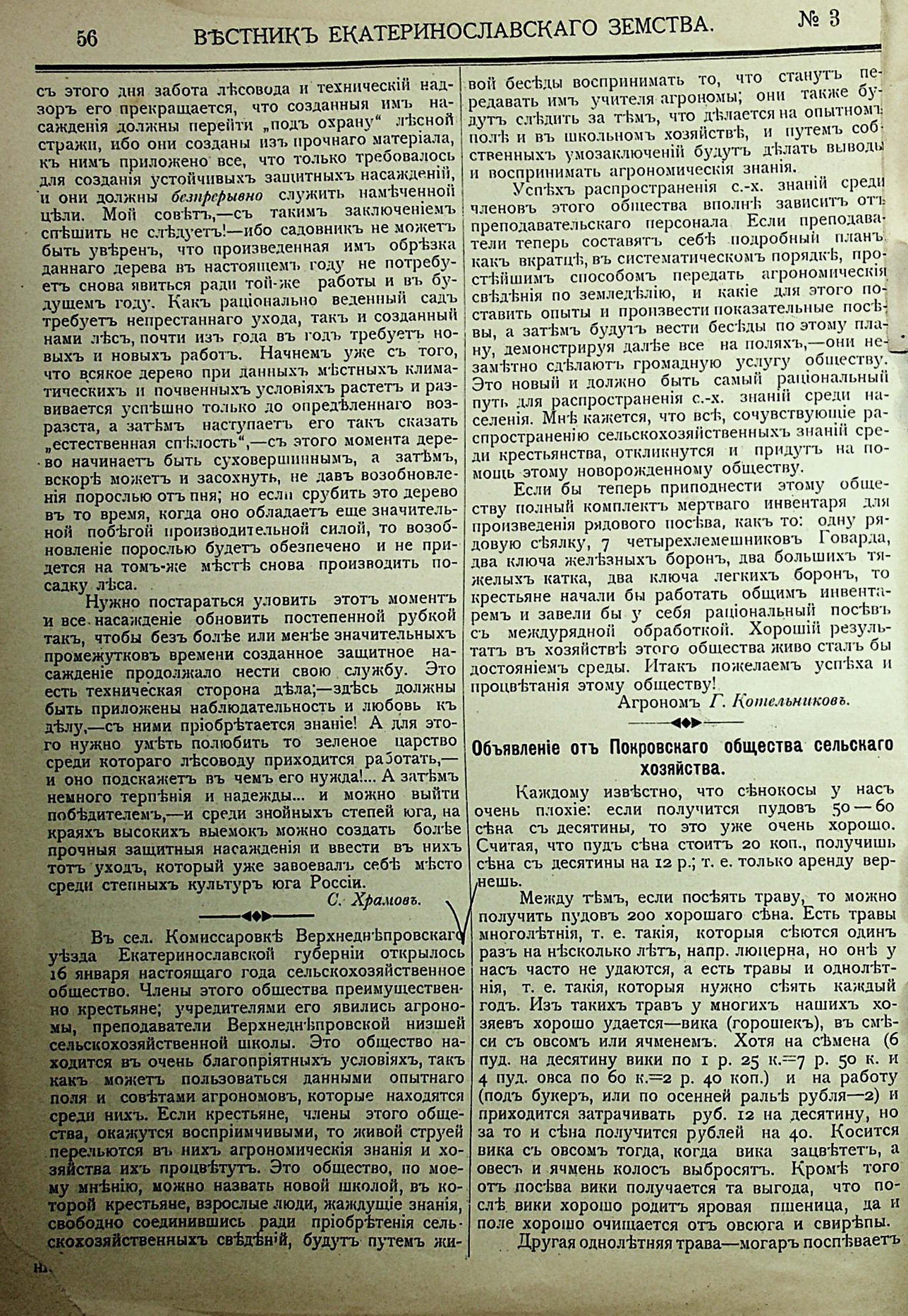 Объявленіе отъ Покровскаго общества сельскаго хозяйства
